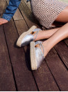 La Alpargata de mujer de Zappa destaca por su diseño moderno y elegante, con un exterior de cuero en acabado metálico plateado que ofrece un toque sofisticado y contemporáneo. La suela de esparto trenzado y las correas finas añaden un aire rústico y estilizado, complementando el estilo casual-chic perfecto para el verano.