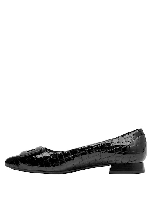 Siente la suavidad del cuero en nuestras elegantes bailarinas negras, diseñadas para ofrecerte un confort excepcional durante todo el día. Con un acabado brillante y un delicado detalle en hebilla, destacan por su estilo moderno y adaptable a cualquier ocasión. Su punta puntiaguda y taco plano de 1.7 cm aporta un toque sofisticado y práctico, permitiendo que cada paso sea un placer. Combínalas con unos jeans ajustados o una falda midi para un look encantador y funcional.