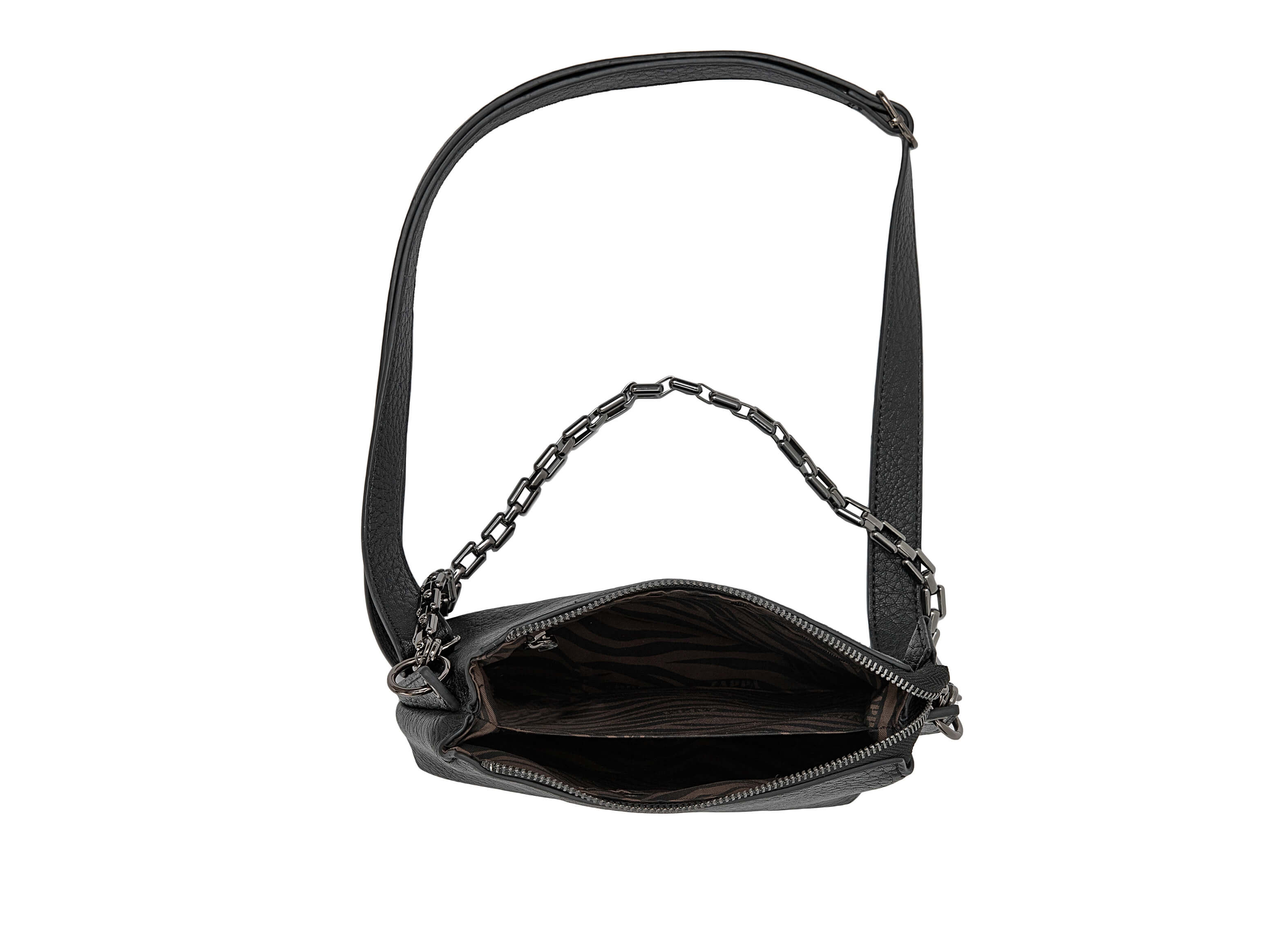 Sus dimensiones están muy bien pensadas: de alto 18 cm, de ancho 24 cm y de profundidad 6 cm ¡Un tamaño óptimo para que te sientas ágil en todo momento! Además, en cuanto a compartimientos, dispone de 2 bolsillos internos (1 con cierre) / separador para llevar tu dinero, identificación y demás pertenencias. Para que sea cómoda de usar, cuenta con correa extraíble y ajustable / cadena fija y tiene un método de apertura mediante cierre metálico.