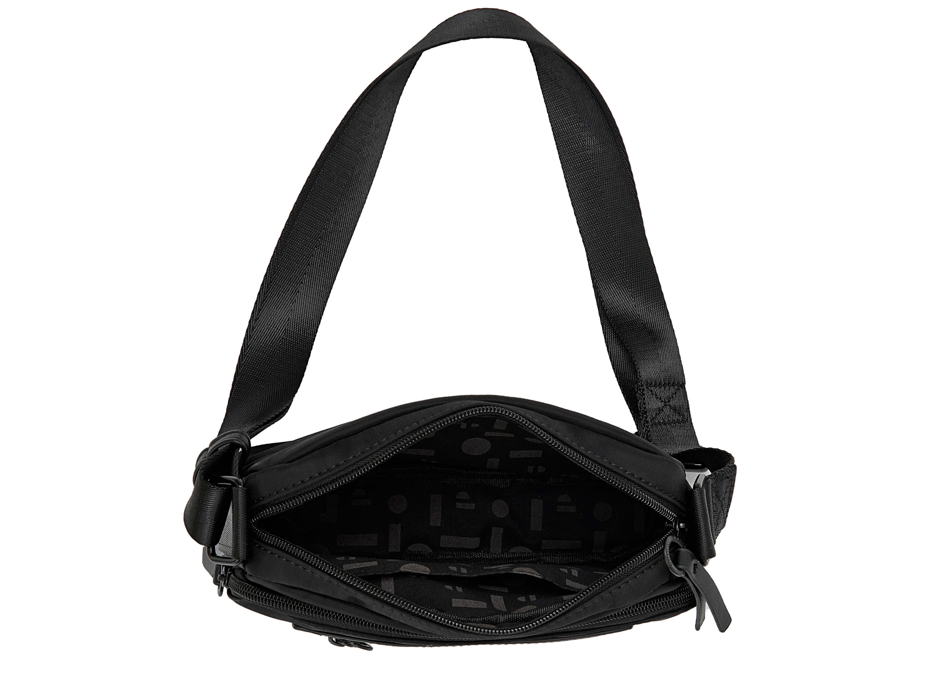 Sus dimensiones son ideales: de alto 17 cm, de ancho 23 cm y de profundidad 8 cm ¡Un tamaño óptimo para que te sientas ágil en todo momento! Además, en cuanto a compartimientos, dispone de 2 bolsillos internos (1 con cierre) para llevar tu dinero, identificación y demás pertenencias. Para que sea cómoda de usar, cuenta con correa fija ajustable y tiene un método de apertura mediante cierre plástico con carril metálico.