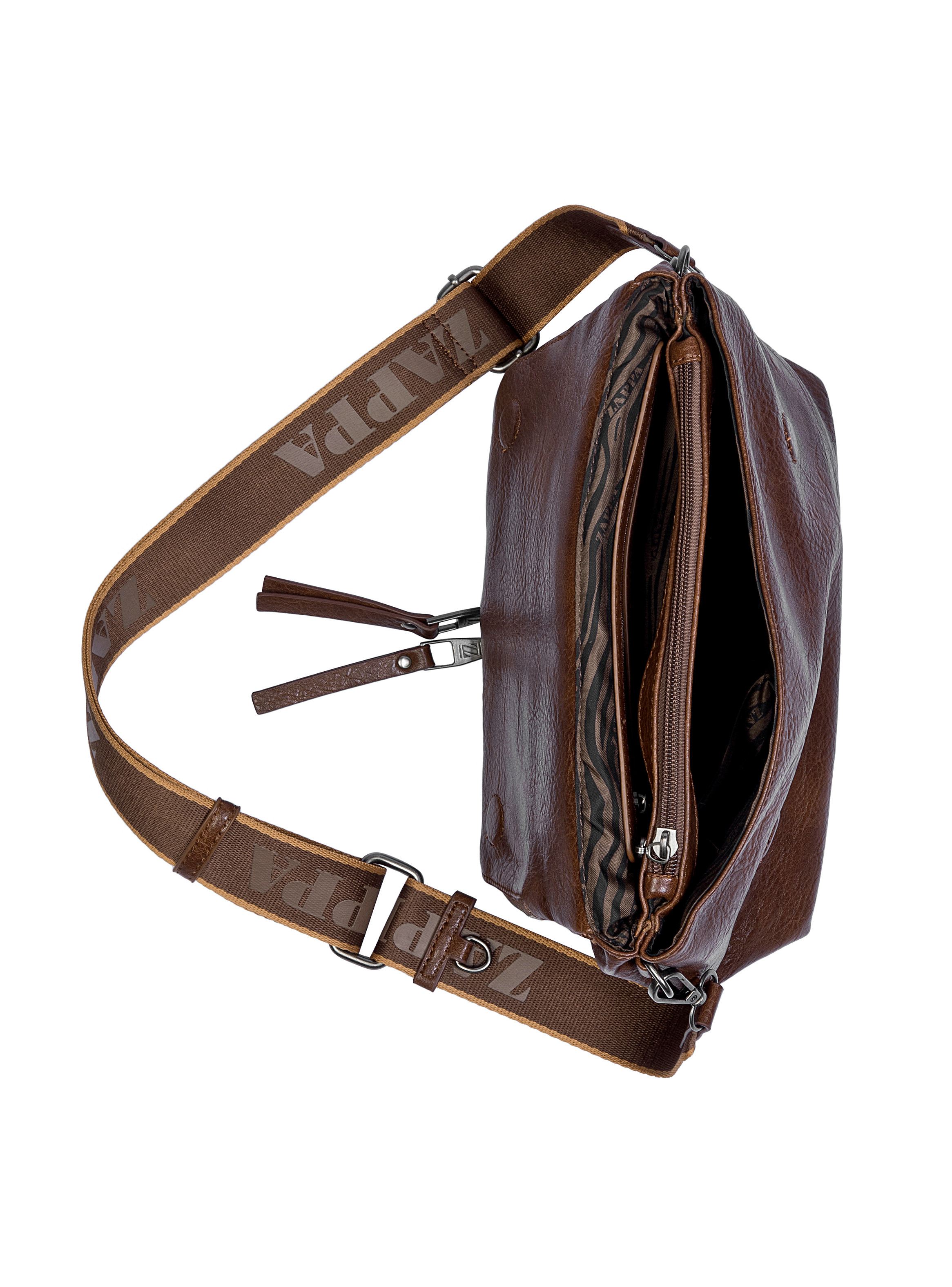 La bandolera Café Moro de Zappa es la combinación perfecta entre audacia y funcionalidad. Con dimensiones de 31 cm x 18 cm, cuenta con tres bolsillos, uno con cierre, ideal para organizar tus esenciales en un solo lugar. Su textura única y el acabado mate añaden un carácter exclusivo, mientras que la correa ajustable te permite llevarla con comodidad. Disfruta de su broche imán que asegura un cierre perfecto. ¡Atrévete a ser diferente con Zappa!