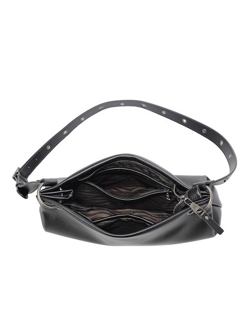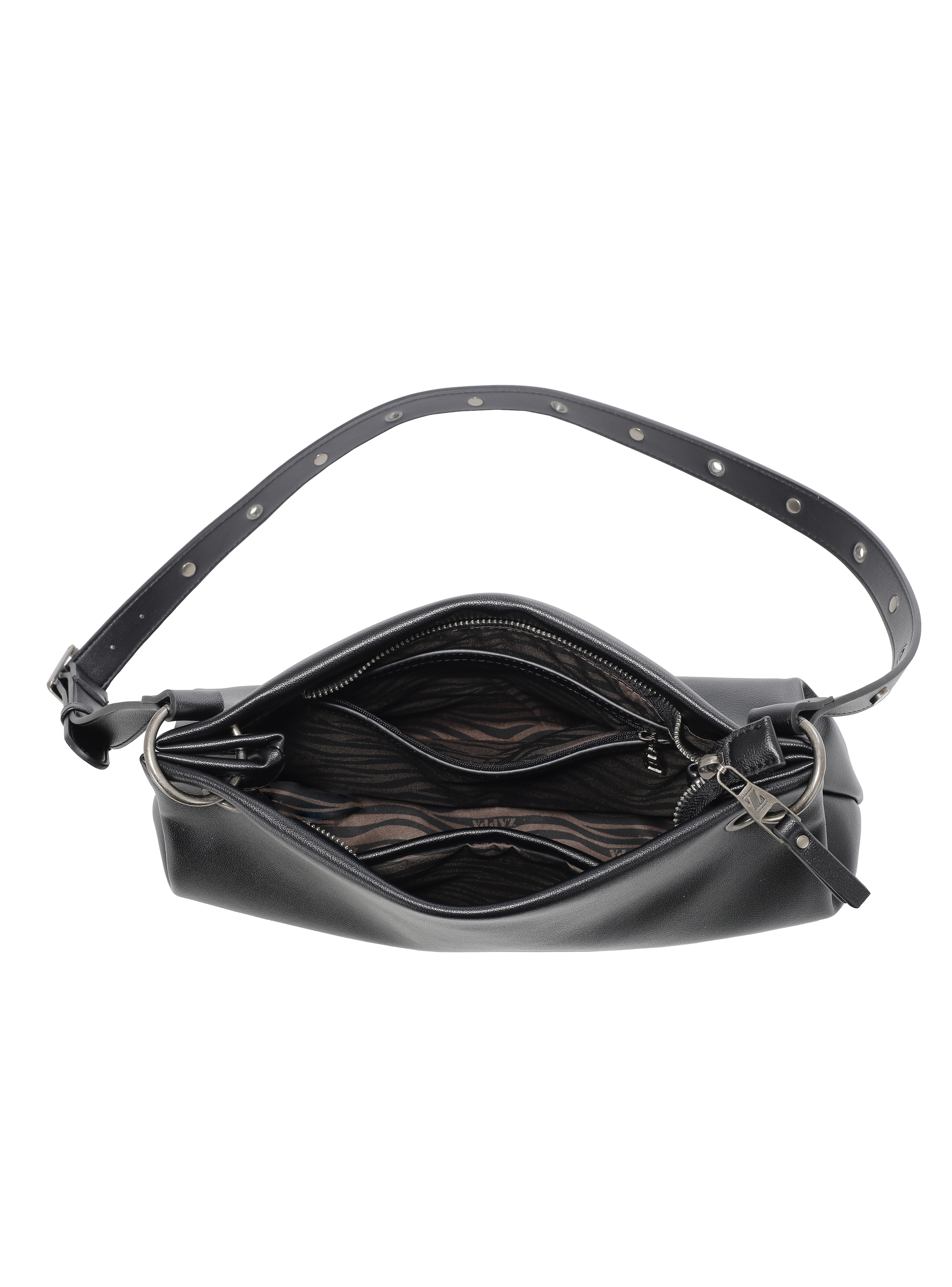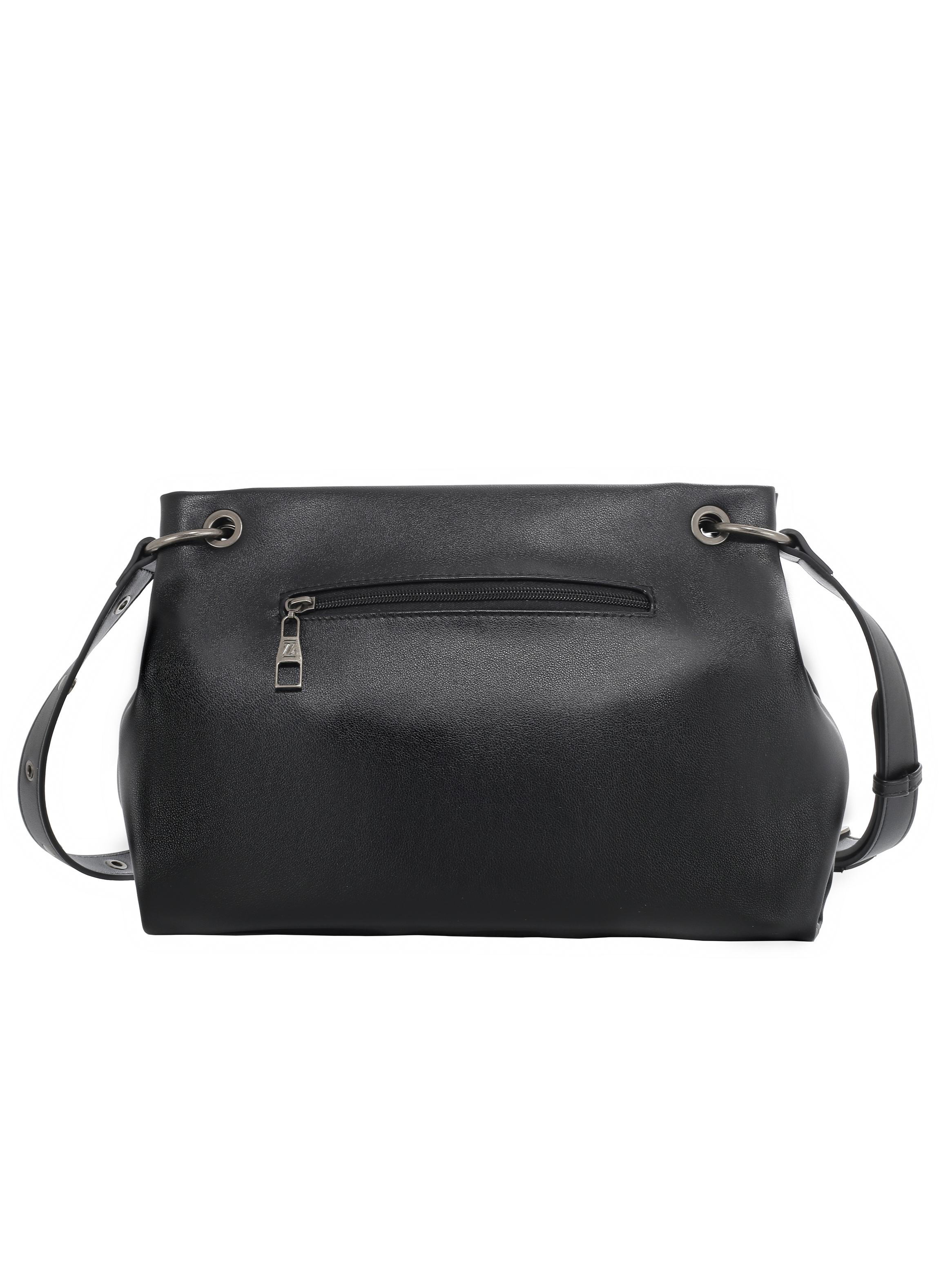 La bandolera Zappa negra redefine la elegancia moderna. Con medidas de 36 cm x 27 cm, su diseño estructurado y acabado mate presentan un carácter único. La correa extraíble y ajustable, adornada con tachas y ojetillos metálicos, asegura que lleves lo esencial con estilo. Equipado con dos bolsillos, uno con cierre metálico, esta bandolera es perfecta para el trabajo o el estudio, fusionando funcionalidad con una estética vanguardista. ¡Atrévete a llevar contigo lo mejor de Zappa!
