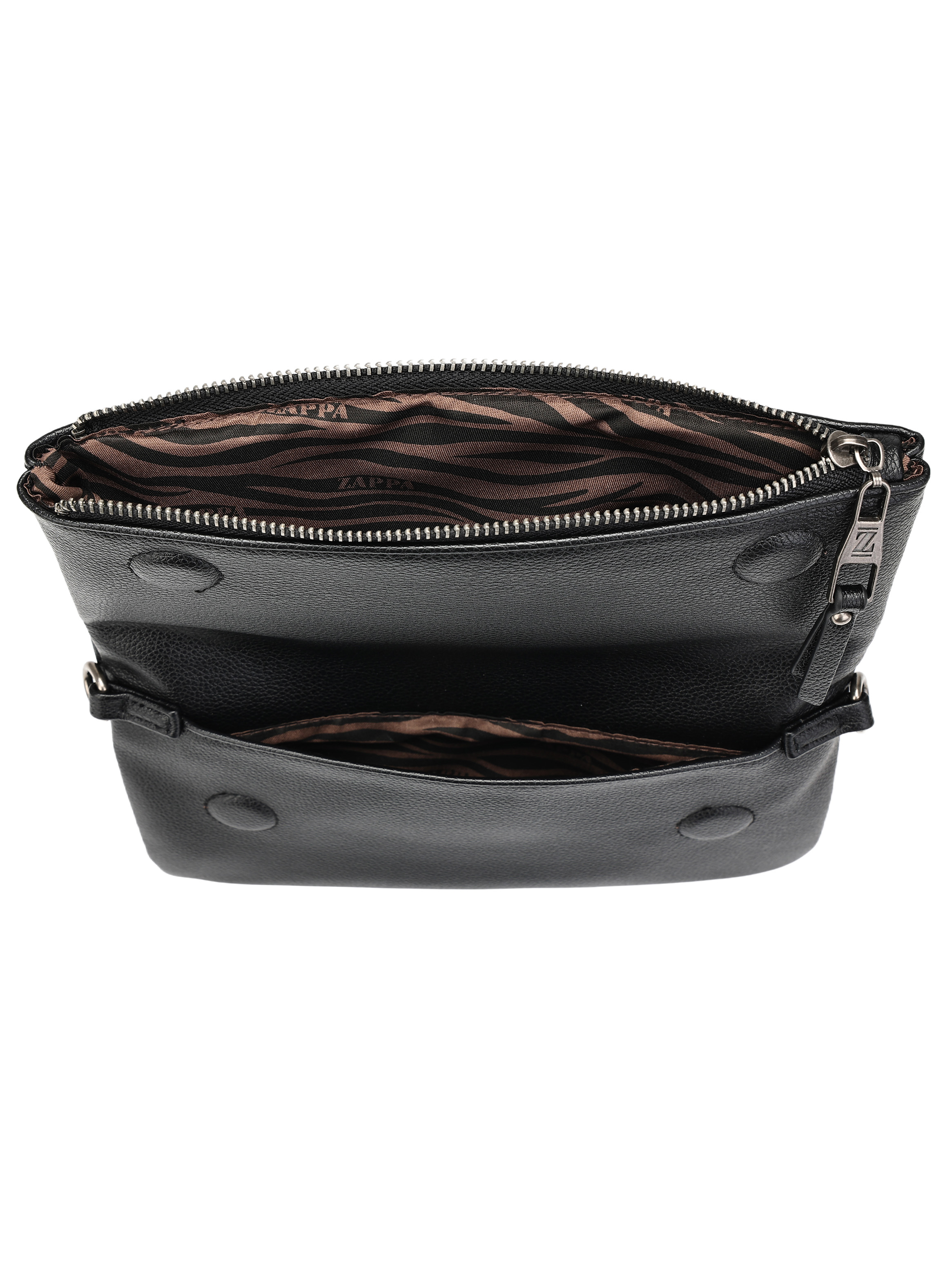 La bandolera Zappa en negro es tu compañera ideal para destacar en cualquier entorno. Sus medidas de 27x16 cm la hacen perfecta para llevar lo esencial, mientras que su diseño con detalles metálicos y tachas le otorgan una actitud audaz. Con un cierre imán y bolsillos prácticos, cada detalle está pensado para fusionar moda y funcionalidad. La textura graneada añade un toque moderno, ideal para tus días laborales o académicos. ¡Sé el centro de atención con Zappa y define tu estilo!