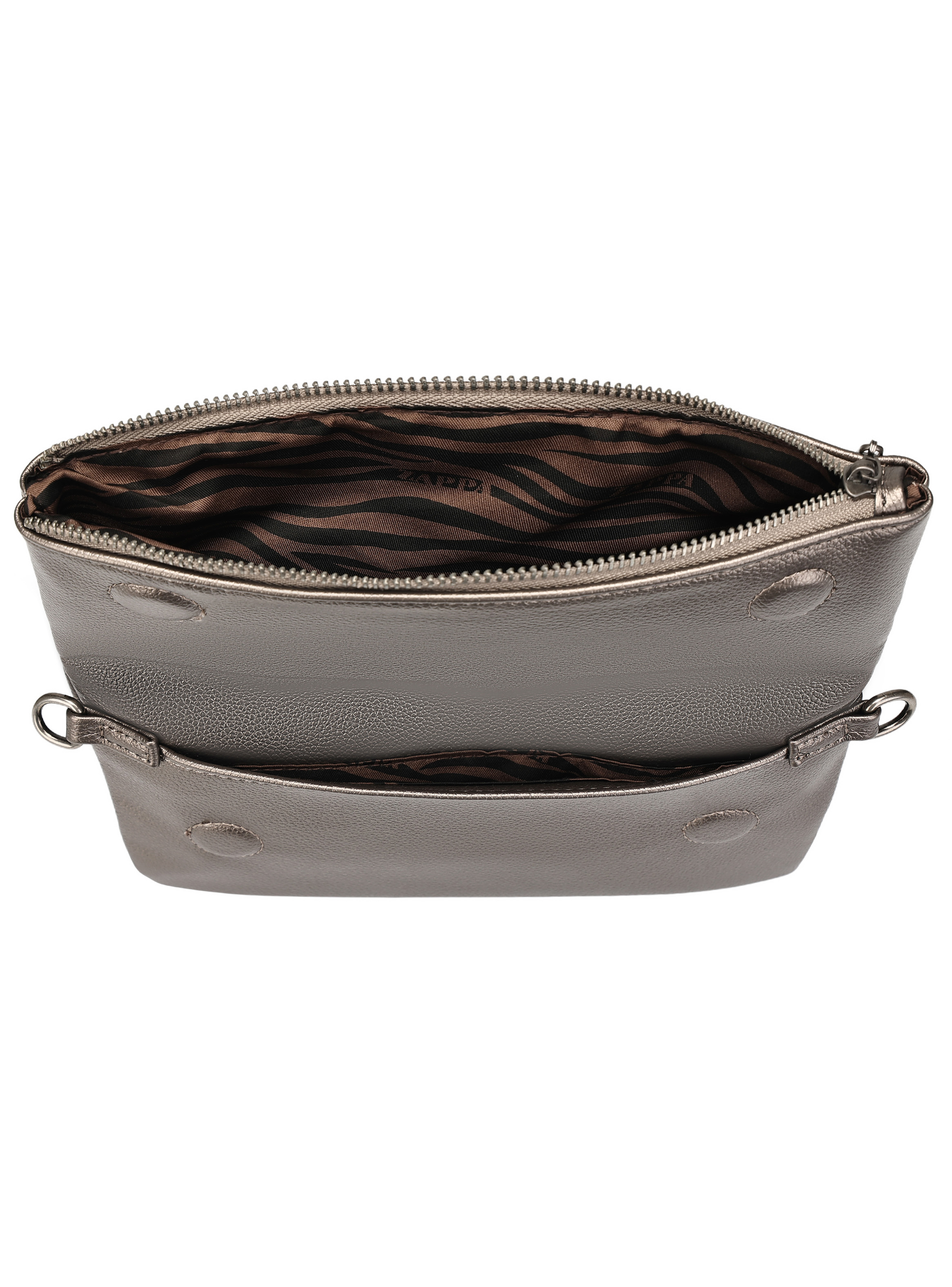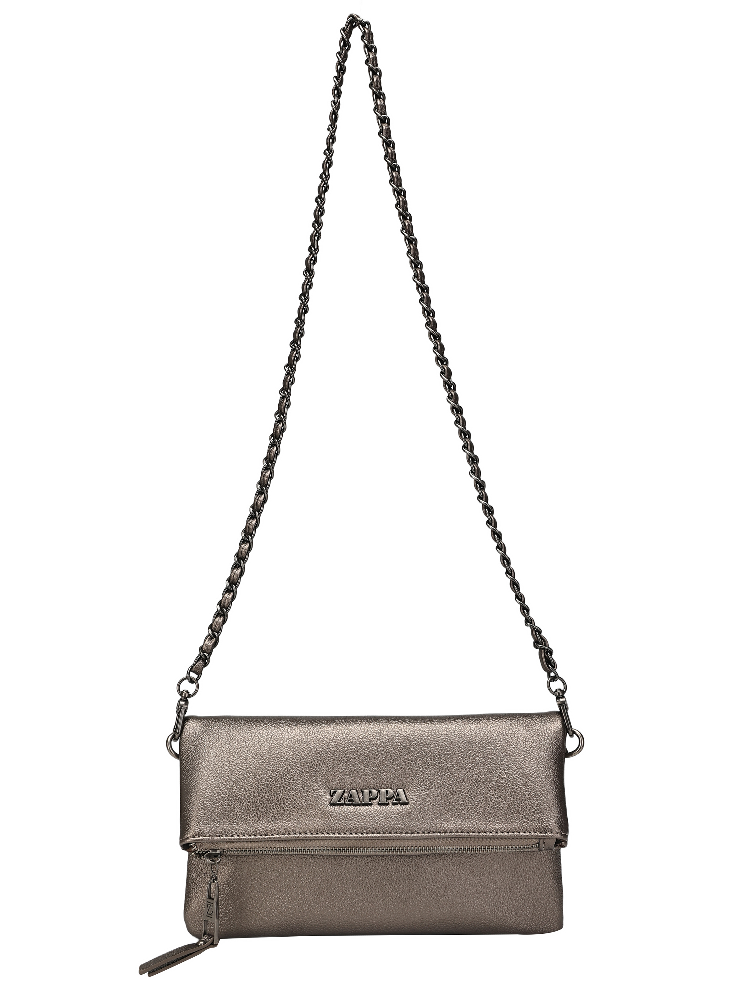 La Bandolera Zappa en color negro acero es la expresión perfecta de estilo y funcionalidad. Con un diseño contemporáneo de 26 cm x 16 cm, cuenta con dos bolsillos, uno con cierre, ideal para llevar tus esenciales. Su correa metálica extraíble con detalles tejidos aporta un toque distintivo y moderno. Fabricada con un acabado graneado que resalta su textura y carácter, es el accesorio ideal para cualquier ocasión. Define tu look con Zappa y lleva contigo esa actitud única que te distingue.