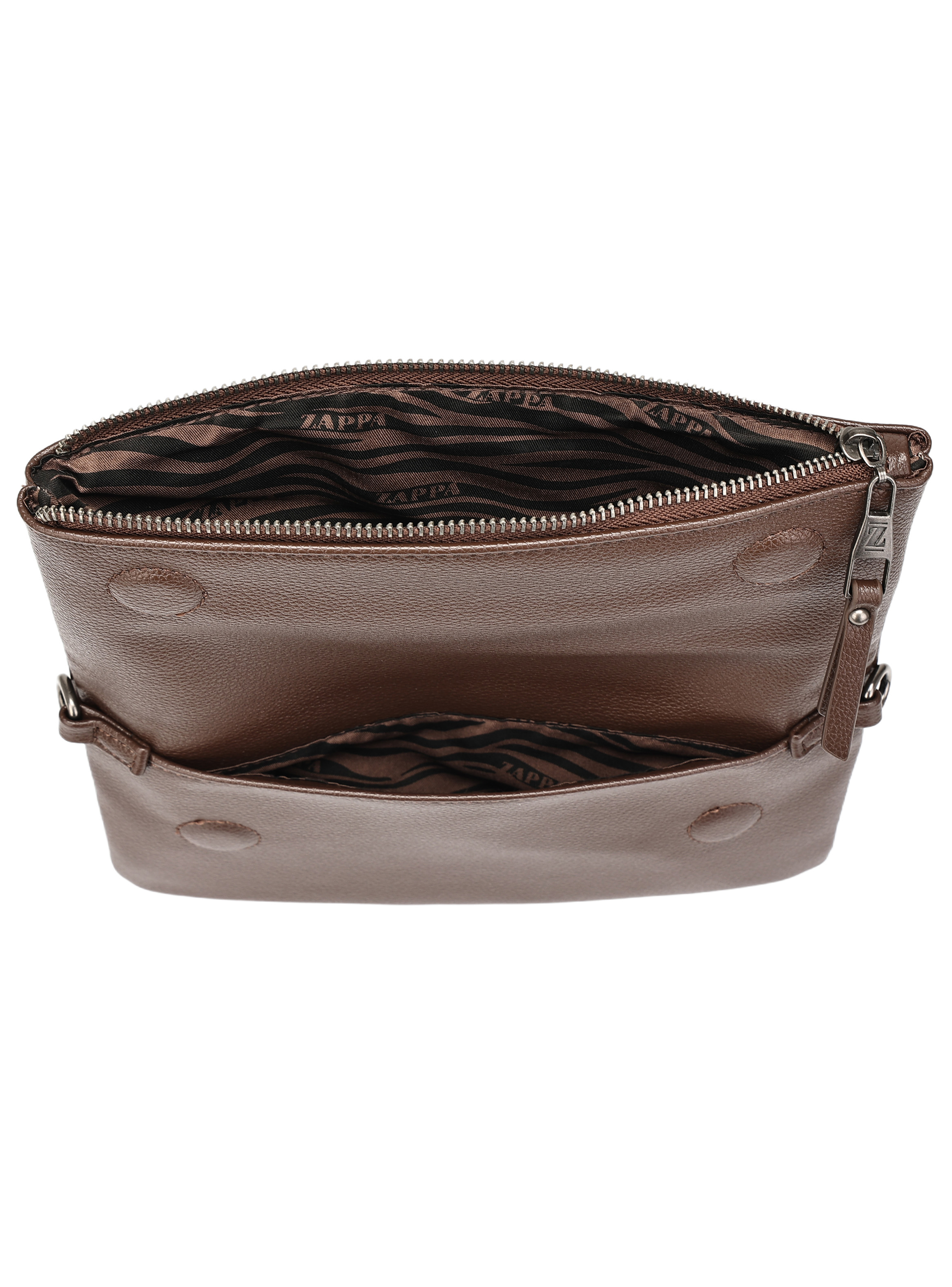 Descubre la bandolera Zappa en un cautivador tono café que redefine la elegancia moderna. Con medidas de 16 cm x 26 cm, esta pieza presenta un acabado graneado que realza su textura, mientras que la correa metálica extraíble y sus llamativos detalles tejidos marcan la diferencia. Sus dos amplios bolsillos, uno de ellos con cierre, garantizan funcionalidad y seguridad para tus esenciales. Siente la actitud Zappa con un broche imán que asegura tu estilo. Perfecta para cualquier ocasión, desde el trabajo hasta un encuentro casual.