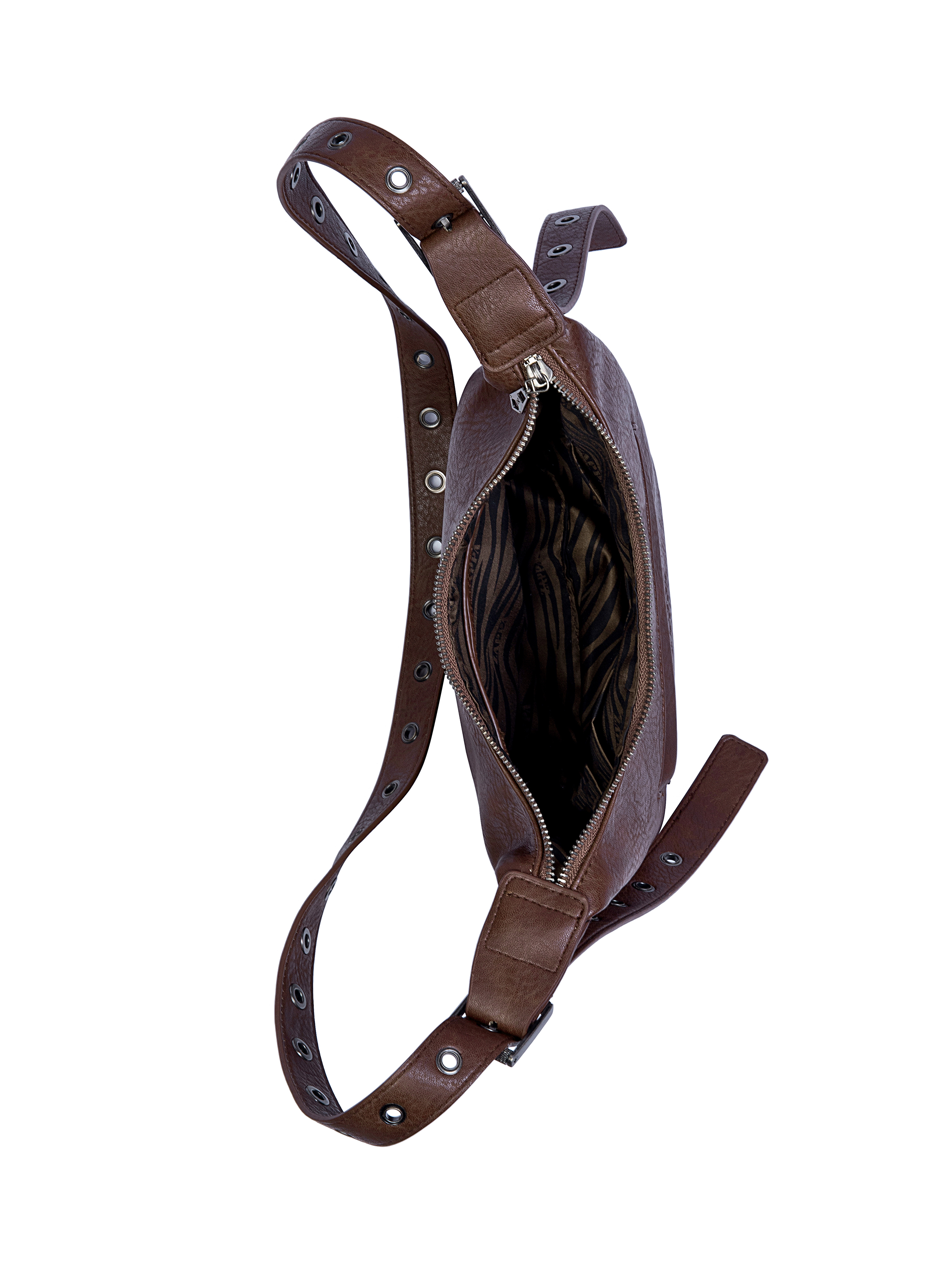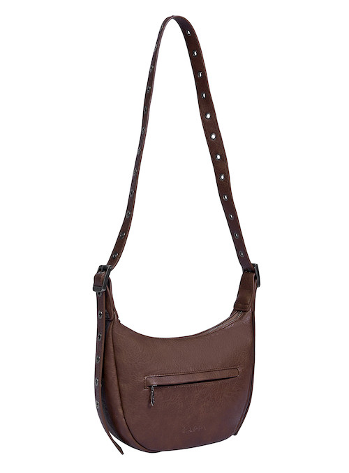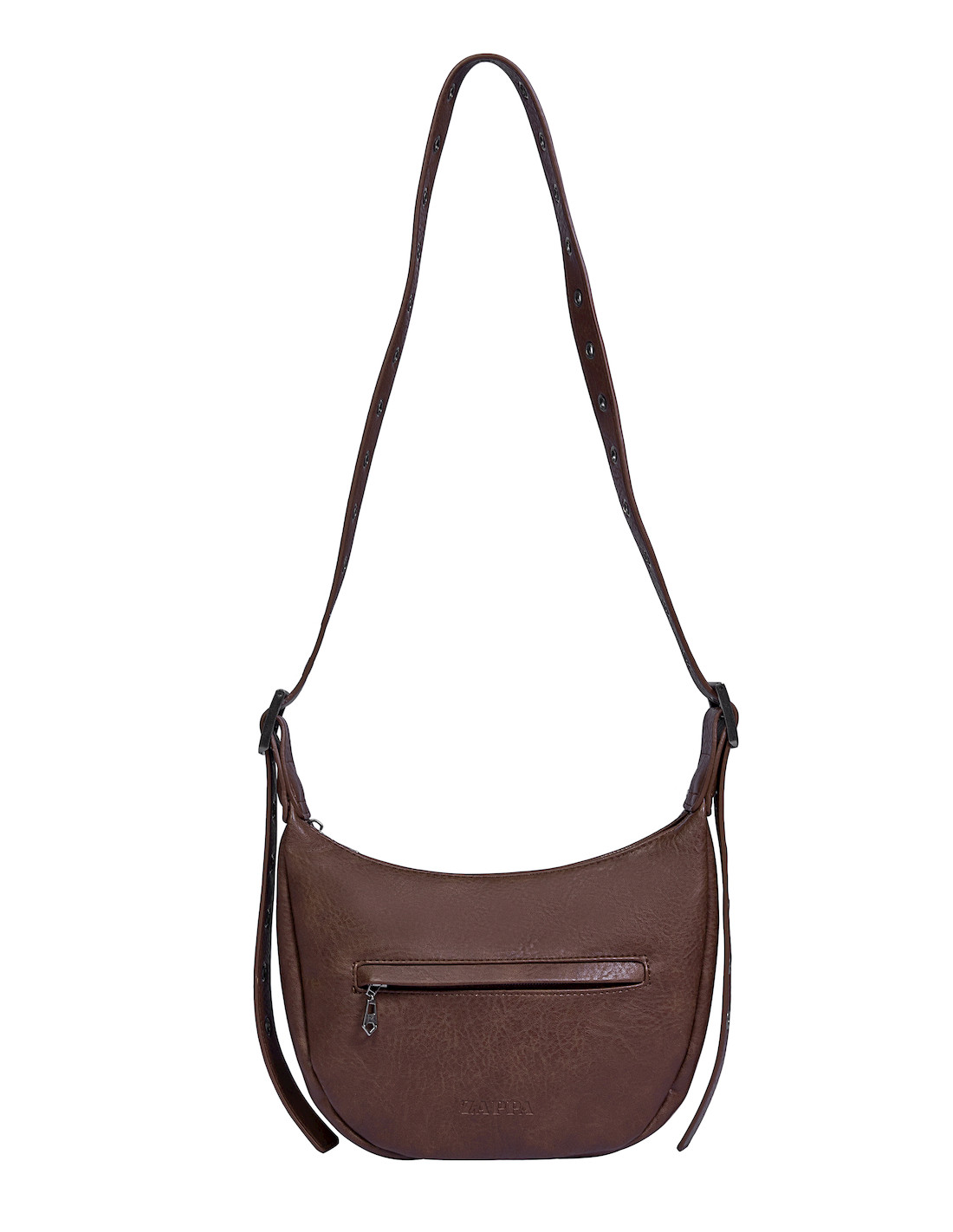 Presentamos la bandolera Zappa en un sofisticado Negro Moro, diseñada para acompañarte con estilo en cada aventura. Con unas medidas de 18 cm de alto, 26 cm de ancho desde el centro y 19 cm desde la base, y una profundidad de 8 cm, su funcionalidad brilla en cada interior laboral y académico. Su correa ajustable, adornada con ojetillos metálicos, te ofrece un ajuste perfecto y un toque audaz. Cuenta con dos útiles bolsillos, uno con cierre, asegurando que lo esencial esté siempre a tu alcance. ¿Estás lista para llevar tu look al siguiente nivel? Este es un accesorio que grita ‘esto es muy Zappa’.