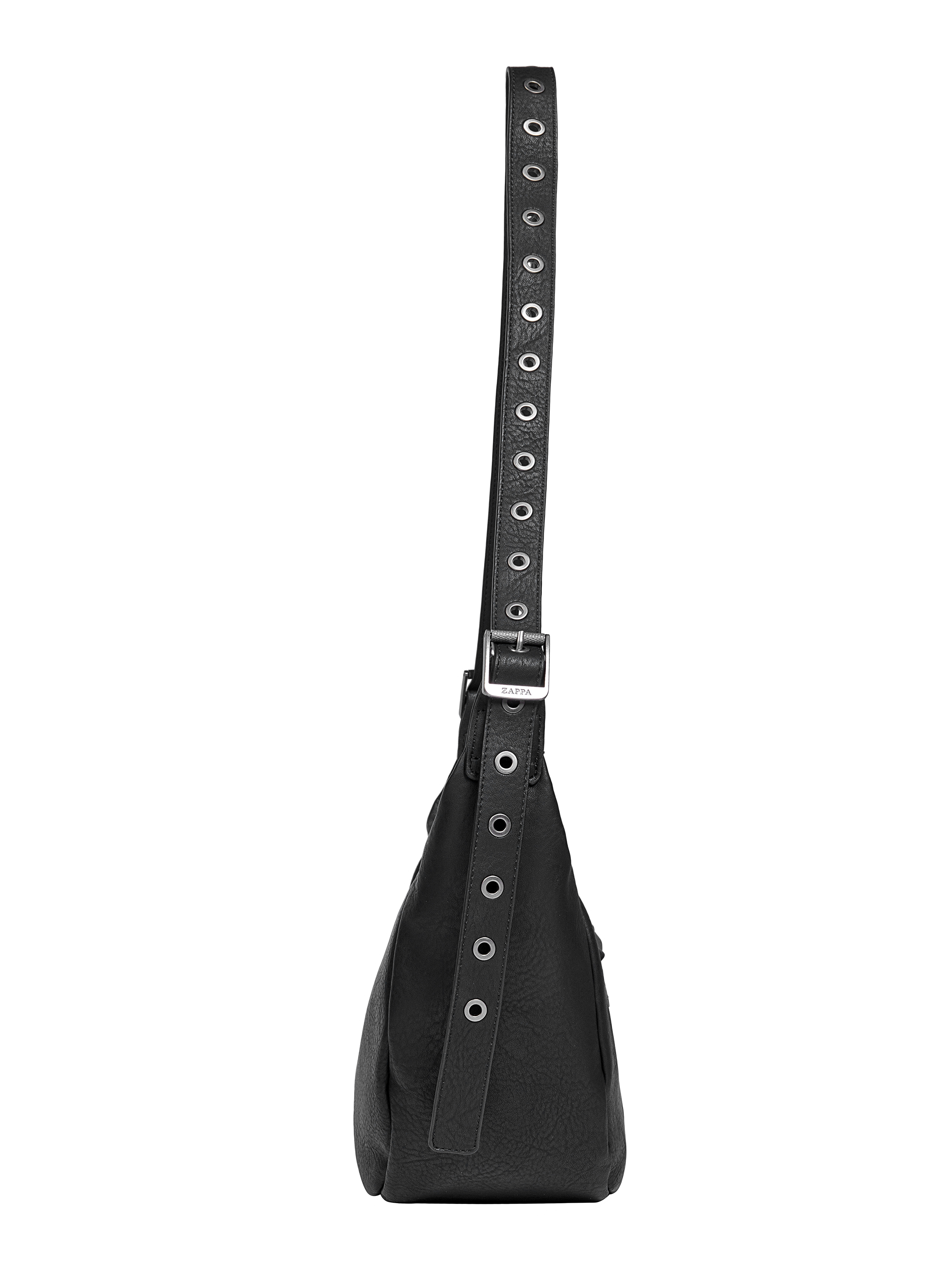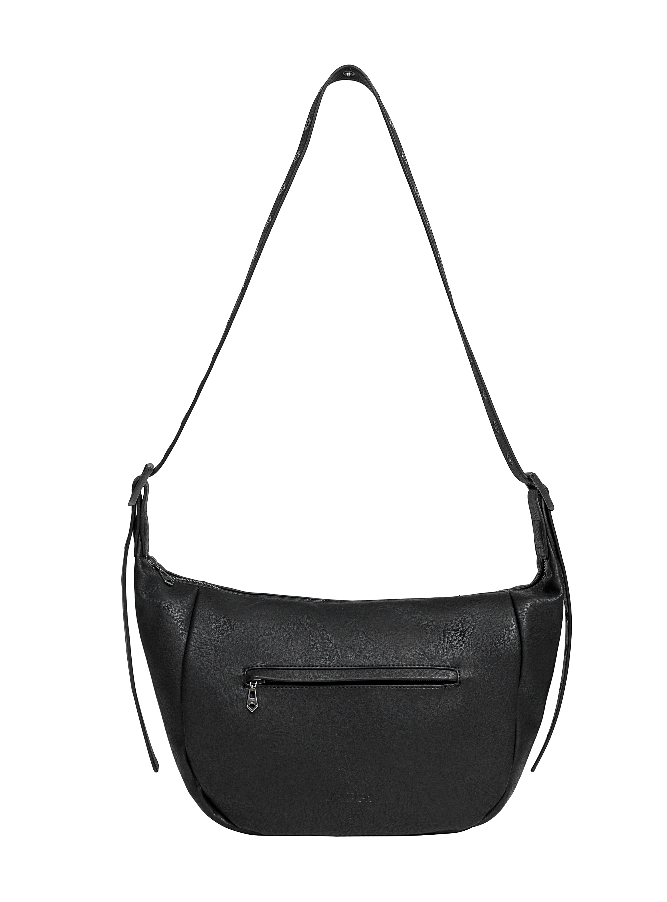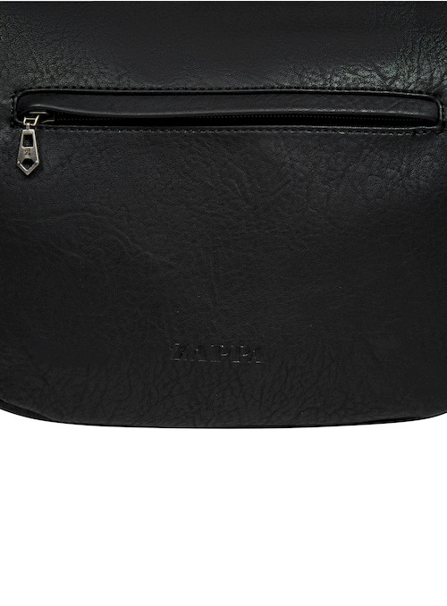 La Bandolera Negra de Zappa es tu aliada perfecta para días llenos de estilo y actitud. Con dimensiones de 18 cm de alto y 26 cm de ancho, esta pieza combina funcionalidad y diseño contemporáneo. Su textura suave y los detalles de ojetillos y hebilla metálica aportan un toque moderno. Con múltiples bolsillos y correa ajustable, es ideal para llevar lo necesario en el trabajo, clases o un día de paseo. Un accesorio que redefine tu look, ¡es muy Zappa!