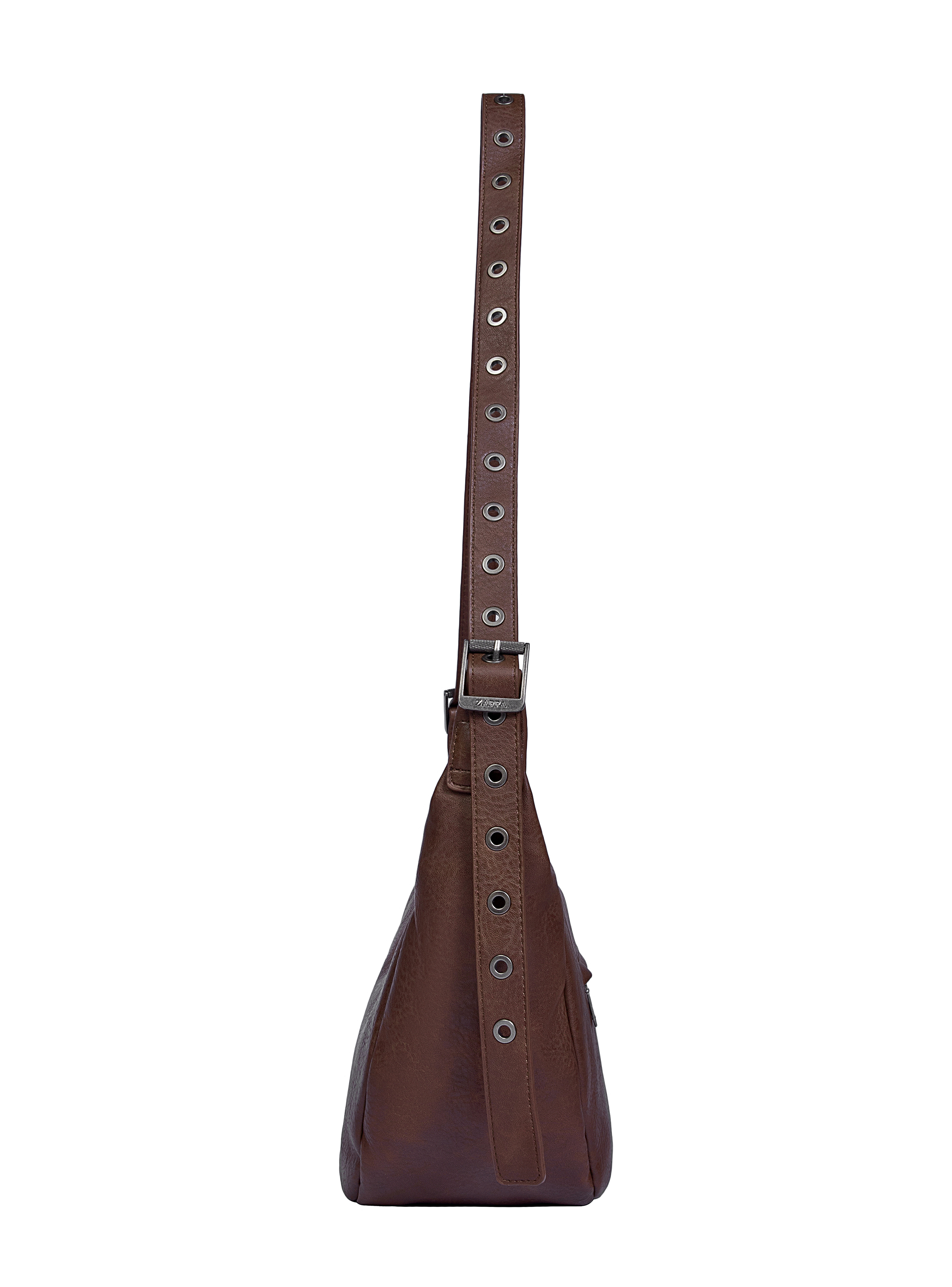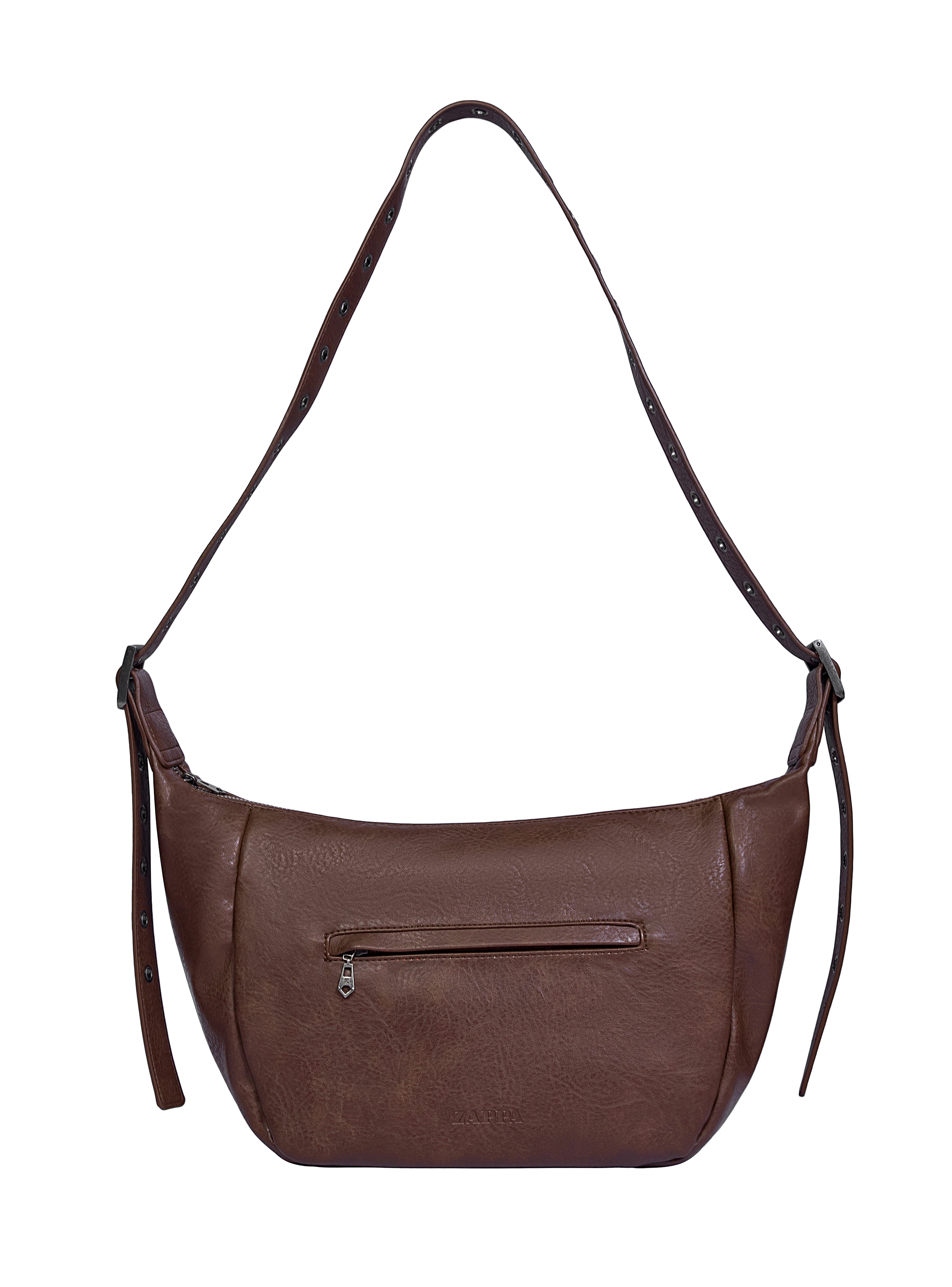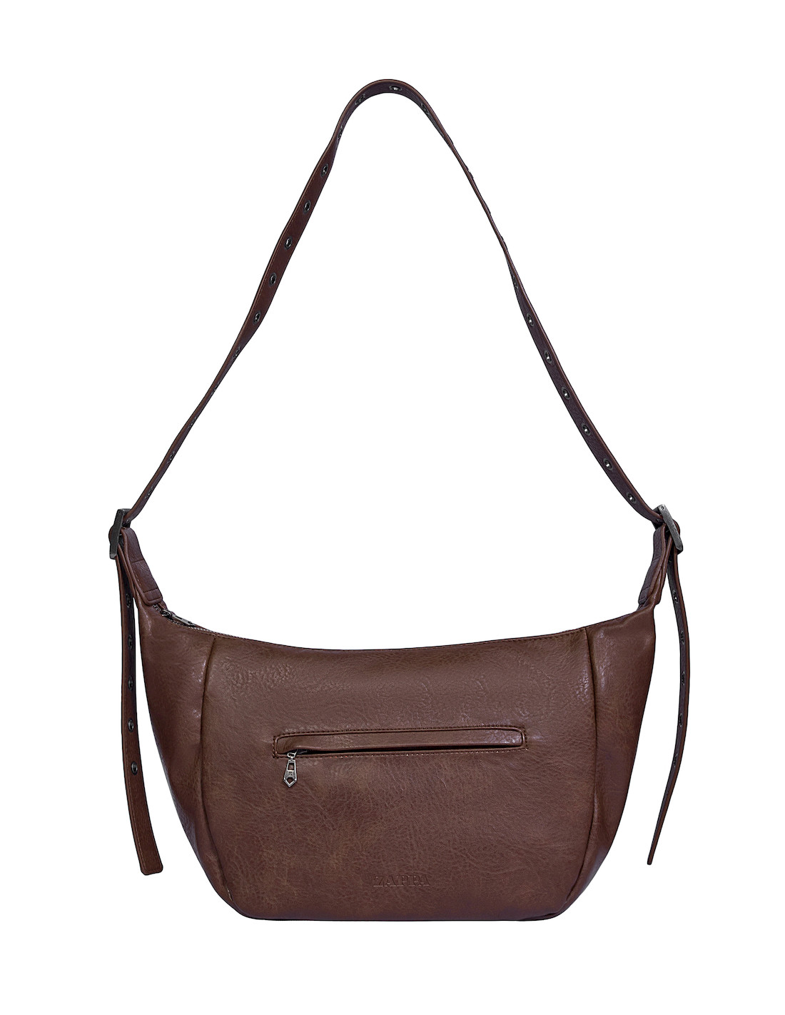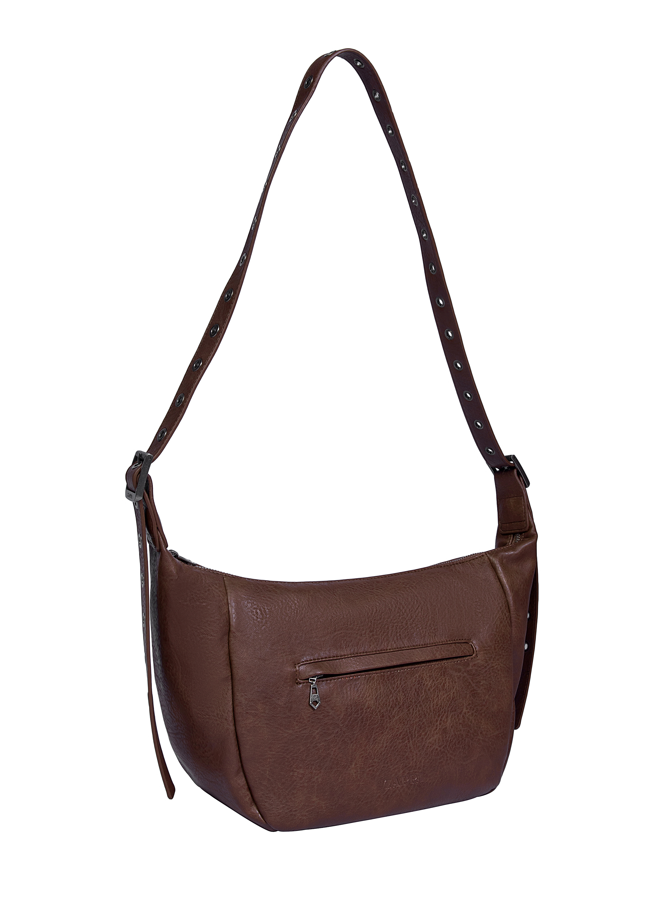 La bandolera Zappa en color moro es la opción perfecta para quienes buscan estilo y practicidad. Con una medida de 23 cm de alto, 13 cm de profundidad y un diseño moderno que incluye una correa ajustable adornada con ojetillos metálicos, que le añade un toque vanguardista. Su cierre metálico y tres bolsillos, uno de ellos con cierre, garantizan que lleves lo esencial de manera segura. Con un acabado en un tono cálido y texturizado, esta bandolera es ideal para el día a día, en espacios laborales o académicos. ¡Atrévete a lucir única!