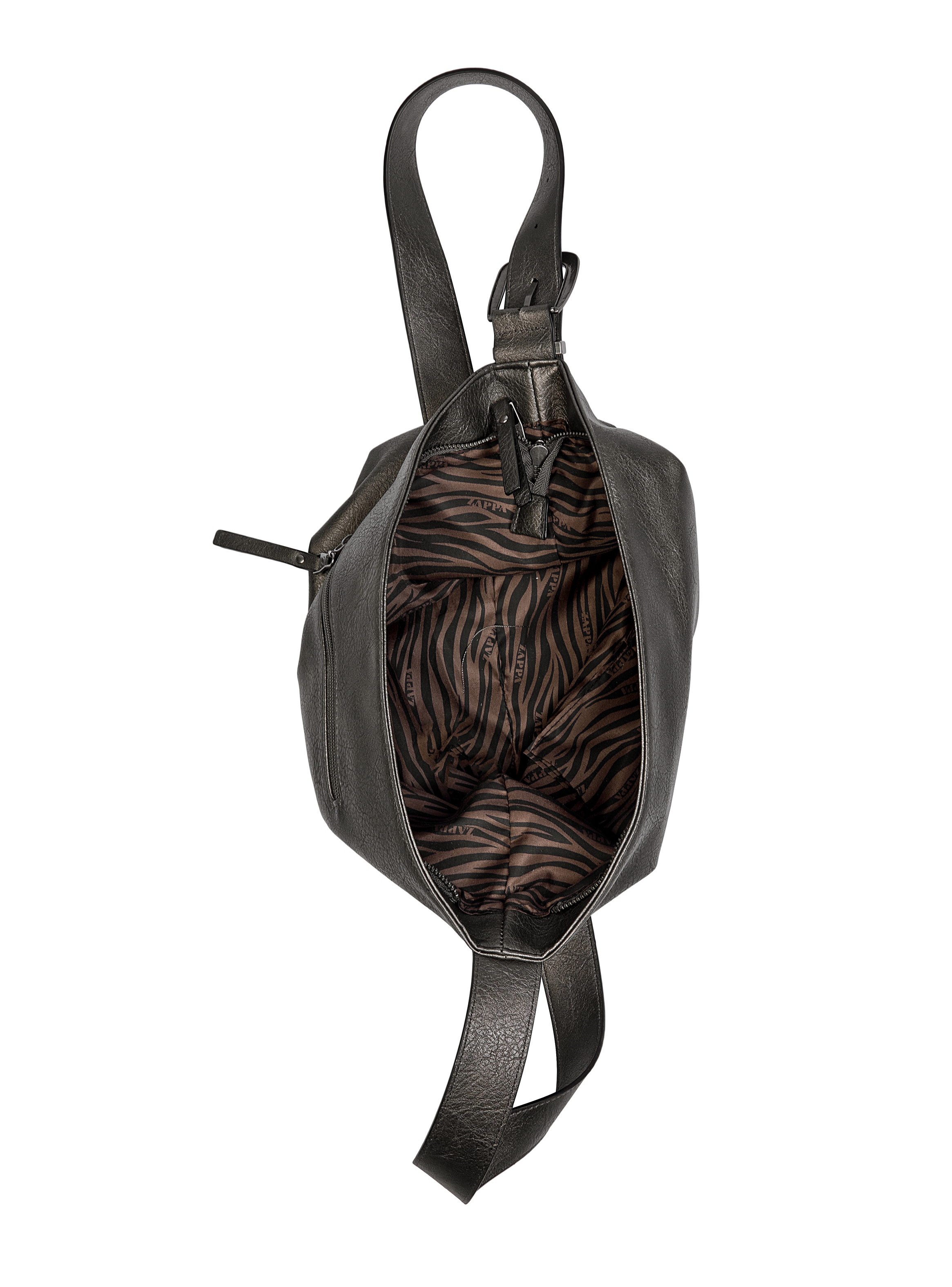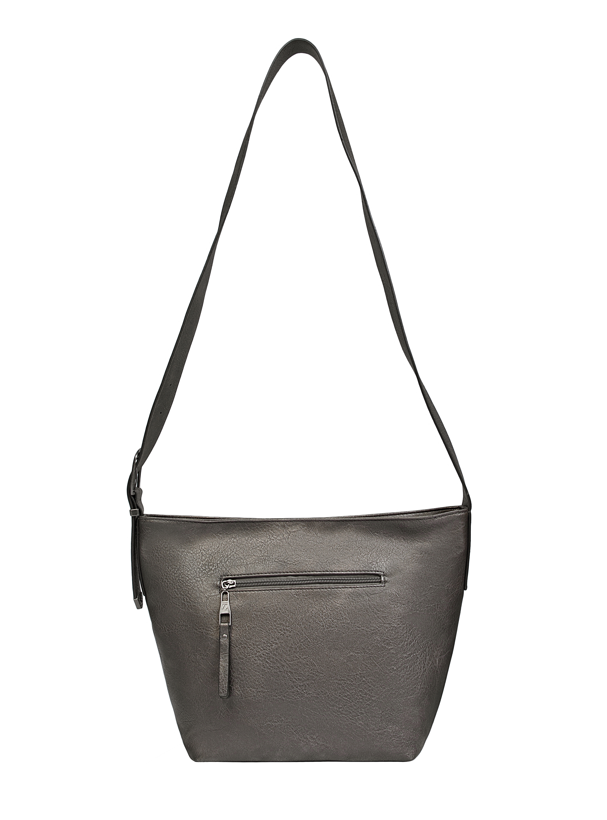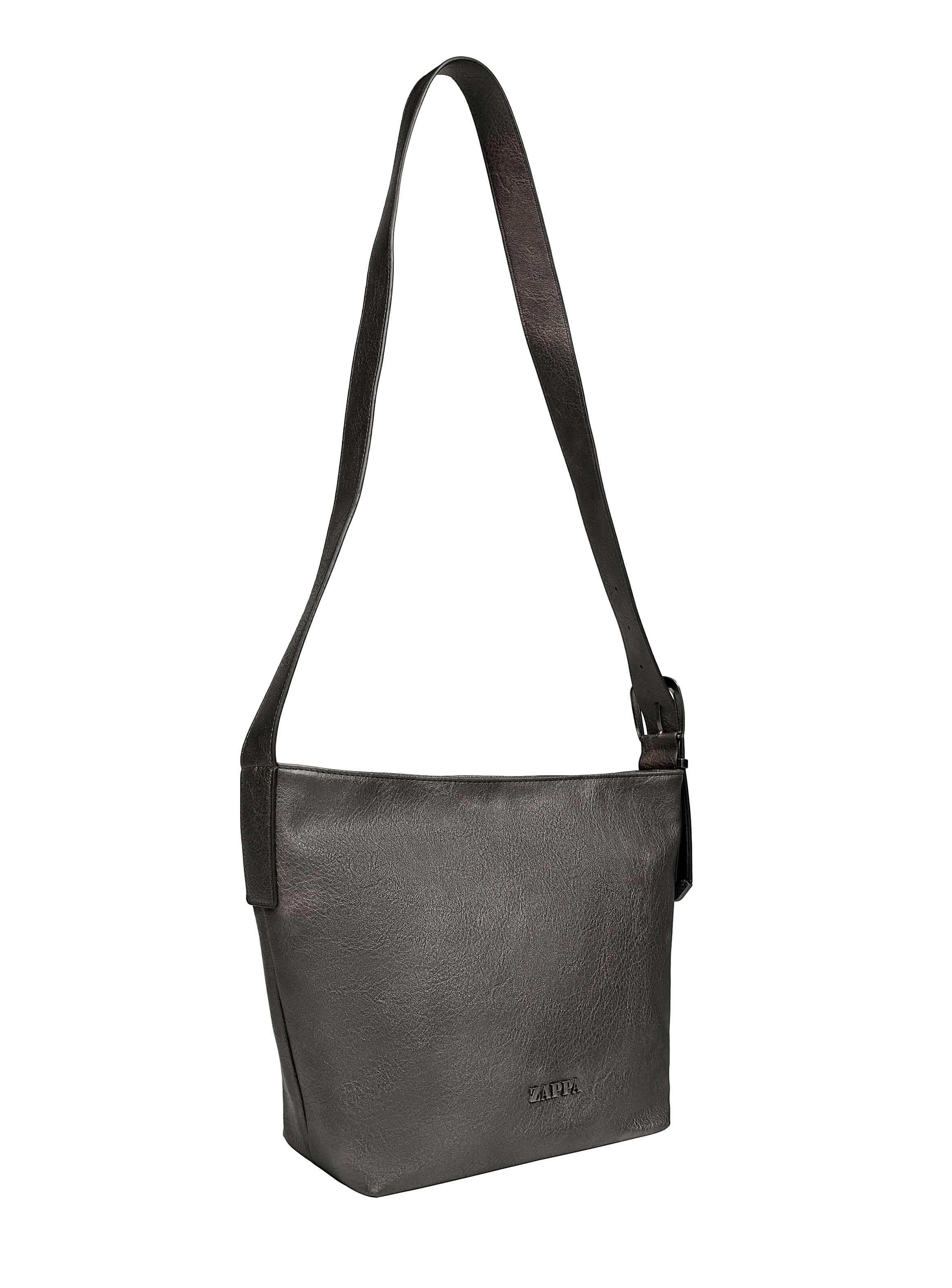 Atrévete a llevar contigo esa actitud vanguardista con la bandolera Zappa en un elegante tono negro acero. Con unas medidas de 28 cm de alto, 38 cm de ancho (desde el centro) y 14 cm de profundidad, ofrece un espacio ideal para llevar lo esencial en tus días laborales o académicos. Su correa ajustable y cierre metálico añaden un toque moderno y funcional. Además, el acabado texturizado resalta la personalidad audaz de cada detalle, mientras que los tres bolsillos te permiten organizar tus objetos con estilo. ¡Eleva tu look y marca la diferencia!