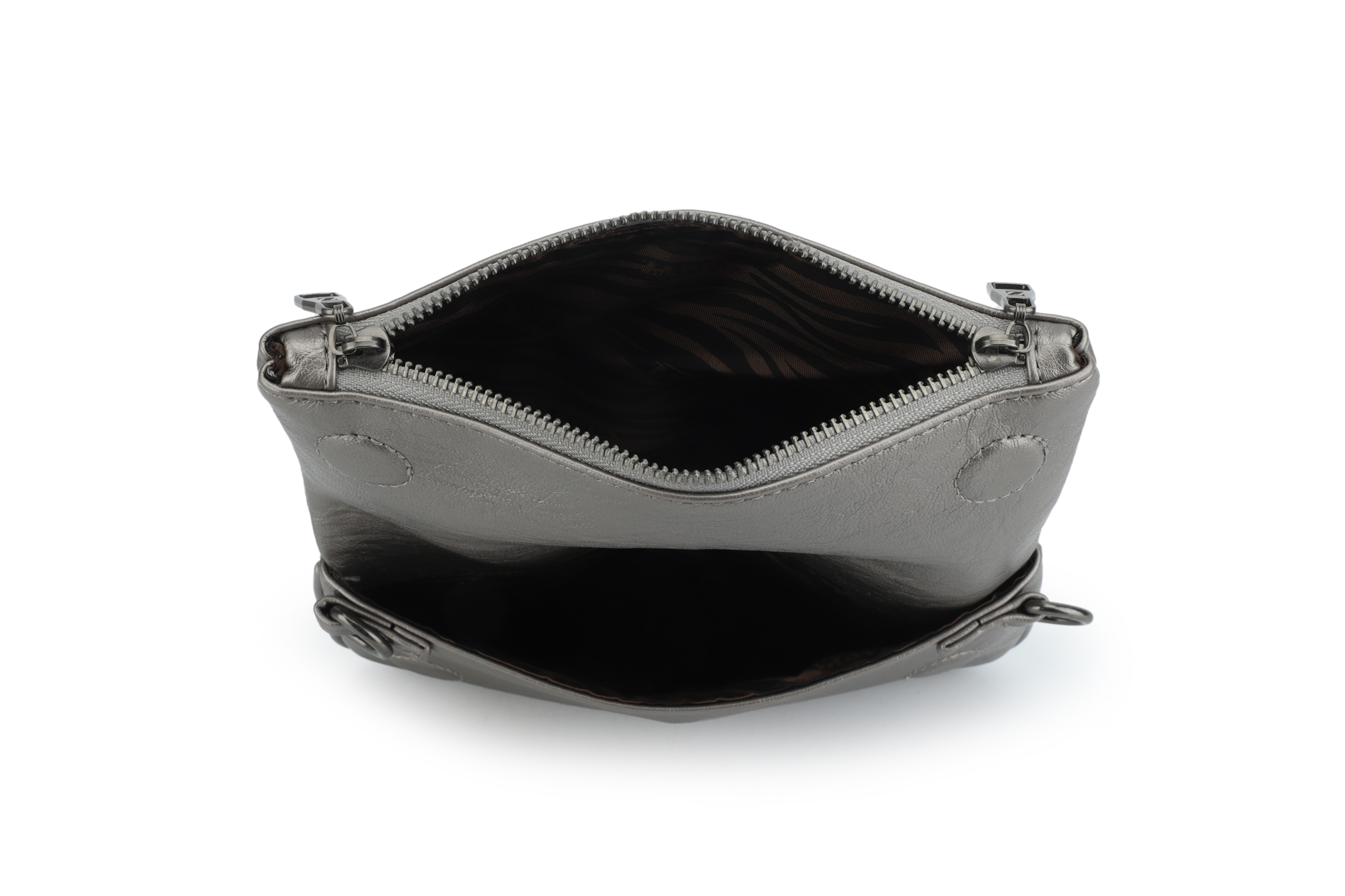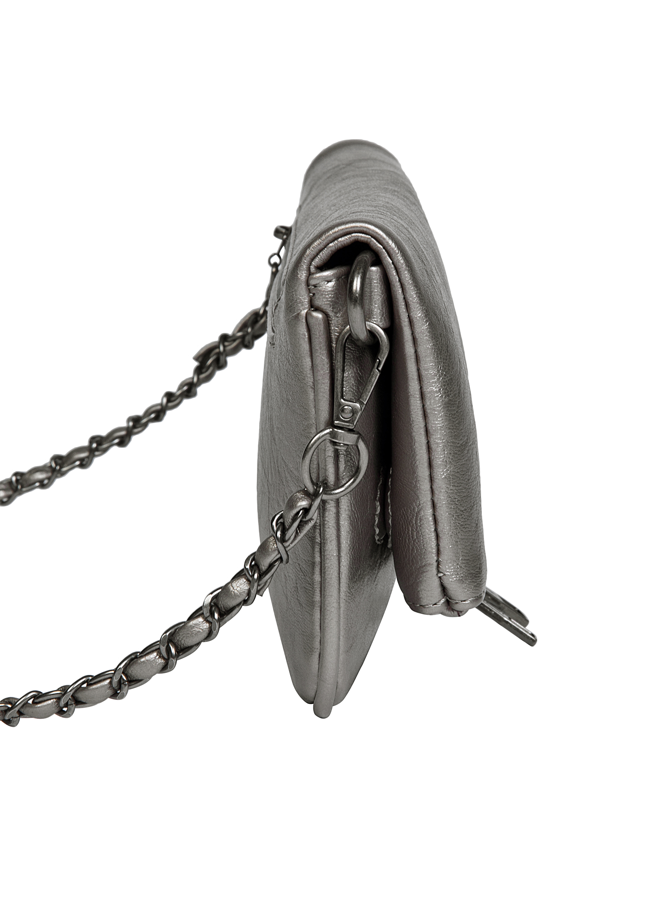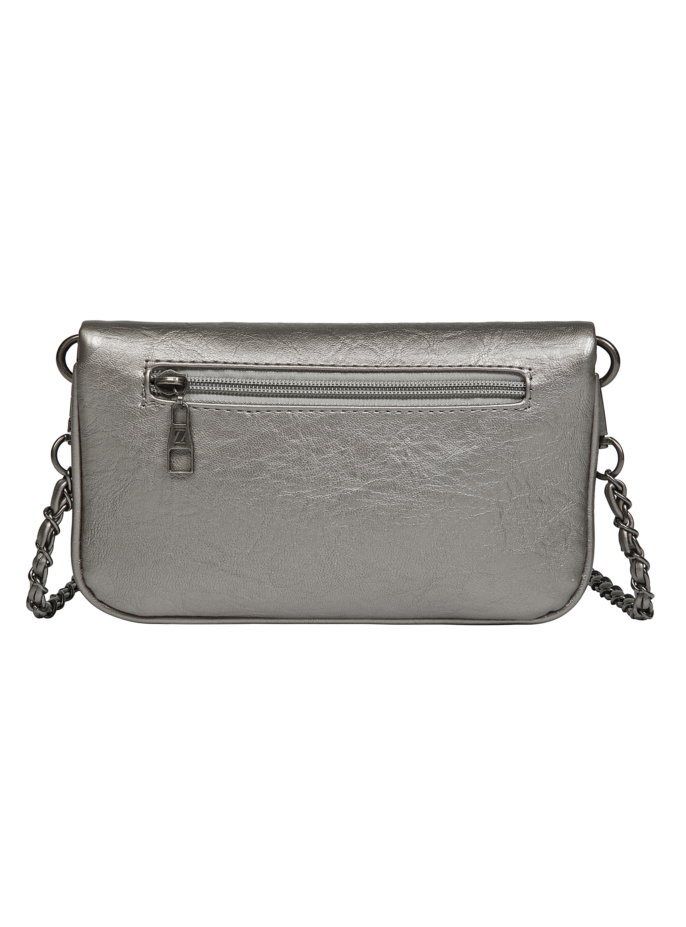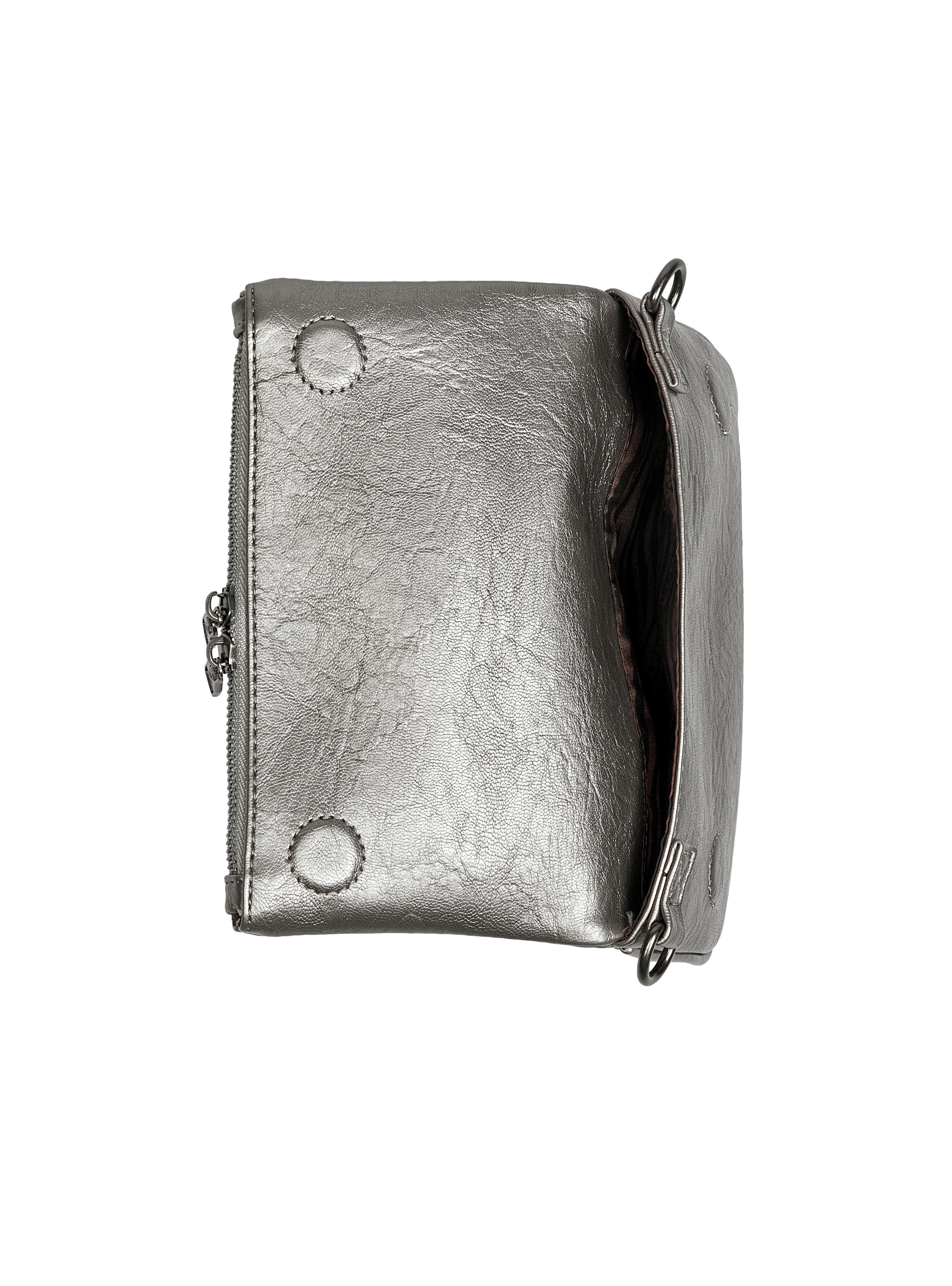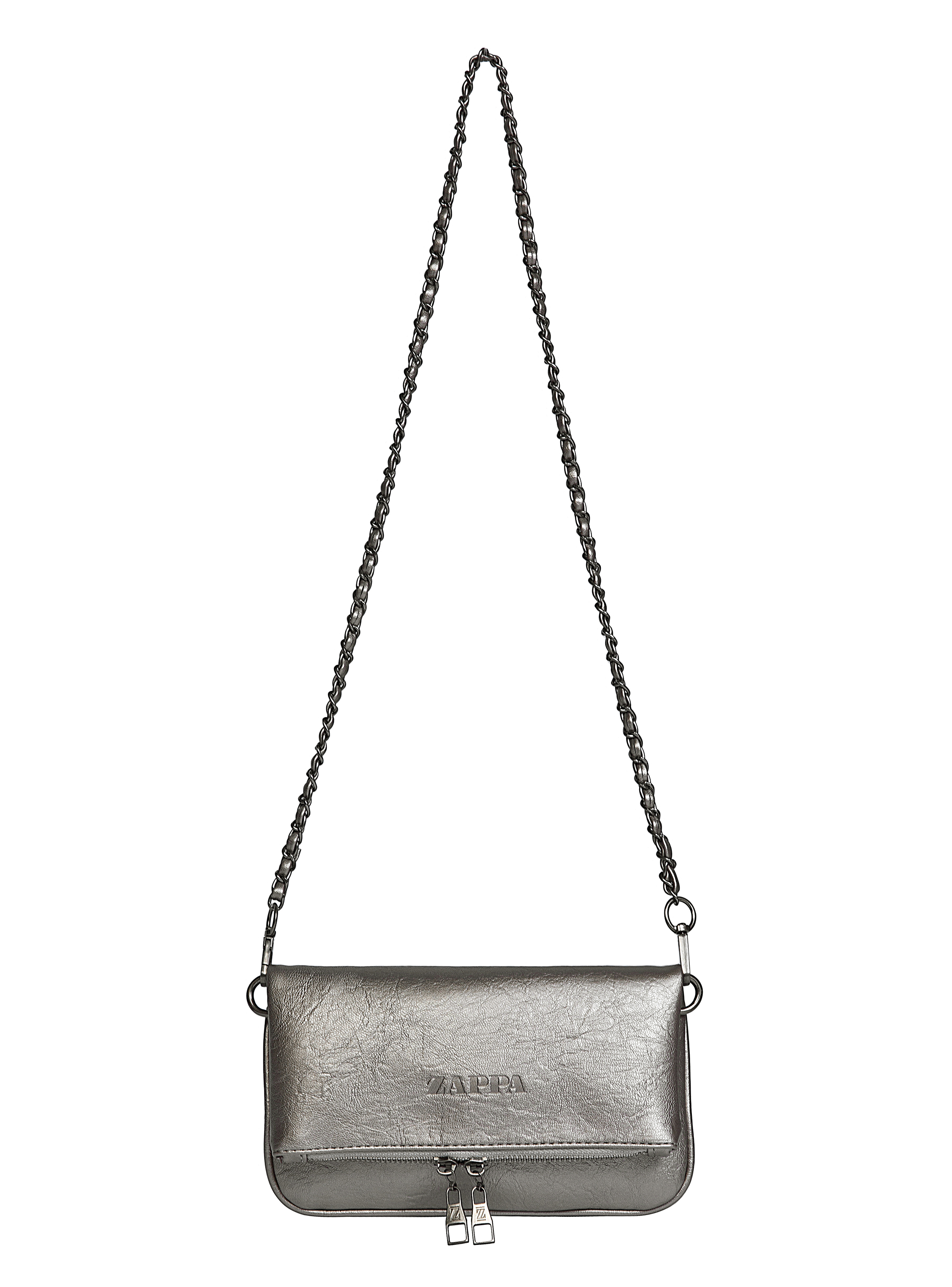 La bandolera Zappa en un brillante acabado acero redefine la elegancia urbana. Con sus medidas de 24 cm x 14 cm, su espacio interno se optimiza en 1 bolsillo abierto y 1 compartimento con cierre, ideal para llevar tus imprescindibles. La correa metálica tejida añade un toque de audacia, mientras que el broche imantado asegura un uso práctico y sofisticado. Con su textura única, esta pieza no solo destaca, sino que también acompaña cada uno de tus movimientos con estilo y personalidad.