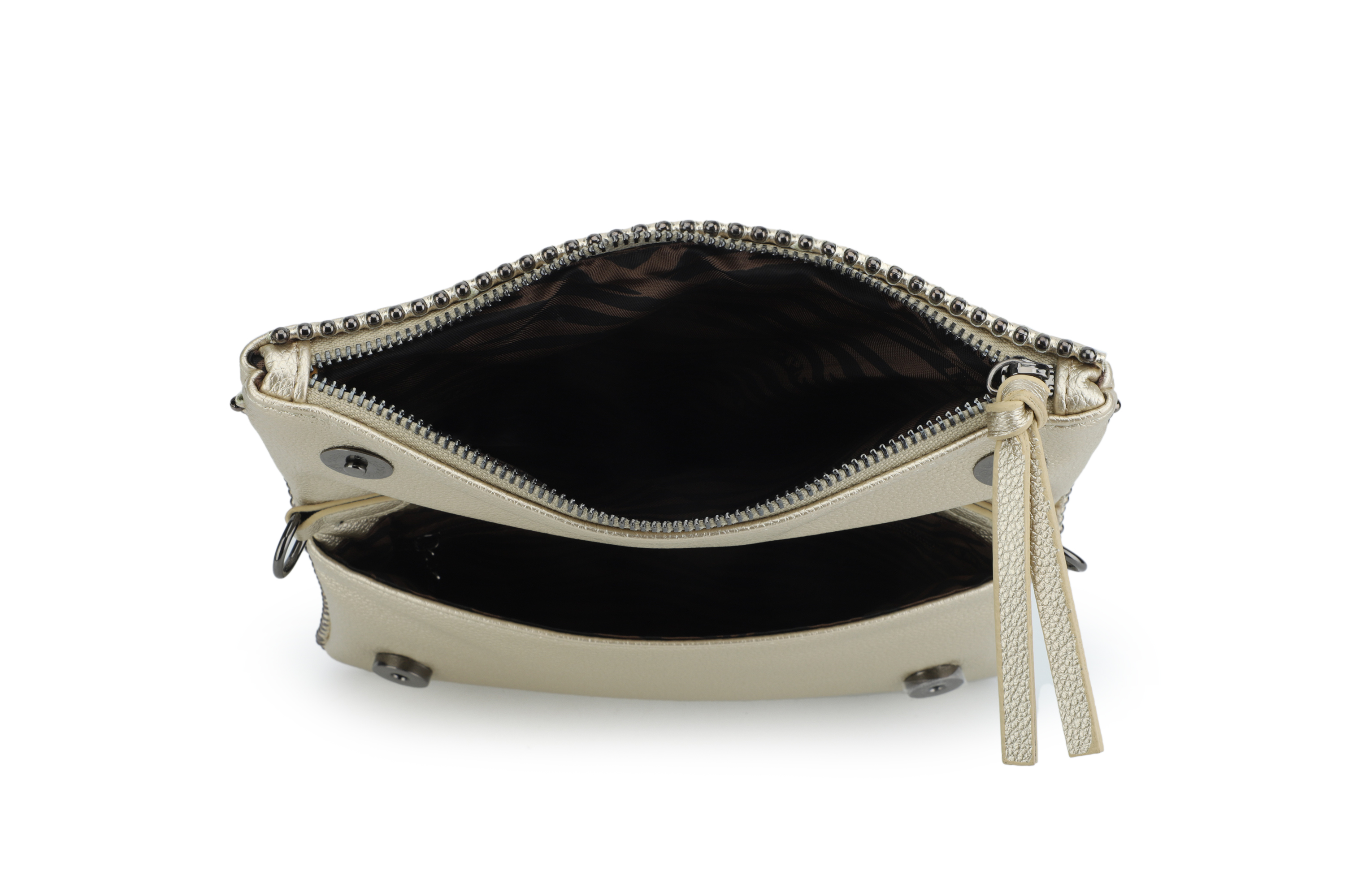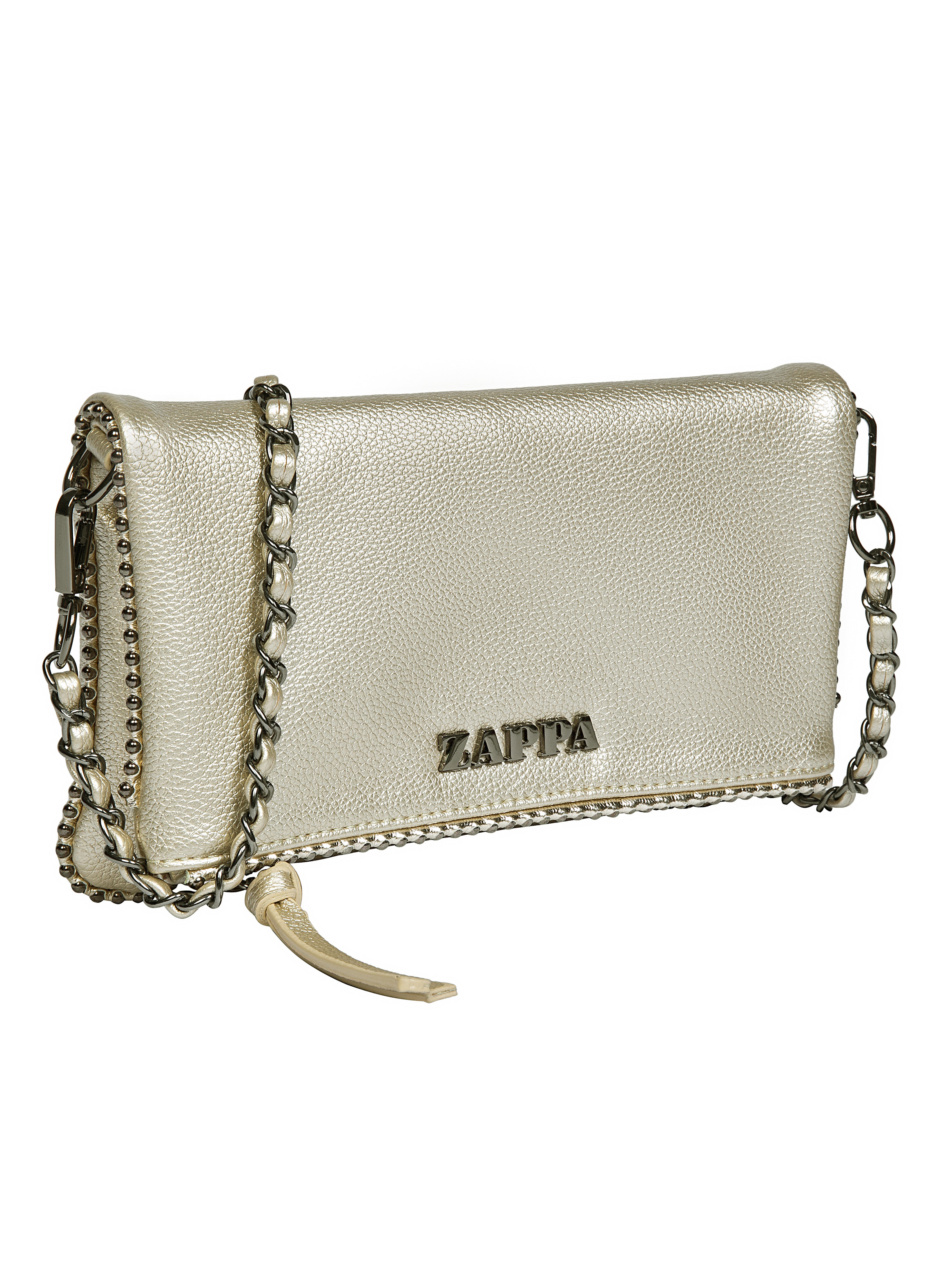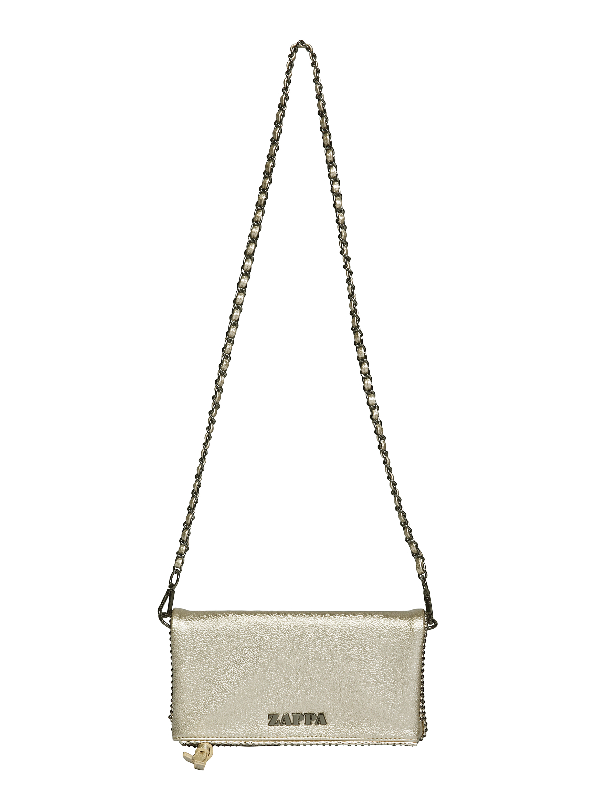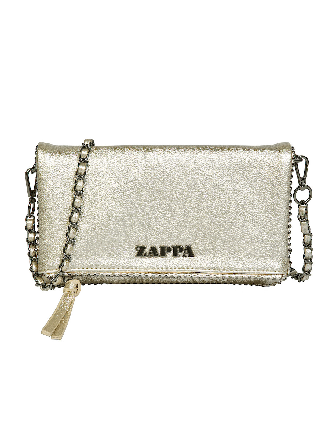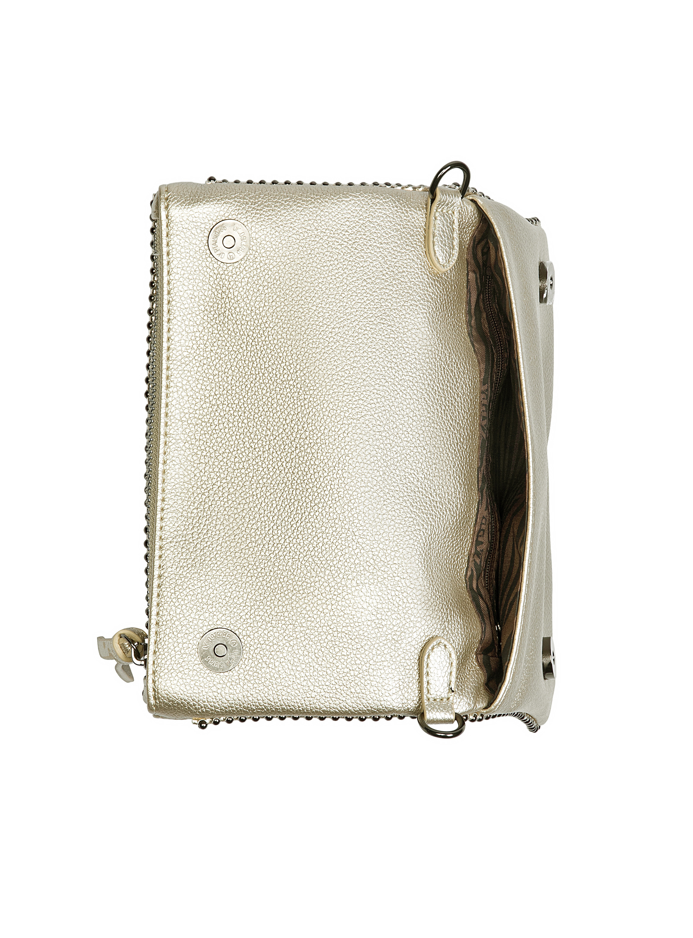 Descubre la bandolera Zappa en un deslumbrante acabado metálico oro, que combina actitud y funcionalidad en cada detalle. Con medidas de 14 cm de alto y 22 cm de ancho, su diseño compacto incluye un bolsillo con cierre y un compartimiento extra, perfecto para organizar lo esencial. La correa metálica tejida añade un toque moderno y sofisticado, mientras que el broche imantado asegura tus pertenencias con estilo. Lleva contigo el espíritu Zappa, siempre listo para cualquier ocasión.