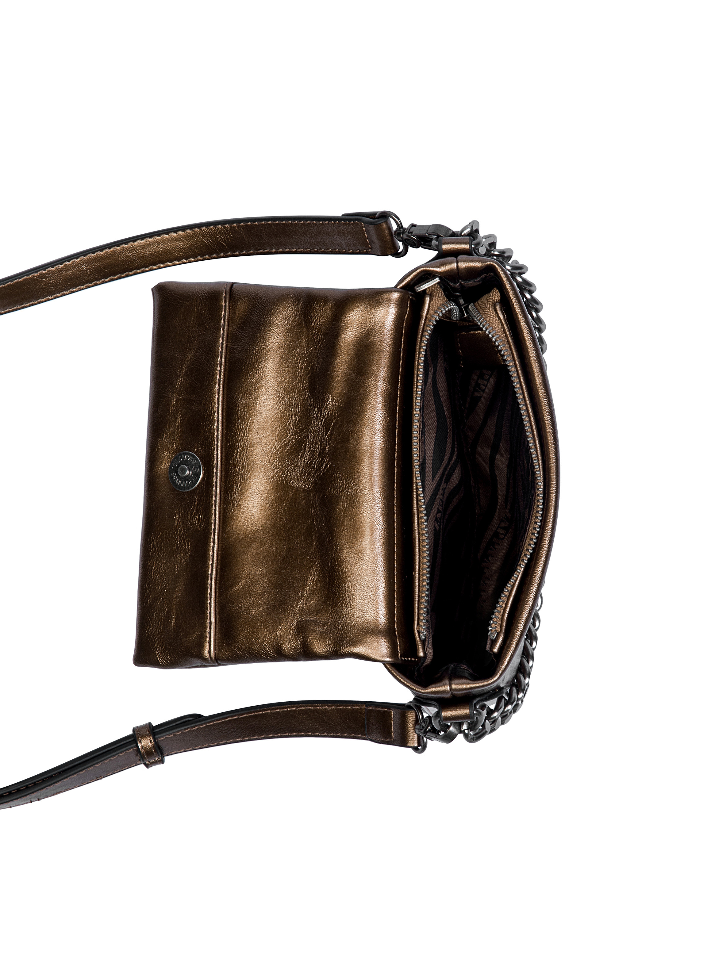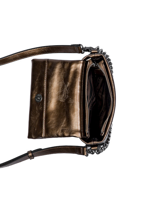 Atrévete a destacar con la Bandolera Zappa en un audaz tono Acero, con un acabado brillante que realza su carácter contemporáneo. Con dimensiones de 20 x 13 x 3 cm, cuenta con una correa ajustable y extraíble, ideal para llevarla cómodamente en cualquier ocasión. Su diseño incluye un práctico bolsillo con cierre, perfecto para organizar lo esencial. Las tachas metálicas y la textura sofisticada hacen de este bolso un statement dentro de tu guardarropa. ¡Carga tu mundo con estilo y actitud!