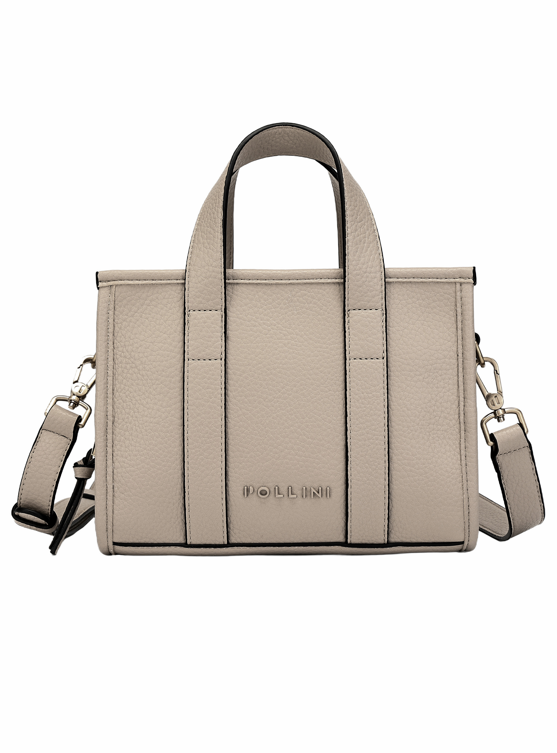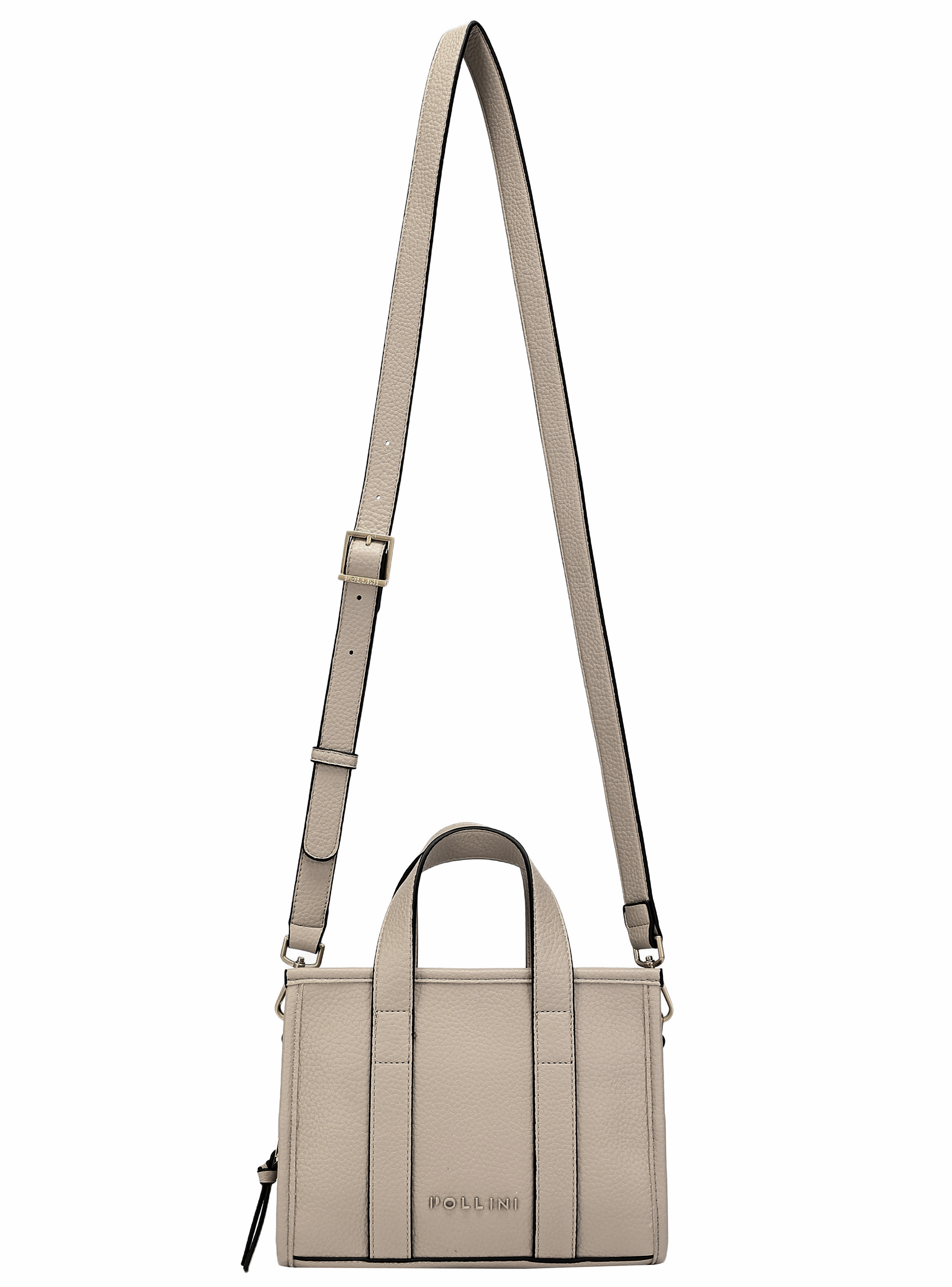 El bolso de mujer Pollini es la pieza ideal para esa mujer vanguardista que busca estilo y practicidad. Con medidas de 23x17x6.5 cm, su diseño en un encantador tono blanco graneado es perfecto para cualquier ocasión. Incluye un strap extraíble y ajustable, complementado con un cierre metálico grueso y dos bolsillos (uno con cierre) para mantener lo esencial organizado. Aporta un toque sofisticado a tus días laborales o académicos y luce siempre actual y segura de ti misma.