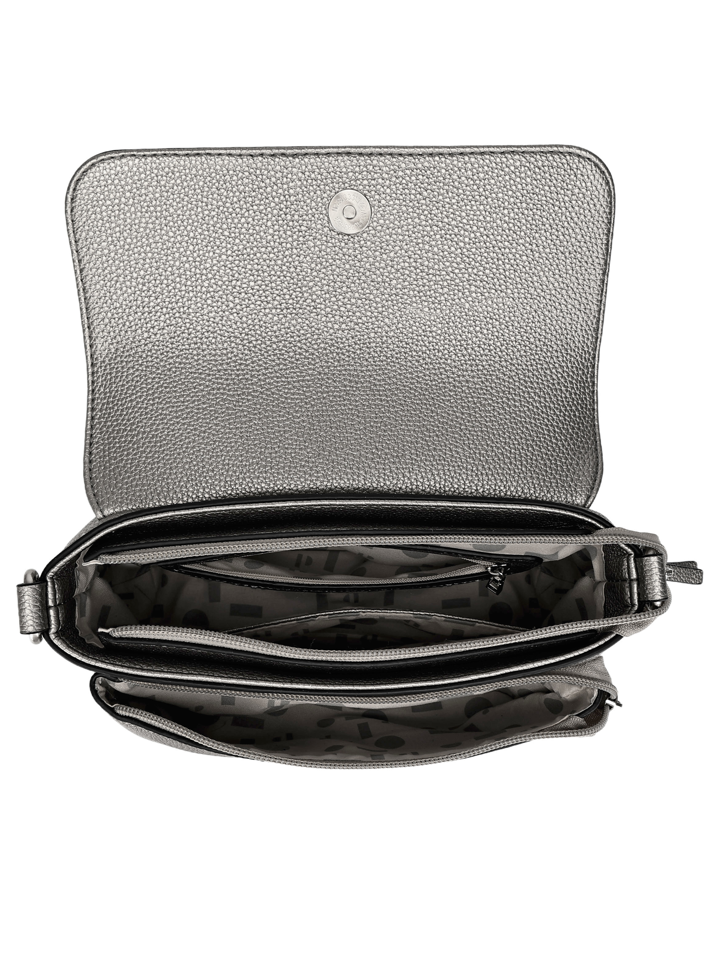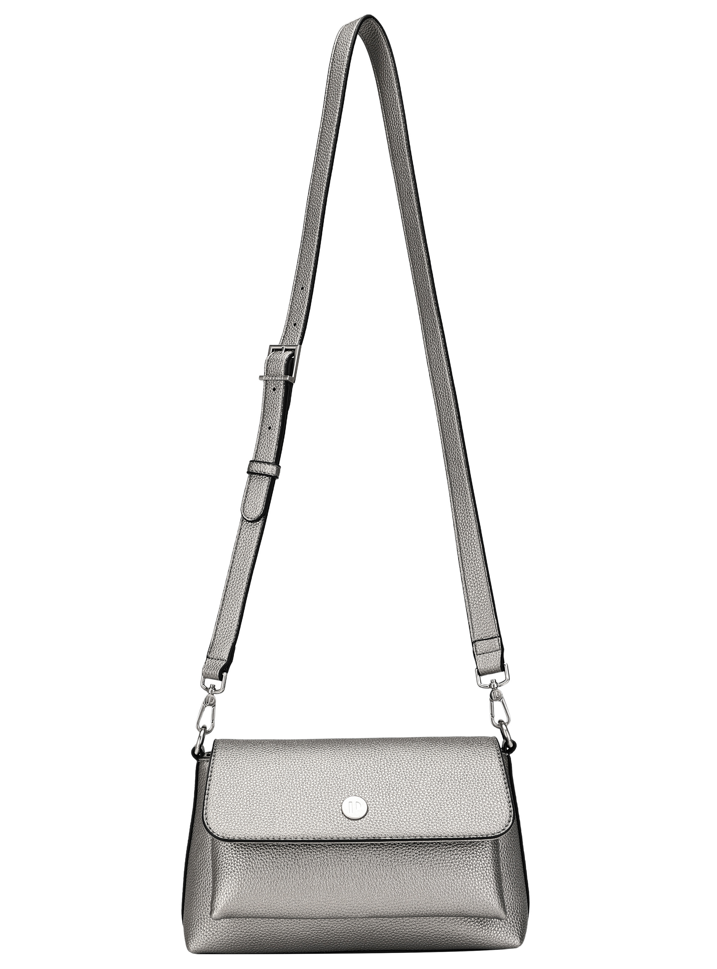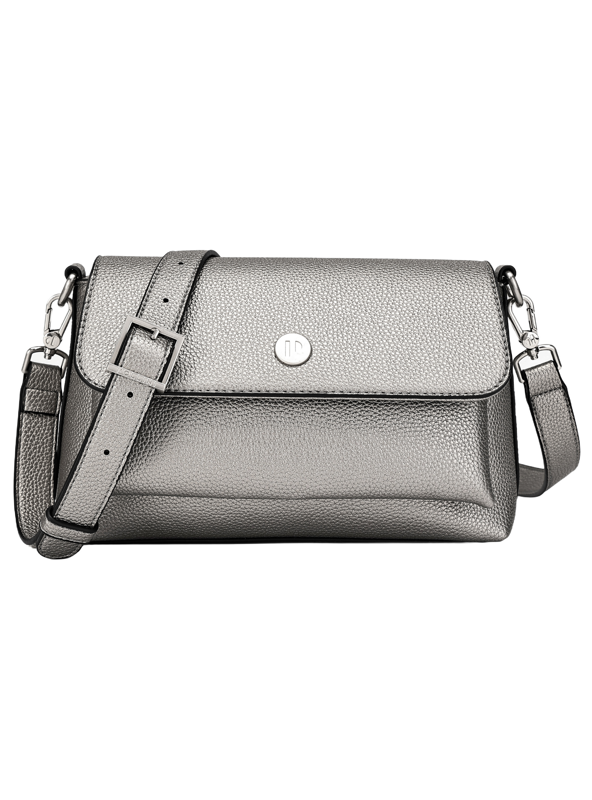Acentúa tu estilo con esta impactante bolsa de mujer en un sofisticado tono plateado. Su diseño de 27 cm x 16 cm x 7 cm, complementado con una textura graneada y un acabado brillante, resalta en cualquier entorno. Con una correa ajustable y extraíble, se adapta a tu ritmo, ya sea en el ámbito laboral o académico. Además, sus dos prácticos bolsillos, uno con cierre, hacen que llevar lo esencial sea un placer. Una pieza que combina elegancia y funcionalidad para una mujer moderna.