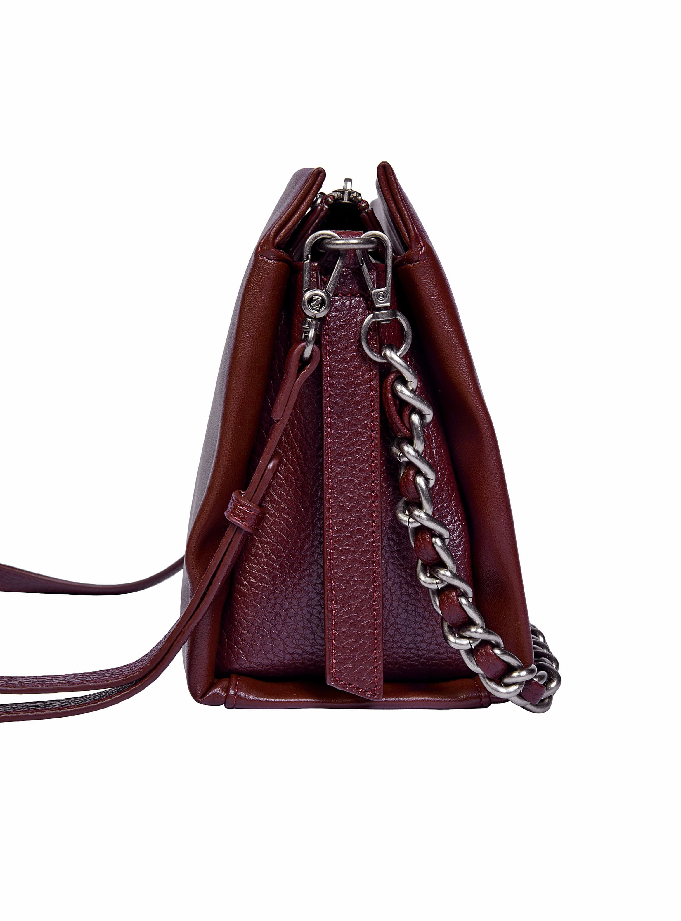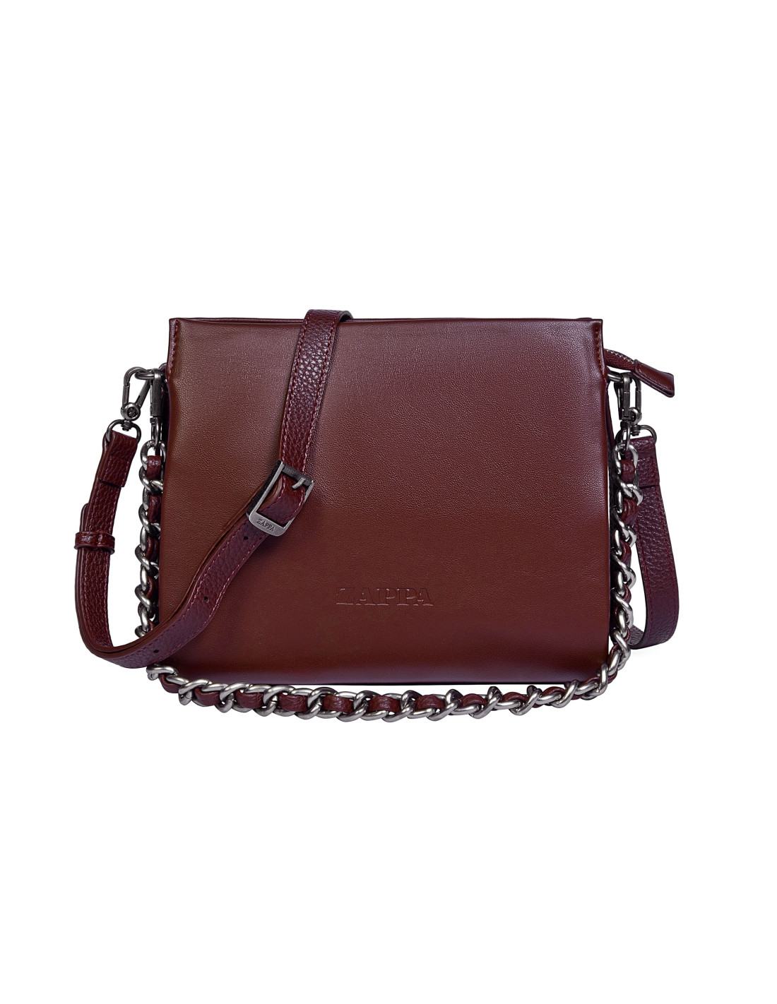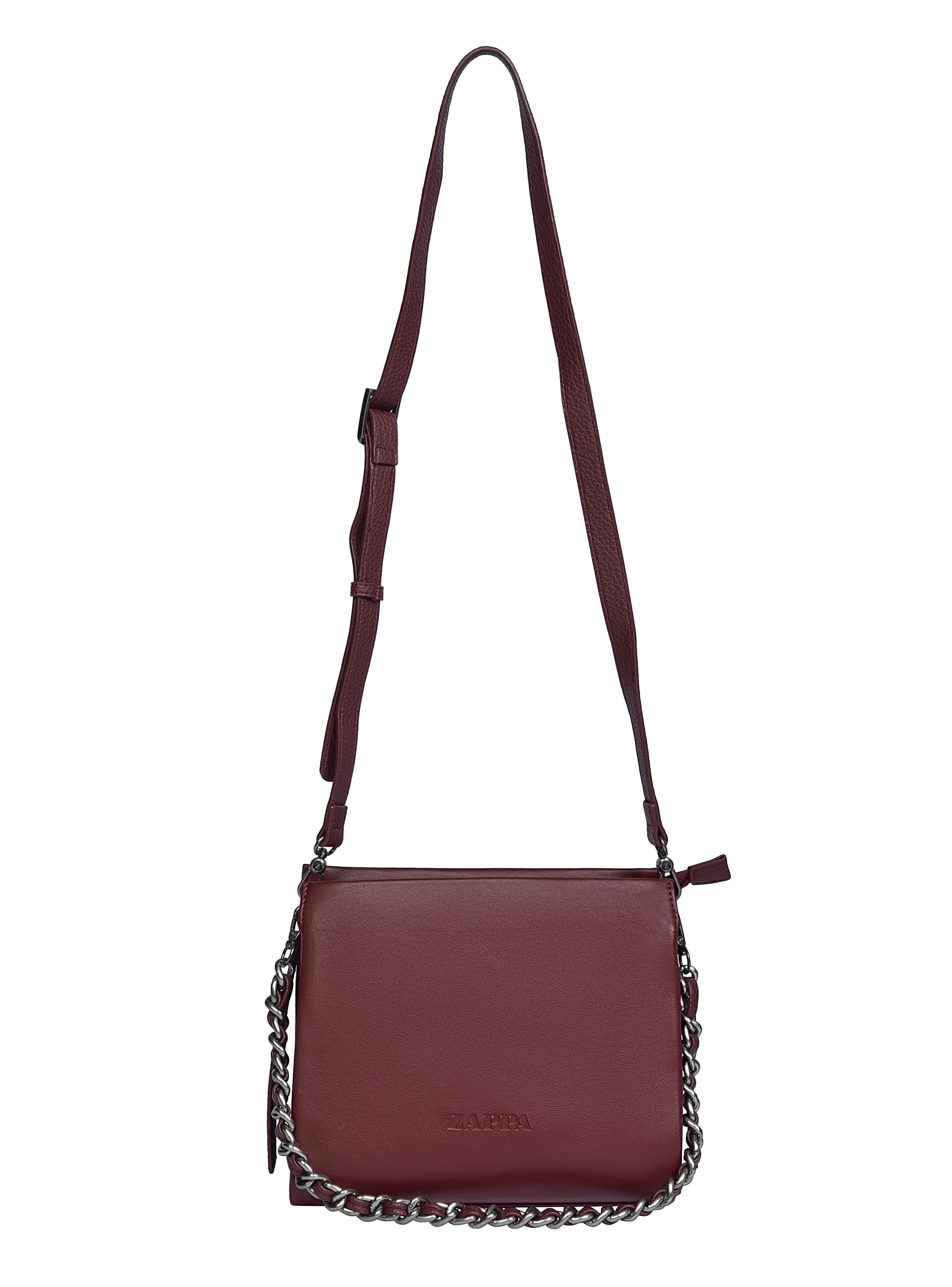 - Strap extraíble y ajustable fabricada en Pu con hebilla metálica / Correa extraíble tipo cadena metálica con detalle tejido