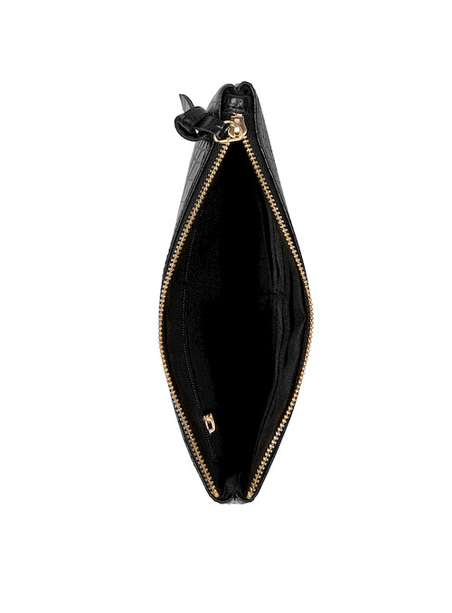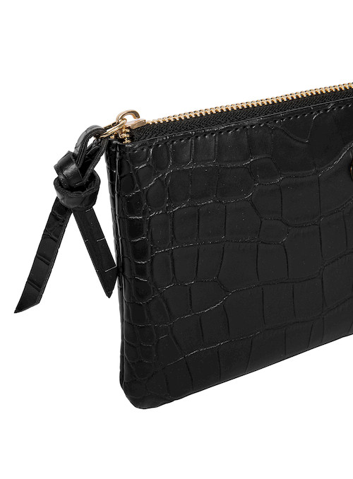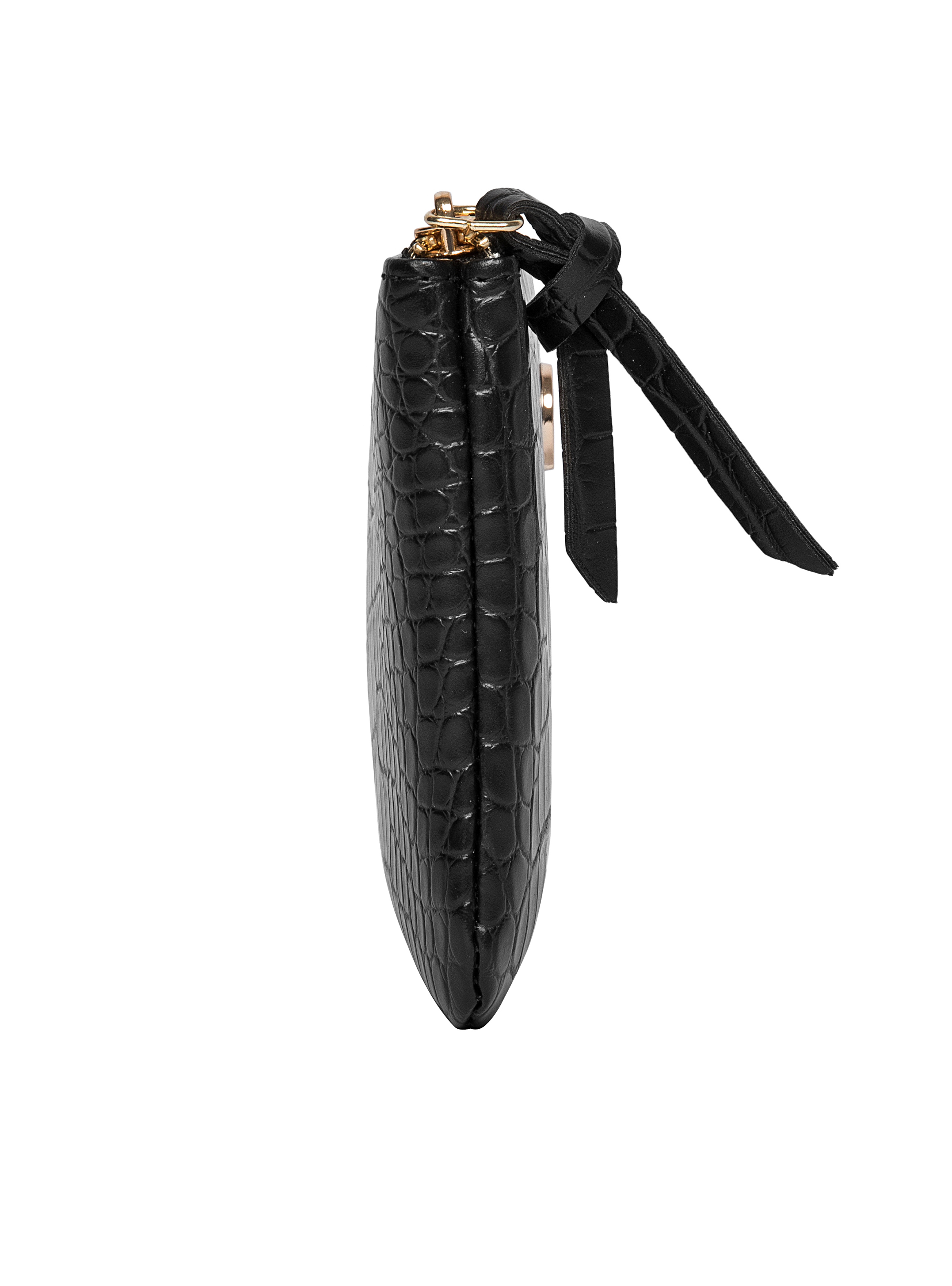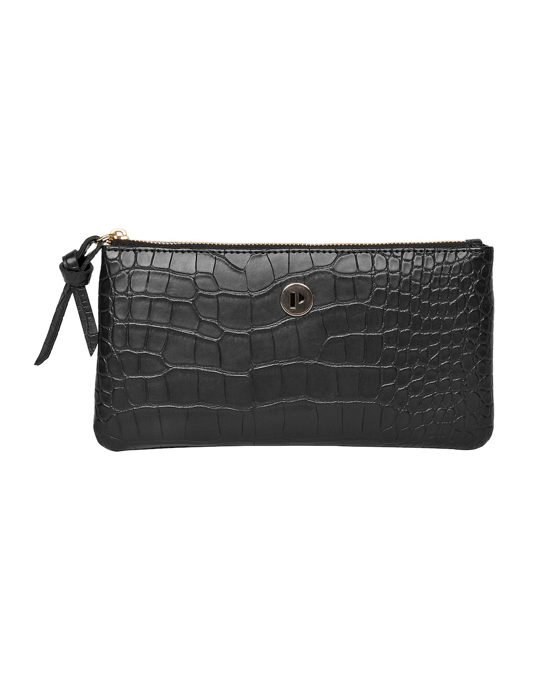 La billetera Pollini es el accesorio que toda mujer moderna desea tener. Con su elegante silueta alargada y rectangular, se presenta en un sofisticado color negro que evoca la esencia de la moda contemporánea. Su textura, que imita la piel de cocodrilo, no solo cautiva a la vista, sino que también ofrece un tacto envolvente gracias a sus grabados asimétricos. El acabado brillante resalta las escamas del diseño, mientras que un delicado sello metálico dorado aporta un toque de luz y distinción. Con medidas de 10.5 cm de alto y 20.5 cm de ancho, esta billetera es perfecta para organizar hasta 6 tarjetas, combinando funcionalidad y estilo en cada uso.
