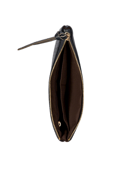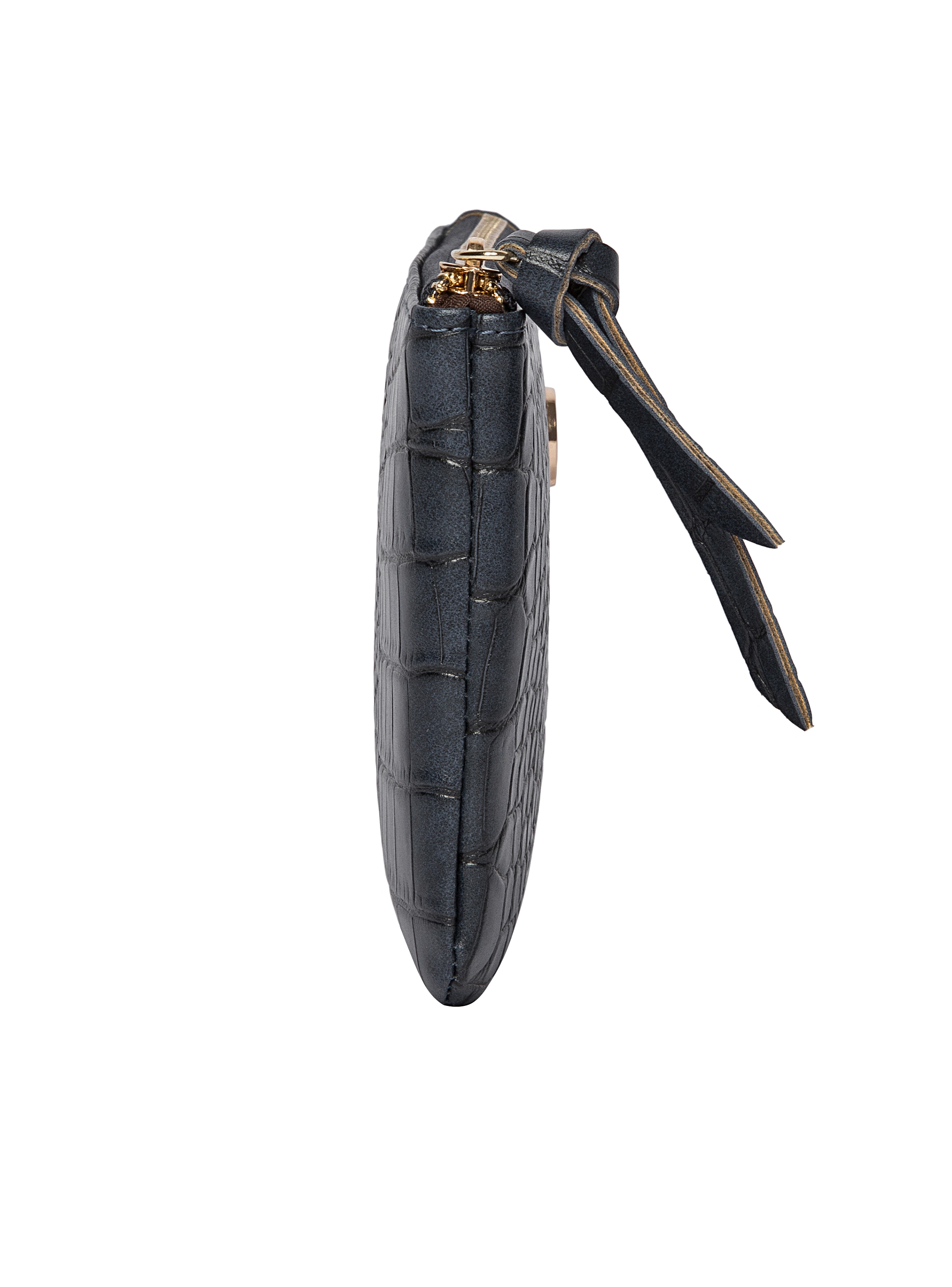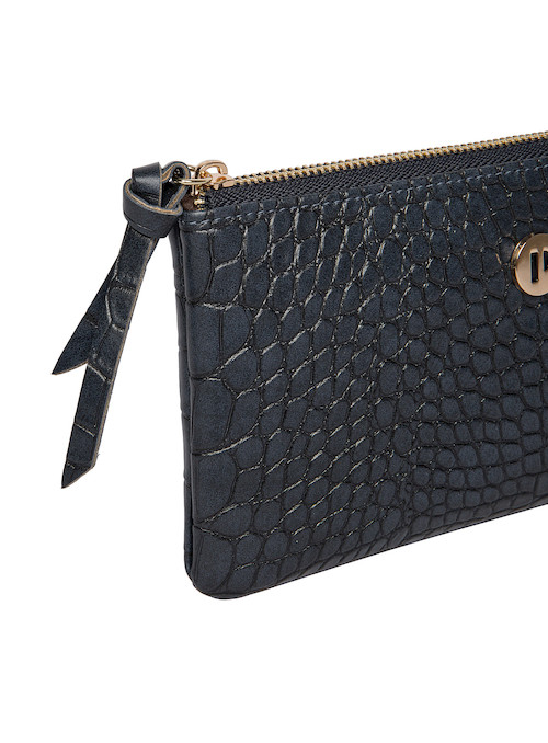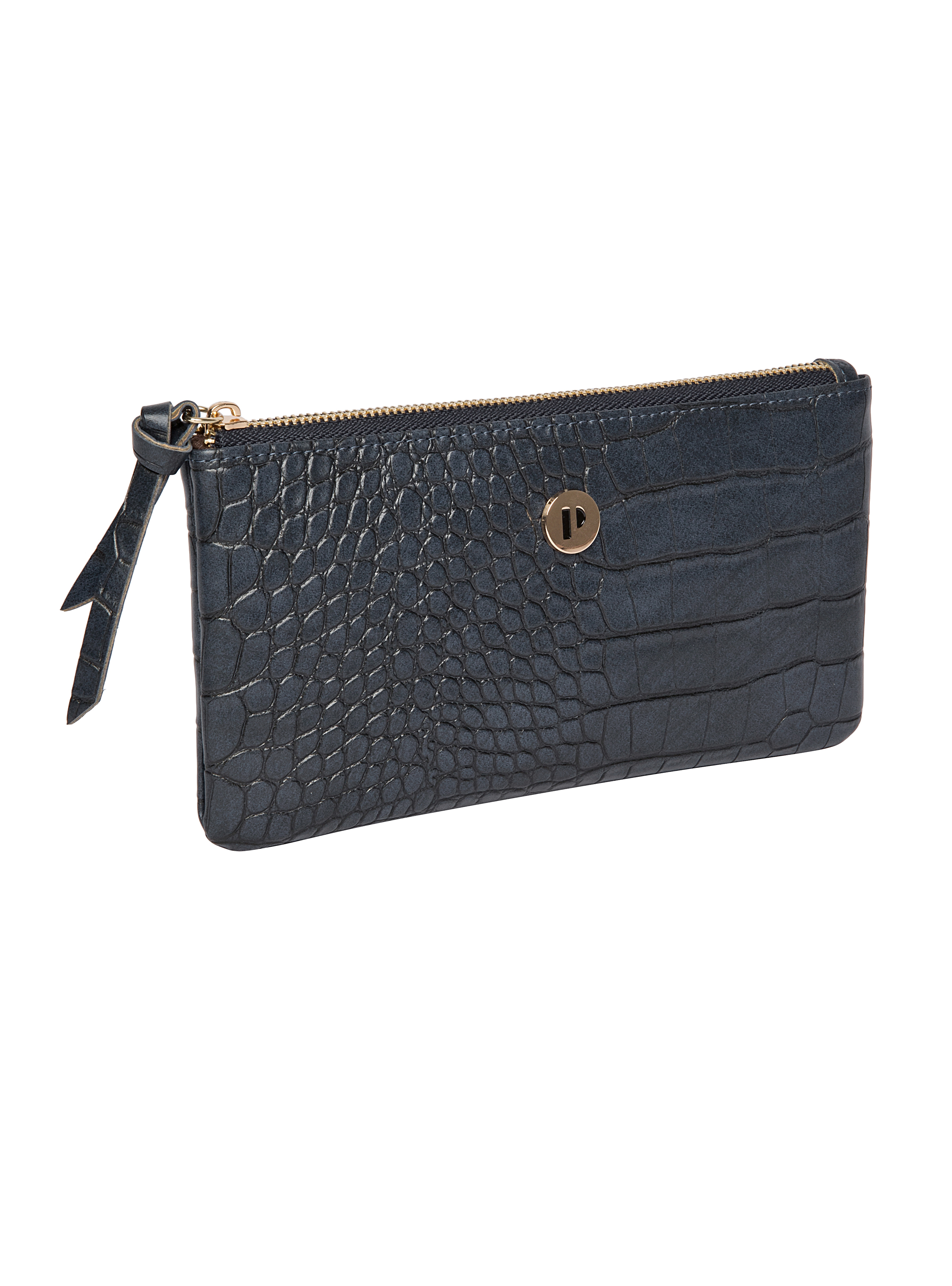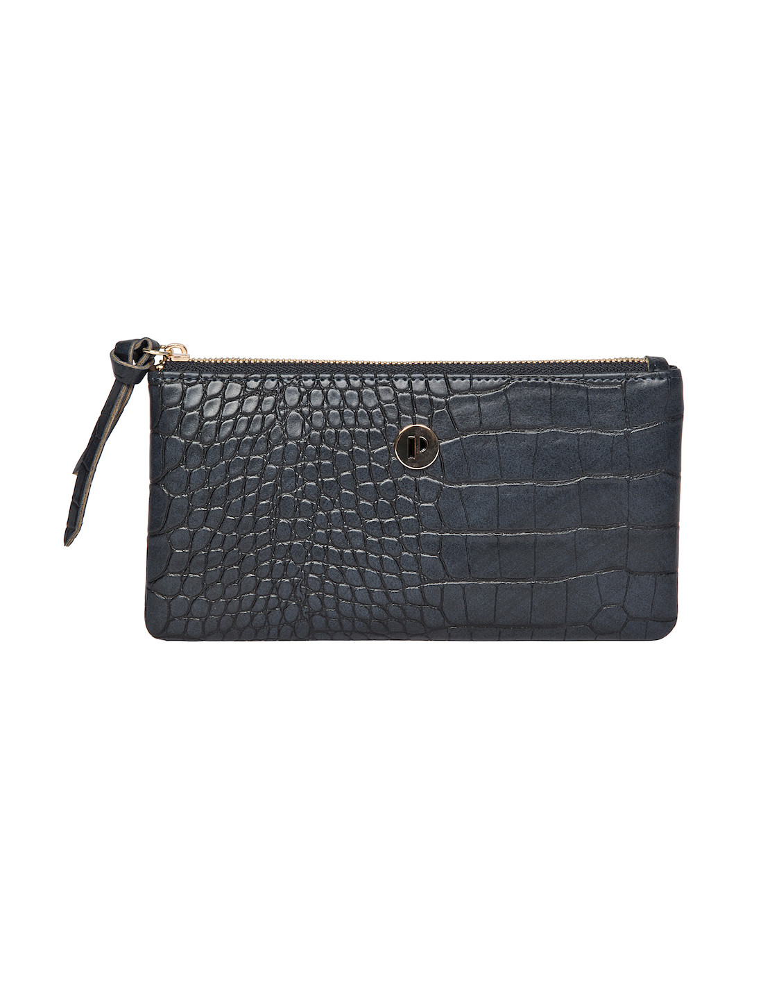 La billetera Pollini en un sofisticado azul profundo es el accesorio perfecto para la mujer moderna que busca destacar con elegancia. Su acabado mate satinado, adornado con un grabado tipo reptil, aporta una textura única y cautivadora. Con unas medidas de 10.5 cm de alto y 20.5 cm de ancho, esta pieza versátil combina funcionalidad y estilo, permitiendo almacenar hasta 6 tarjetas de manera organizada. El herraje metálico circular y el cierre de cremallera en tono bronce añaden un toque de distinción, mientras que los flecos del tirador aportan movimiento y frescura. Con Pollini, cada día es una oportunidad para expresar tu esencia femenina y vanguardista.