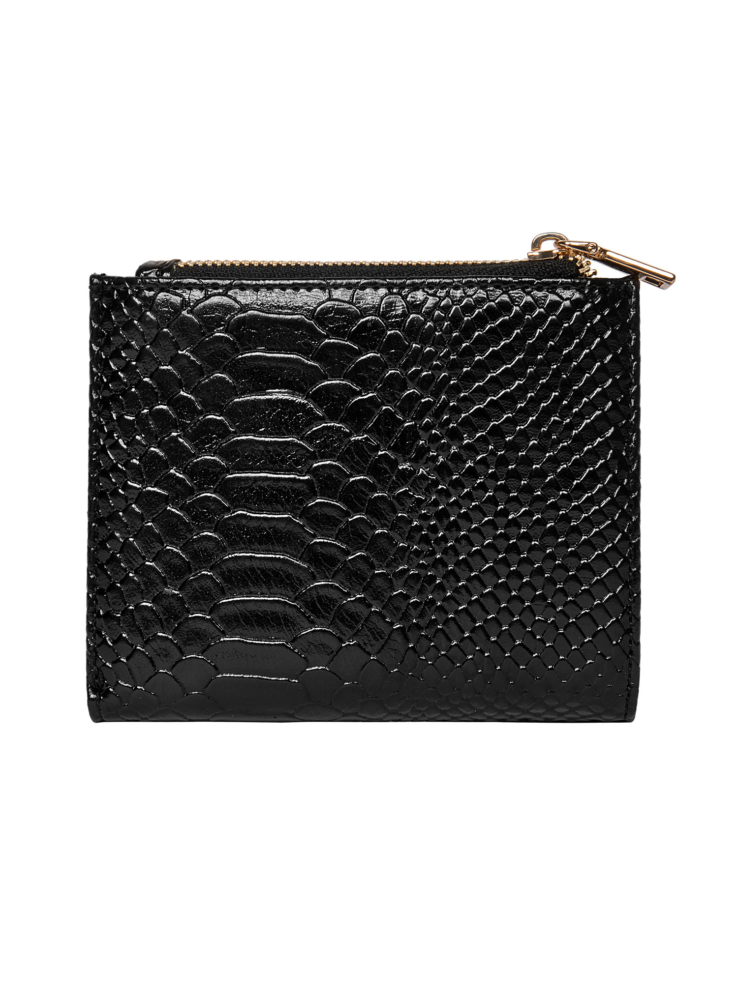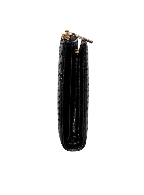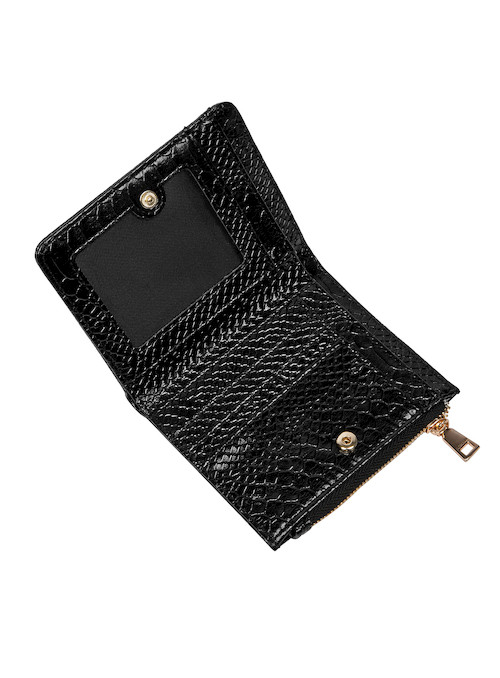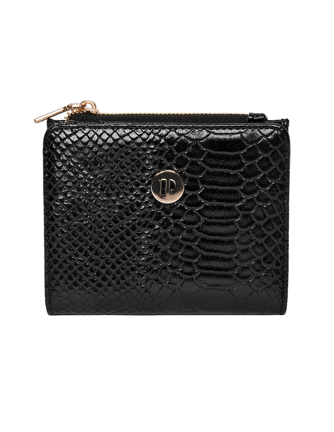 La billetera Pollini es la esencia de la elegancia contemporánea, diseñada para la mujer que busca un accesorio que combine estilo y funcionalidad. Su estructura compacta y cuadrada, con un acabado charolado que evoca la sofisticación, refleja la luz en un juego de brillos cautivador. El patrón de escamas de serpiente añade un toque vanguardista, mientras que el logo metálico dorado resalta su identidad única. Con medidas de 10 cm de alto y 12.5 cm de ancho, esta pieza ofrece espacio para hasta 4 tarjetas, cerrándose con un broche metálico que asegura su contenido. Ideal para completar cualquier look, es el aliado perfecto para la fashionista moderna.