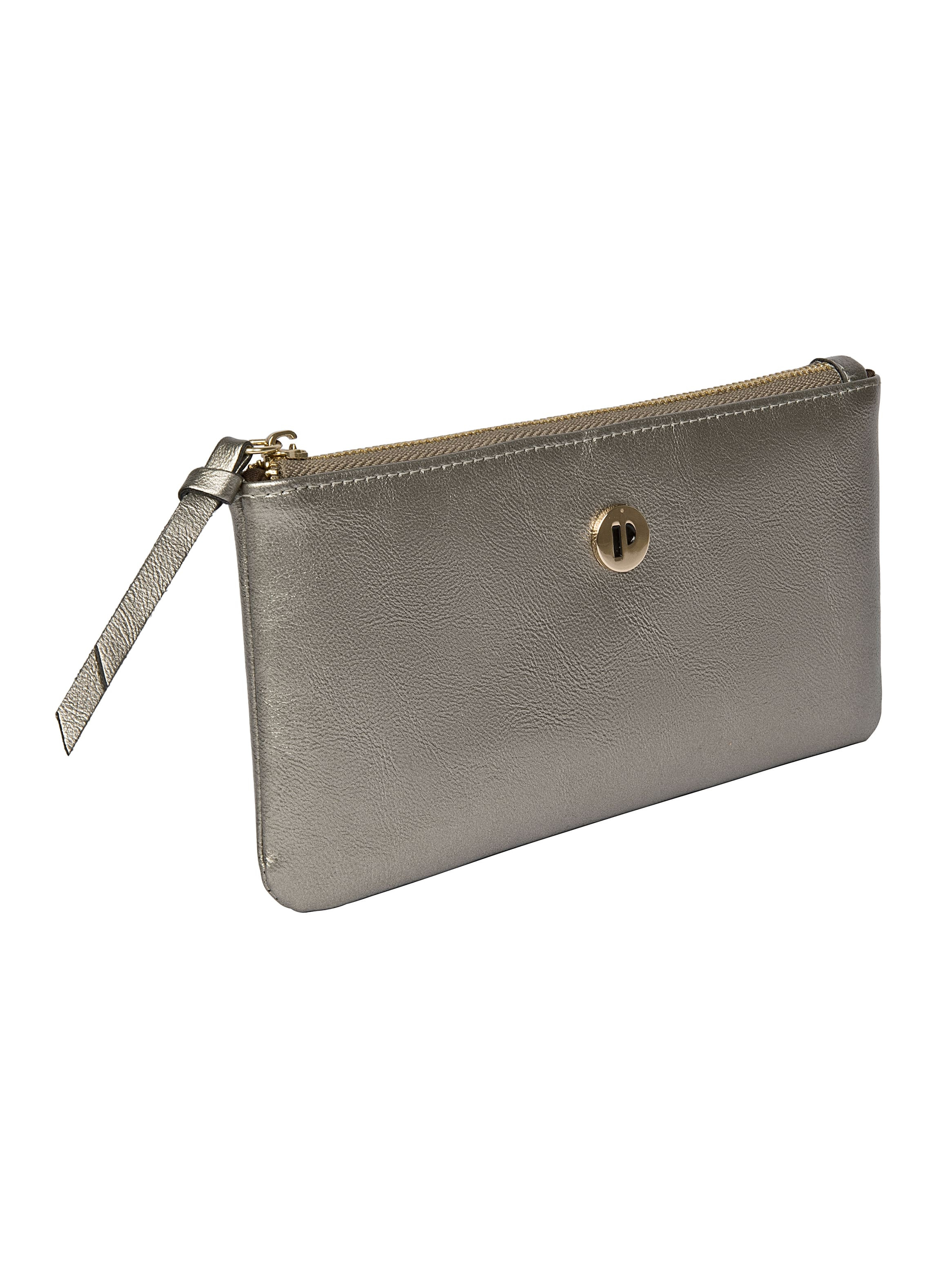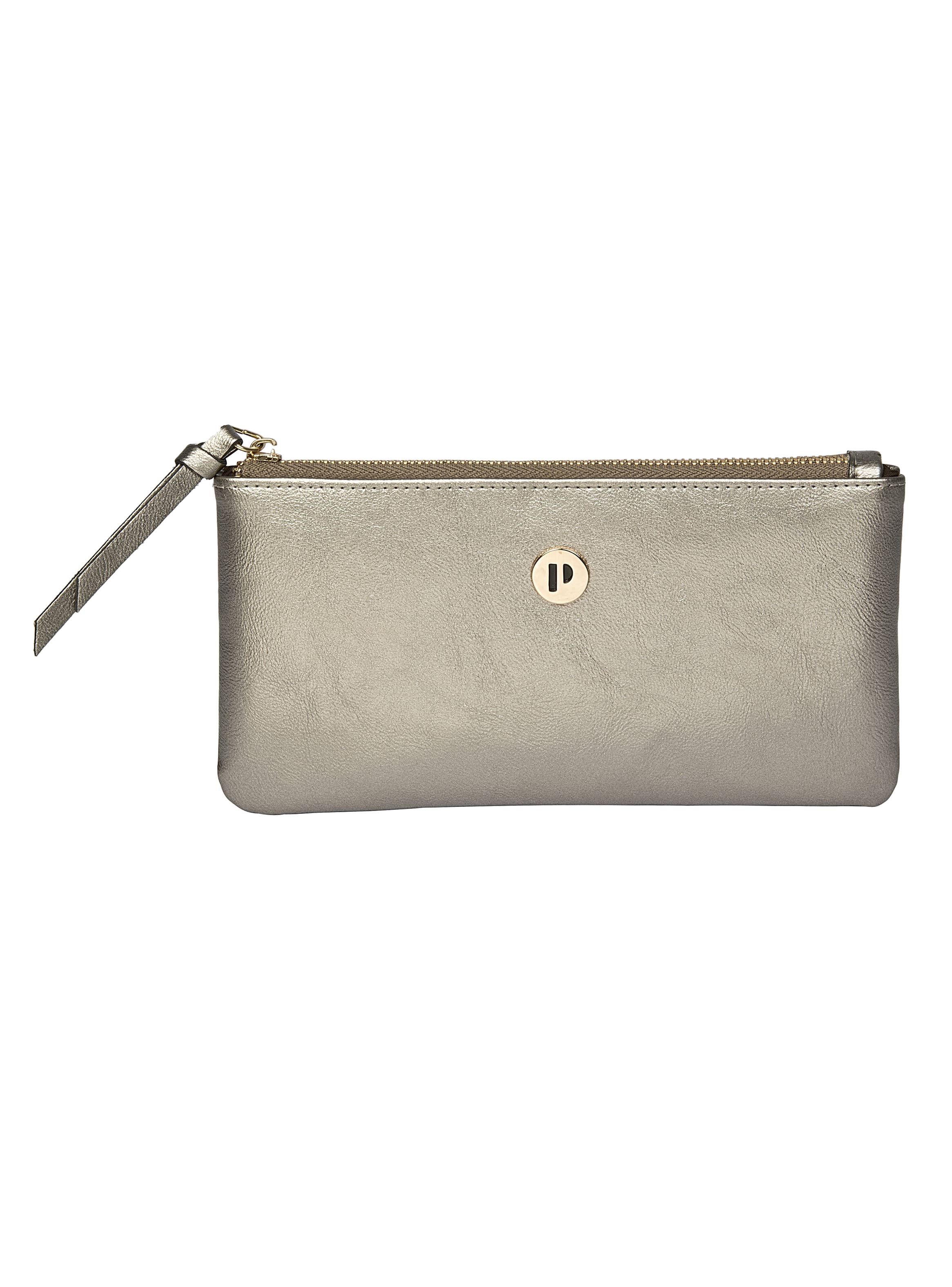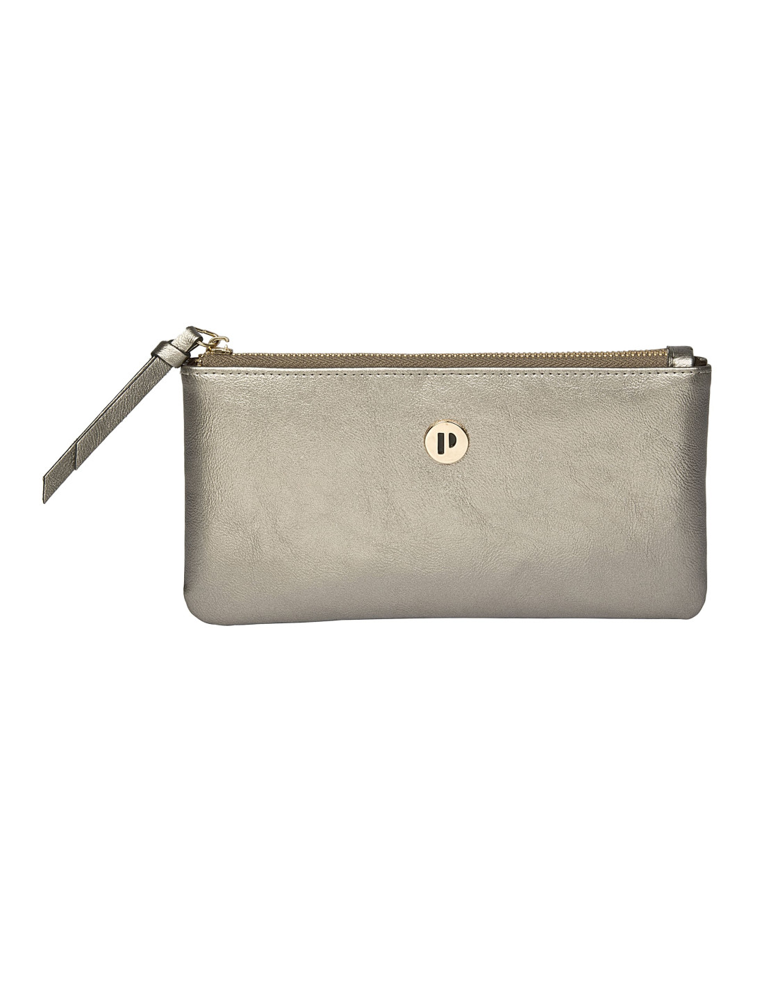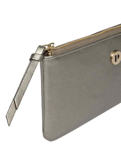La billetera Pollini en un elegante acabado metalizado en color acero es la pieza que elevará tu estilo diario. Su diseño rectangular compacto, con un sutil sello metálico circular en el frontal, irradia modernidad y vanguardia. Con unas medidas de 10.5 cm de alto y 20.5 cm de ancho, este accesorio es ideal para la mujer actual que busca funcionalidad y estética en cada detalle. La textura brillante y granulada del material PU refleja destellos que capturan la atención, mientras que su cremallera de color plata y tirador de cinta plana refuerzan su carácter chic e industrial. Perfecta para llevar hasta 6 tarjetas, esta billetera es el complemento deseable que te hará sentir segura y atractiva en cualquier ocasión.
