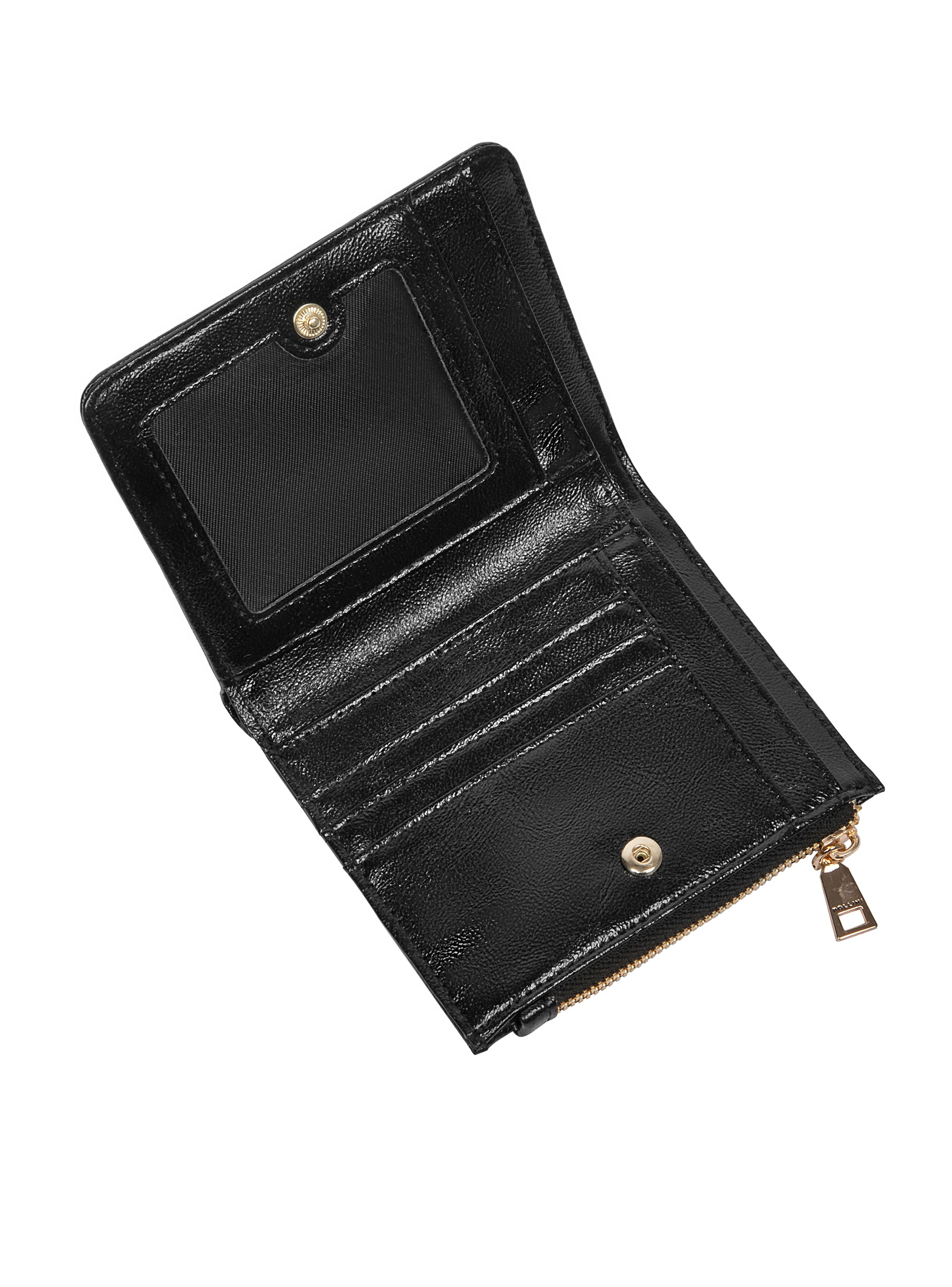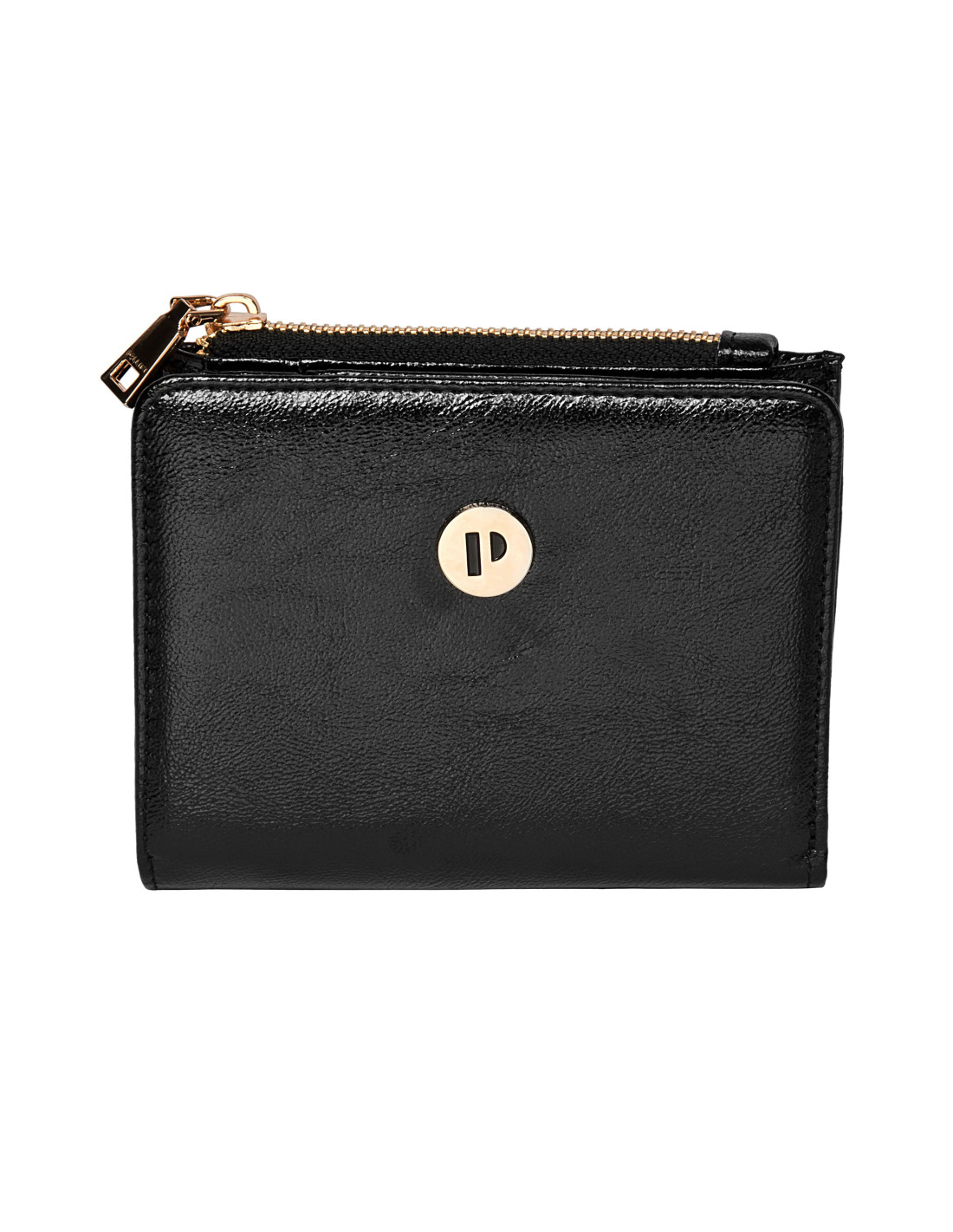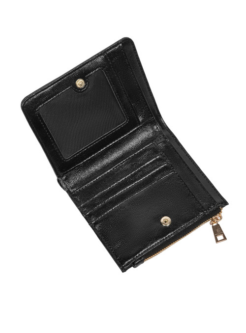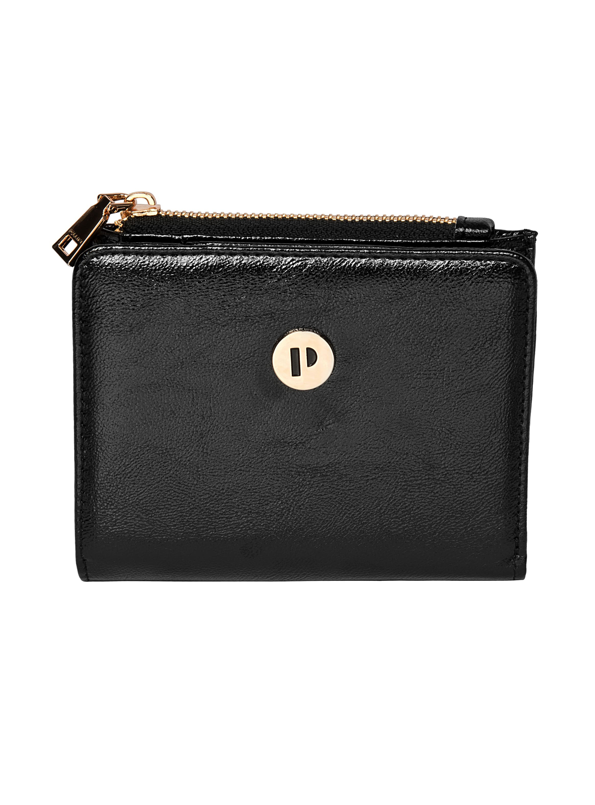 La billetera Pollini, un accesorio que redefine la elegancia cotidiana, se presenta en un sofisticado negro con una micro-textura granulada que aporta un brillo sutil y encantador. Su acabado ligeramente acharolado no solo resalta su modernidad, sino que también garantiza una resistencia admirable. Con un diseño cuadrado y medidas de 10 cm de alto y 12.5 cm de ancho, esta pieza se adapta perfectamente a tu estilo de vida activo. El logo metálico dorado en el panel frontal añade un toque de distinción, mientras que su cremallera metálica superior asegura la protección de tus pertenencias. Ideal para la mujer vanguardista que busca expresar su identidad con cada detalle.