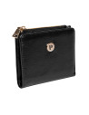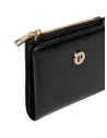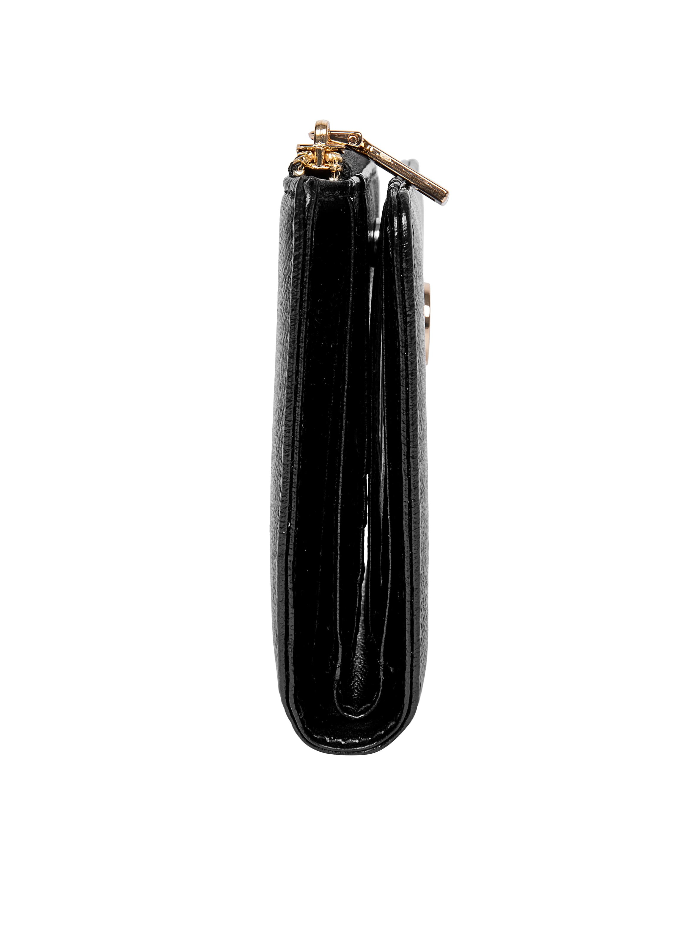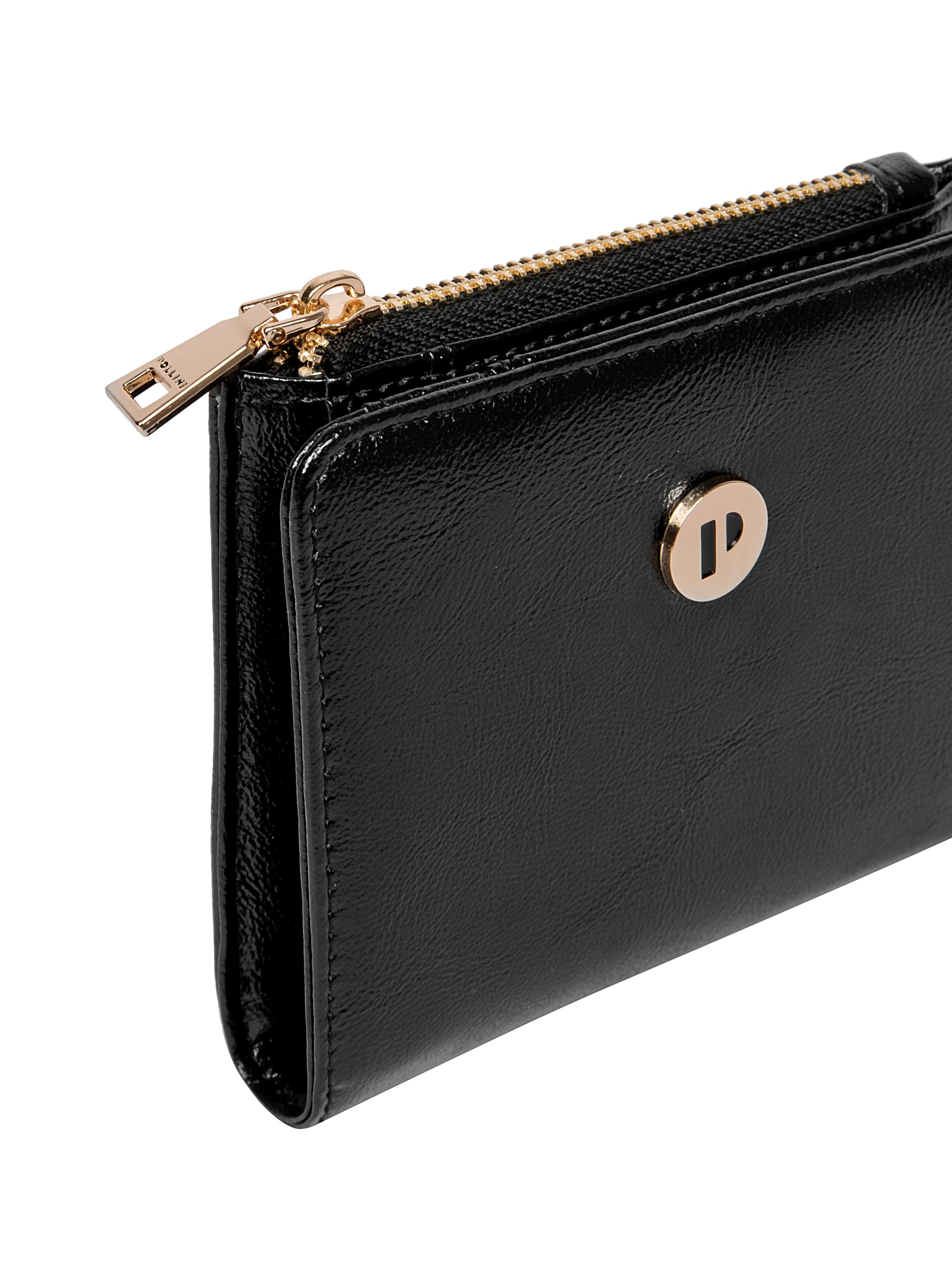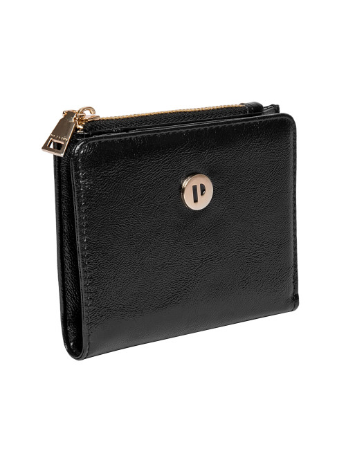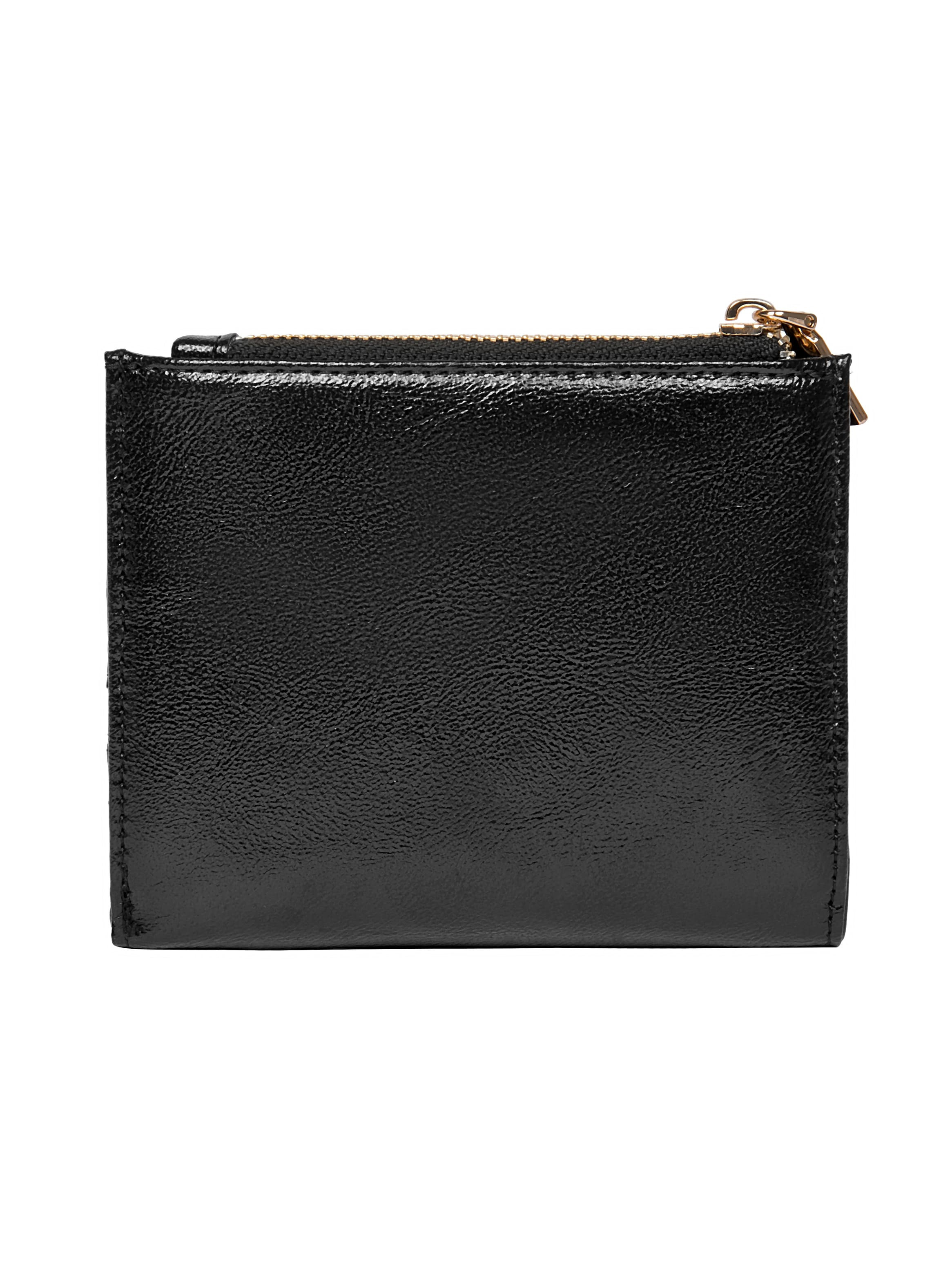 La billetera Pollini, un accesorio que redefine la elegancia cotidiana, se presenta en un sofisticado negro con una micro-textura granulada que aporta un brillo sutil y encantador. Su acabado ligeramente acharolado no solo resalta su modernidad, sino que también garantiza una resistencia admirable. Con un diseño cuadrado y medidas de 10 cm de alto y 12.5 cm de ancho, esta pieza se adapta perfectamente a tu estilo de vida activo. El logo metálico dorado en el panel frontal añade un toque de distinción, mientras que su cremallera metálica superior asegura la protección de tus pertenencias. Ideal para la mujer vanguardista que busca expresar su identidad con cada detalle.