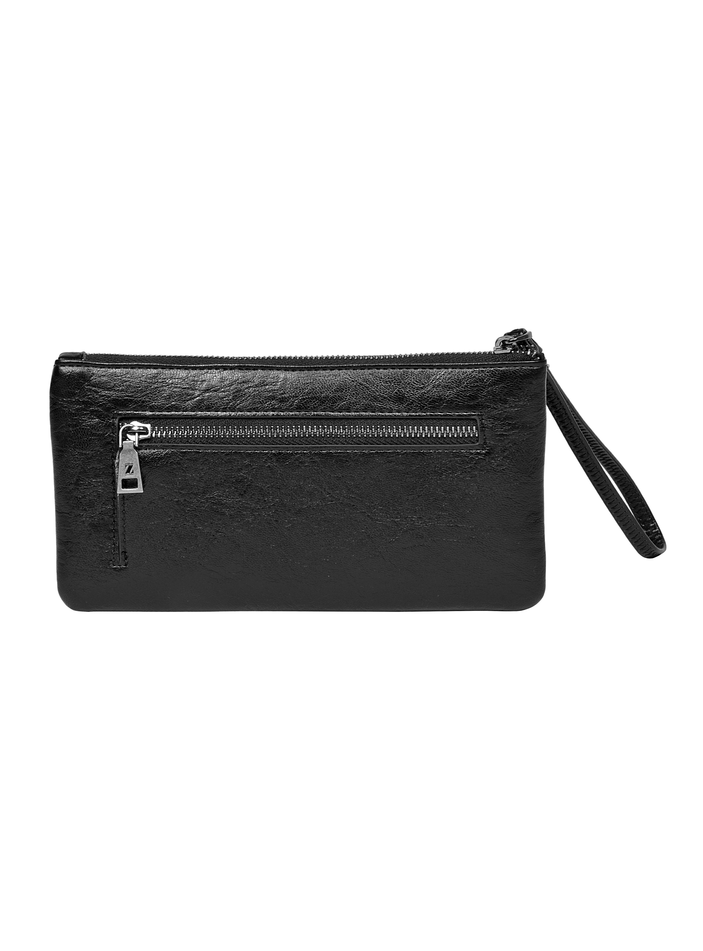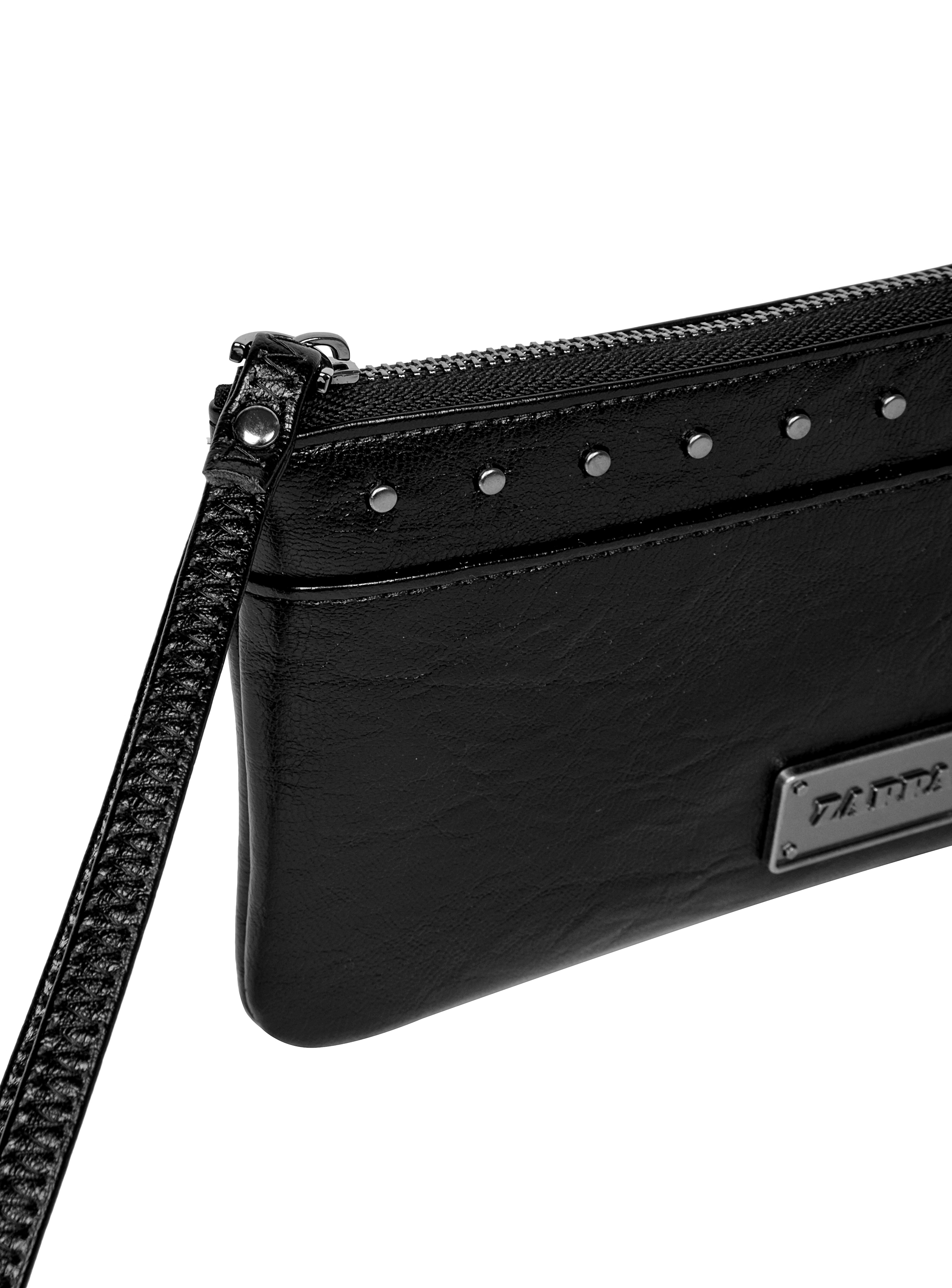 La billetera Zappa redefine el concepto de elegancia urbana con su silueta alargada tipo sobre, ideal para quienes buscan un look audaz y contemporáneo. Su textura mate, que simula un entramado técnico, se complementa con una correa de mano lateral, transformándola en un clutch perfecto para cualquier ocasión. Con un práctico bolsillo trasero con cremallera y detalles metálicos sutiles, como la placa de marca y las perforaciones en el borde superior, esta pieza destaca por su carácter único. Con medidas de 10.5 cm de alto y 20.5 cm de ancho, ofrece espacio para hasta 6 tarjetas, fusionando estilo y funcionalidad en cada uso.