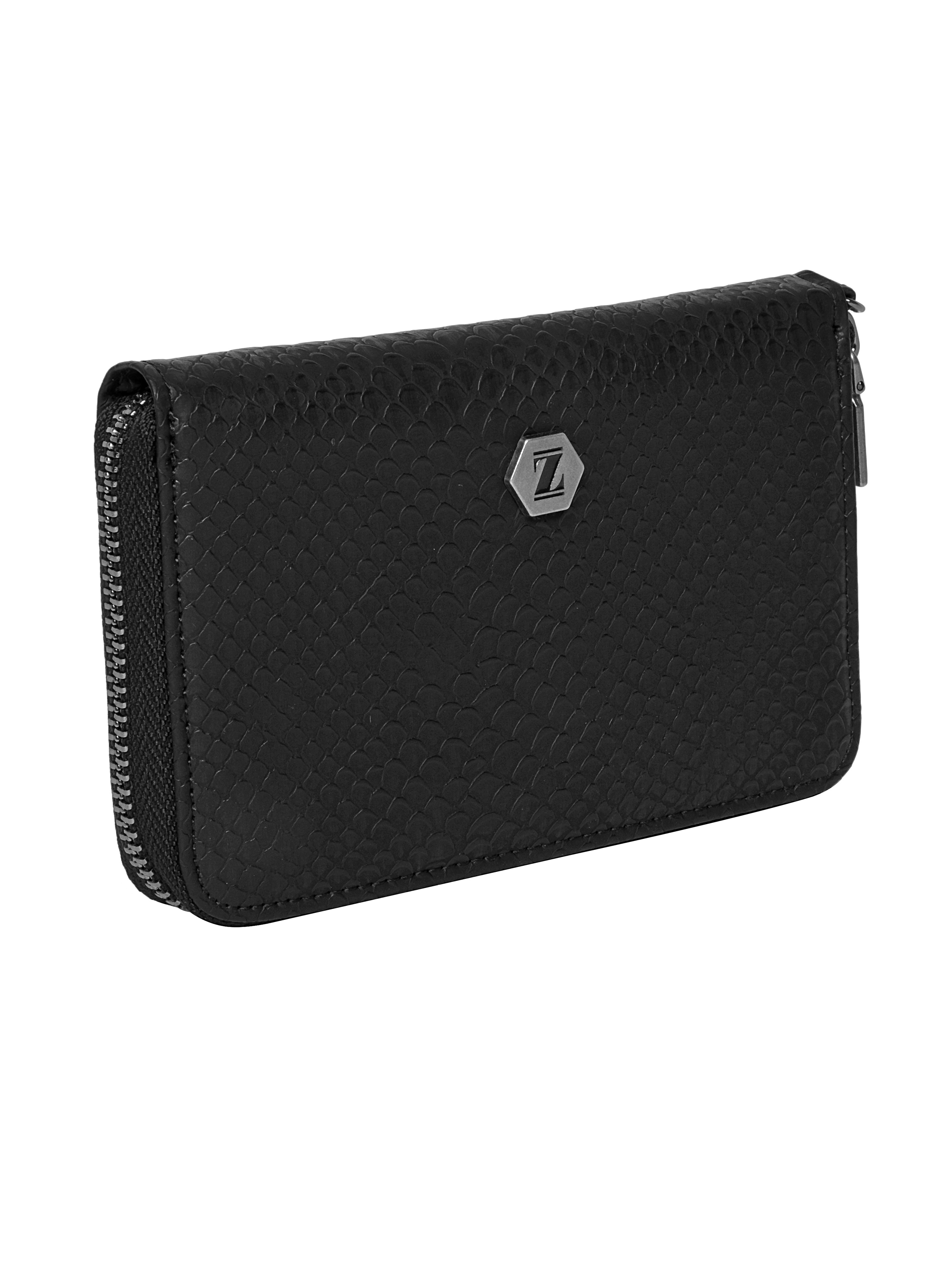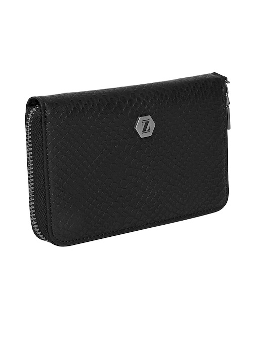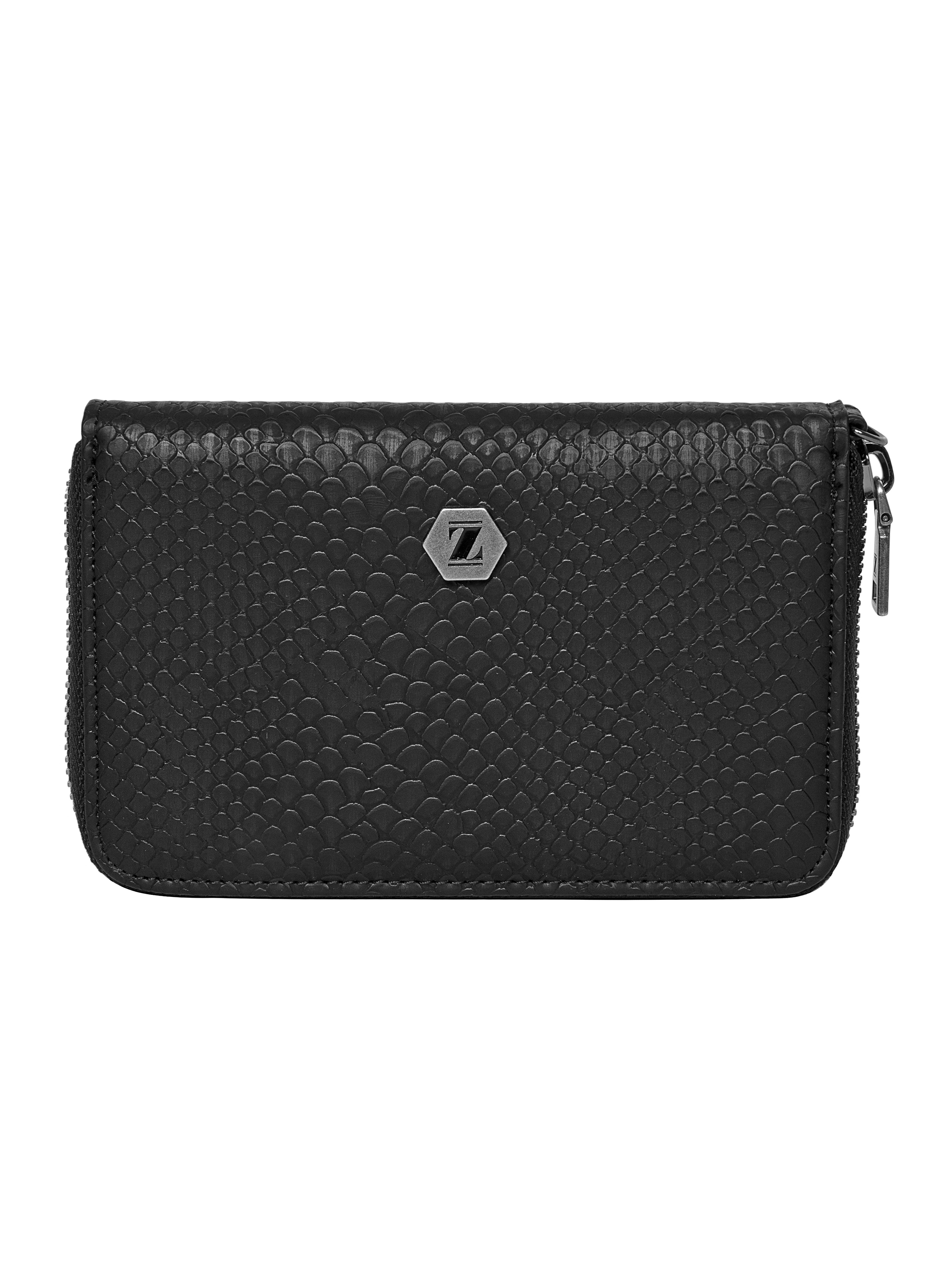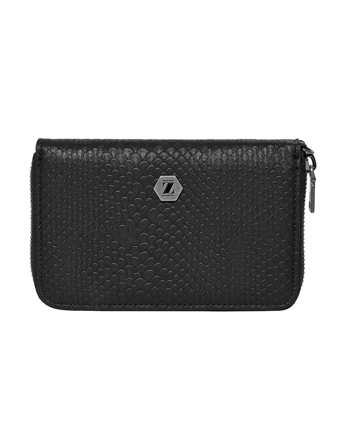 La billetera Zappa redefine el concepto de elegancia urbana con su silueta rectangular y esquinas redondeadas. Su textura micro-perforada, que evoca un sofisticado efecto de red, se combina con un acabado mate que resalta su carácter moderno. El pequeño sello metálico hexagonal en el centro añade un toque de distinción, mientras que la cremallera perimetral permite un acceso amplio y práctico. Con dimensiones de 10 cm de alto y 15 cm de ancho, esta pieza no solo es un accesorio, sino una declaración de estilo. Capaz de albergar hasta 9 tarjetas, se convierte en el complemento ideal para quienes buscan marcar tendencia con actitud y personalidad.