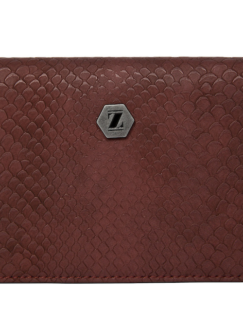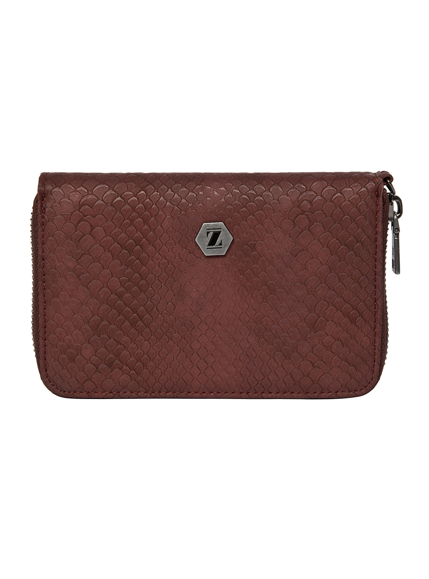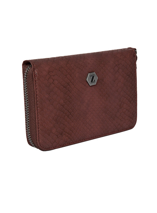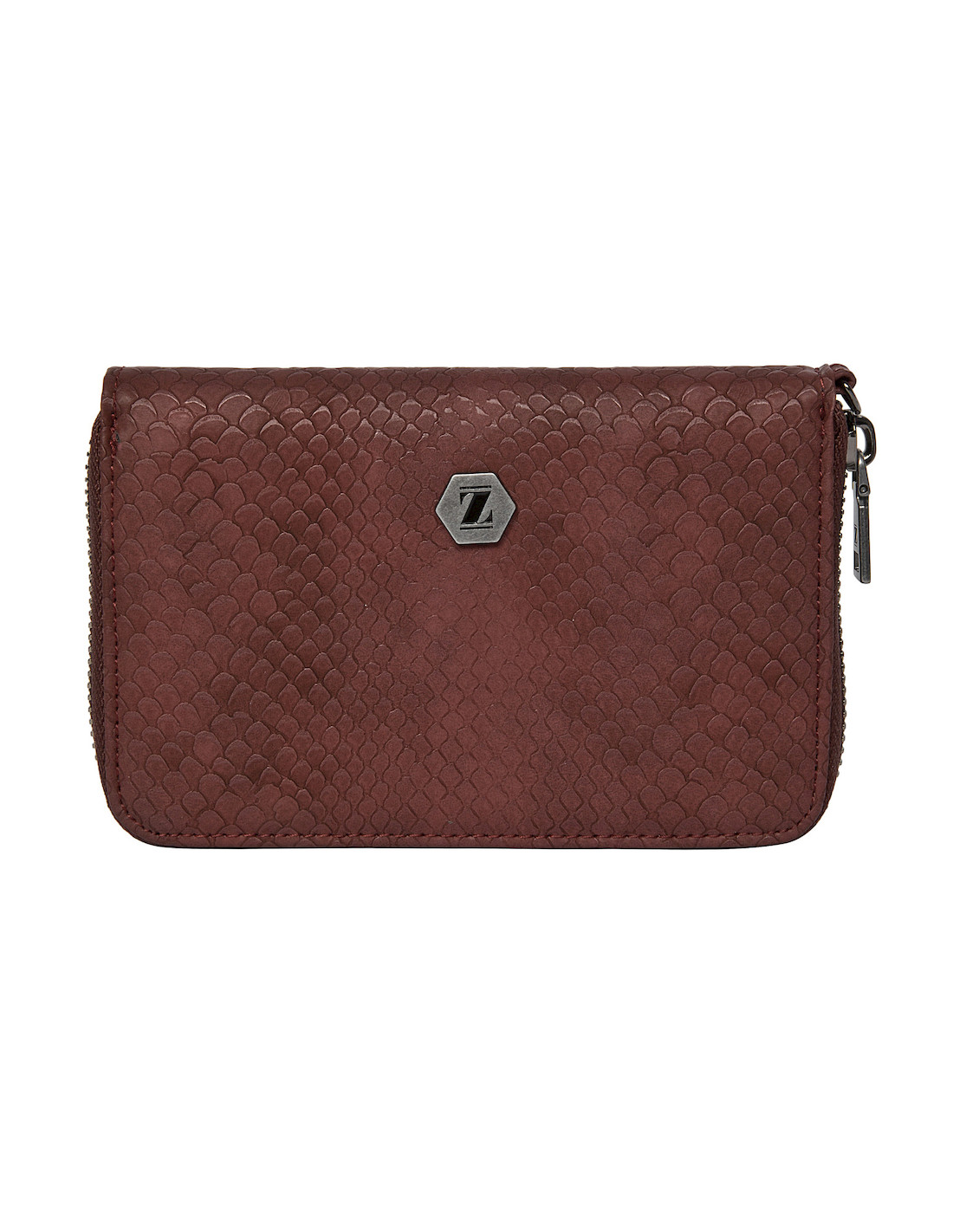 La billetera Zappa en un sofisticado burdeos profundo es la declaración de estilo que tu look necesita. Su textura grabada y el acabado mate satinado aportan un aire lujoso, mientras que el emblema metálico hexagonal añade un toque distintivo. Con medidas de 10 cm de alto y 15 cm de ancho, este diseño rectangular con esquinas curvas combina elegancia y funcionalidad, permitiendo almacenar hasta 9 tarjetas con facilidad. La cremallera que recorre su contorno garantiza seguridad y accesibilidad. Atrévete a llevar una pieza que no solo complementa tu outfit, sino que también impone tendencias con su carácter audaz y moderno.