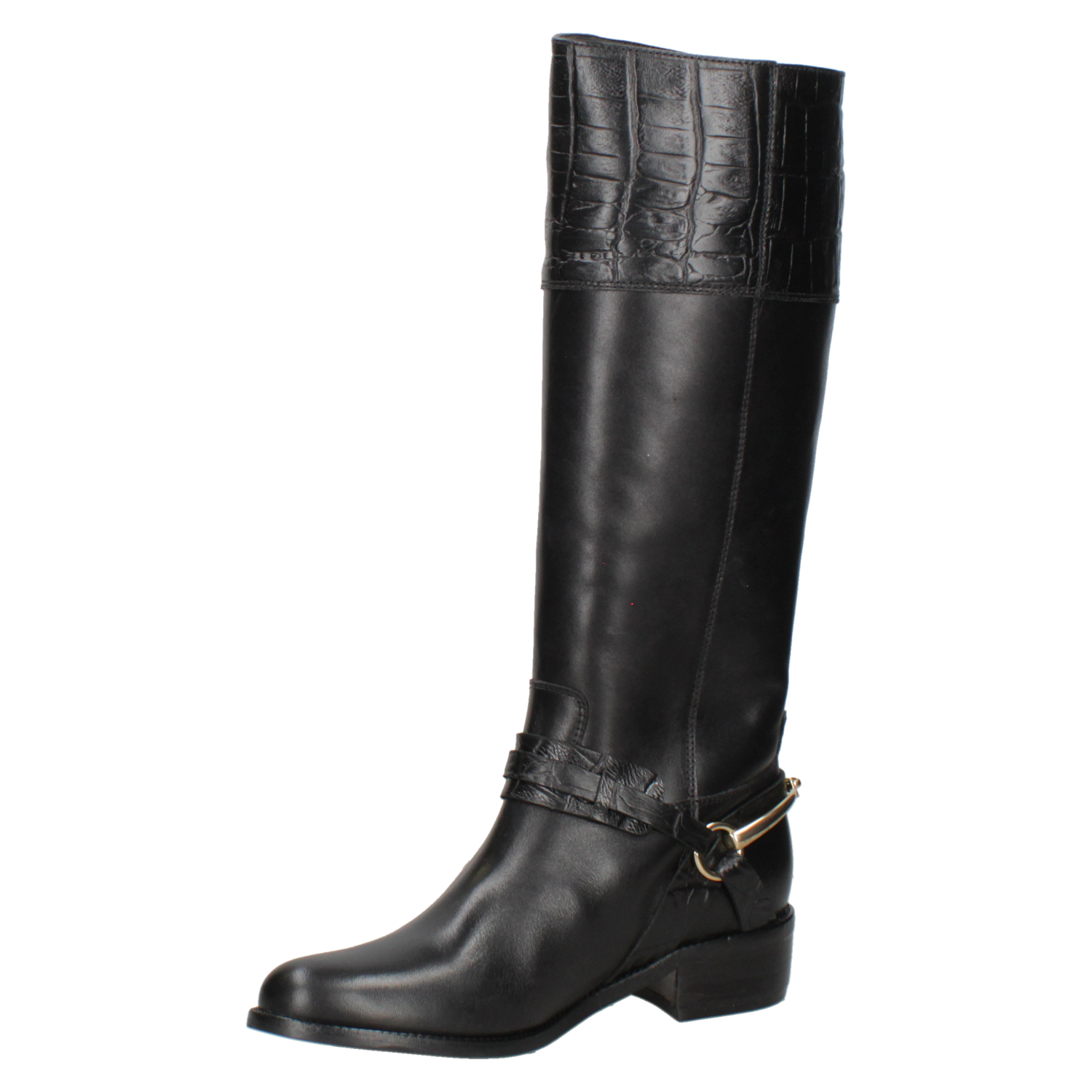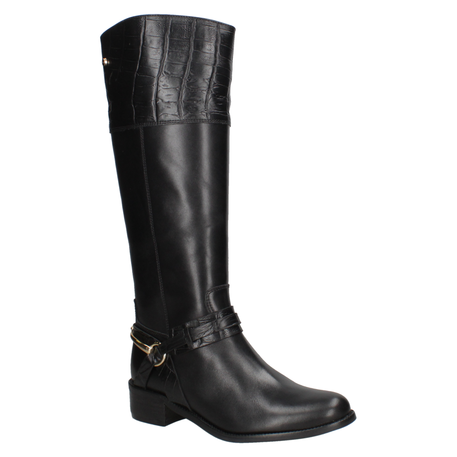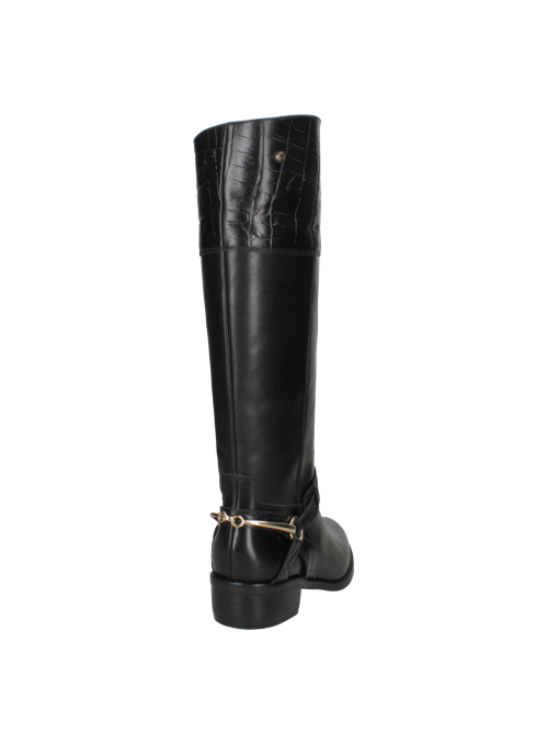 Descubre la elegancia y sofisticación de la bota de mujer de Mingo L451, diseñada para destacar en cualquier ocasión. Este calzado presenta una caña alta de 36 cm que ofrece soporte y protección, mientras que su exterior de cuero con un patrón texturizado similar al reptil añade un toque moderno y distintivo. Con un corte estilizado y líneas limpias, esta bota incluye una correa decorativa en el tobillo con una hebilla metálica que aporta un extra de sofisticación. Su suela de espesor moderado y el taco bloque de 4 cm proporcionan altura sin sacrificar comodidad, convirtiéndola en la elección perfecta para quienes buscan elegancia y confort en un solo producto.