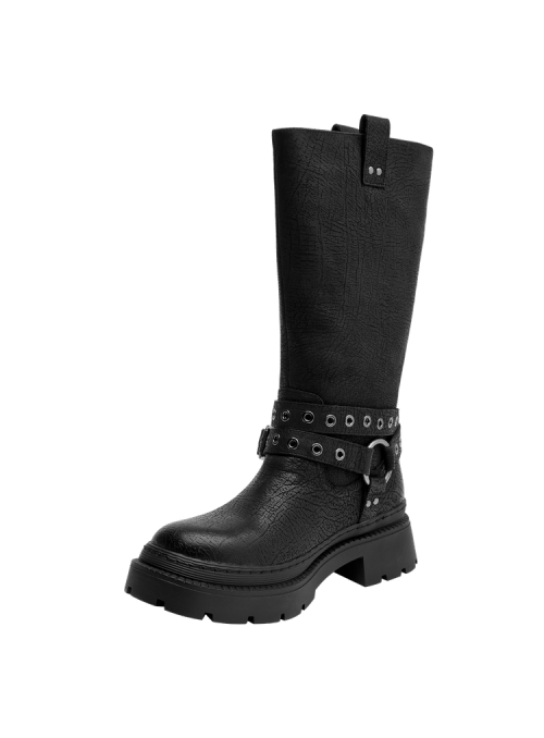 Perfectas para combinar con atuendos casuales, estas botas de taco medio de 5 cm son versátiles para cualquier ocasión, desde un paseo urbano hasta una escapada al campo. Su diseño atemporal se adapta fácilmente a diferentes estilos, permitiéndote lucir con confianza en cada paso. No te pierdas la oportunidad de agregar este imprescindible a tu colección de calzado, ideal para quienes buscan botas de cuero de mujer con estilo militar para uso diario.