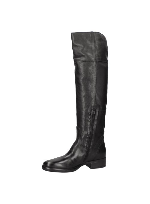 Bota casual de cuero negro para mujer, diseño estilizado sobre la rodilla, ideal para looks elegantes. Bota negra de cuero para mujer, estilo casual y elegante, con diseño sobre la rodilla, ideal para un look moderno. Calzado de cuero negro para mujer, estilo minimalista, con tacón bajo grueso para mayor estabilidad y comodidad. Bota sobre la rodilla de cuero negro, estilo casual y sofisticado, perfecta para proteger contra el frío. Elegante bota de cuero negro para mujer, sin adornos ni cierres visibles, con acabado liso y moderno.