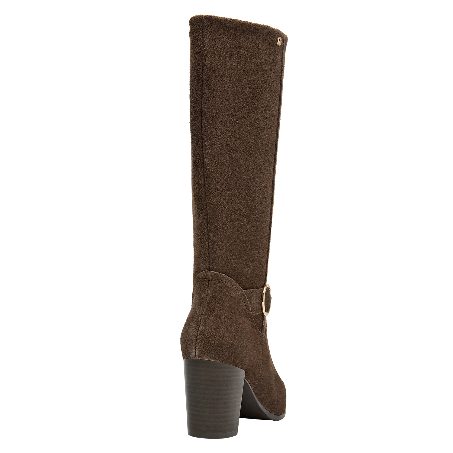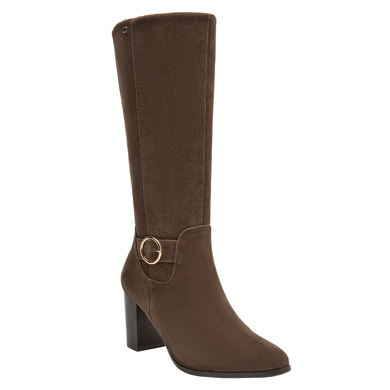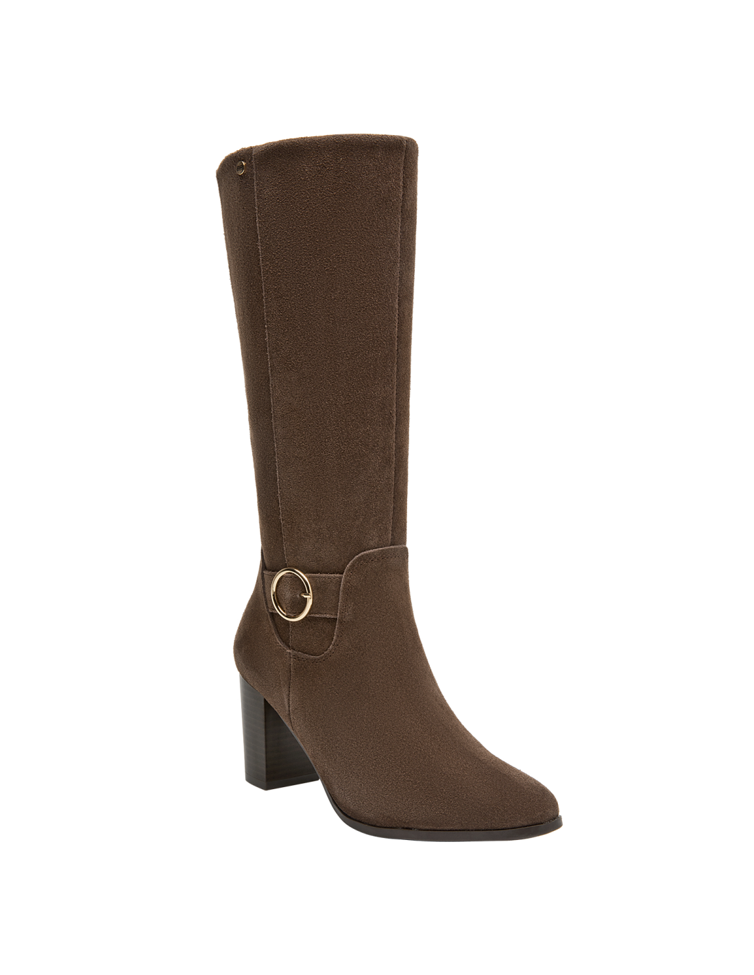 Botín de cuero para mujer de estilo urbano en color moro, con punta puntiaguda y taco bloque de 7 cm. El exterior de cuero presenta un acabado sobrio con costuras definidas, mientras el forro sintético/textil acompaña la estructura interior. La silueta afinada y el tacón estable elevan tu look en clave contemporánea, apto para transiciones del día a la noche.