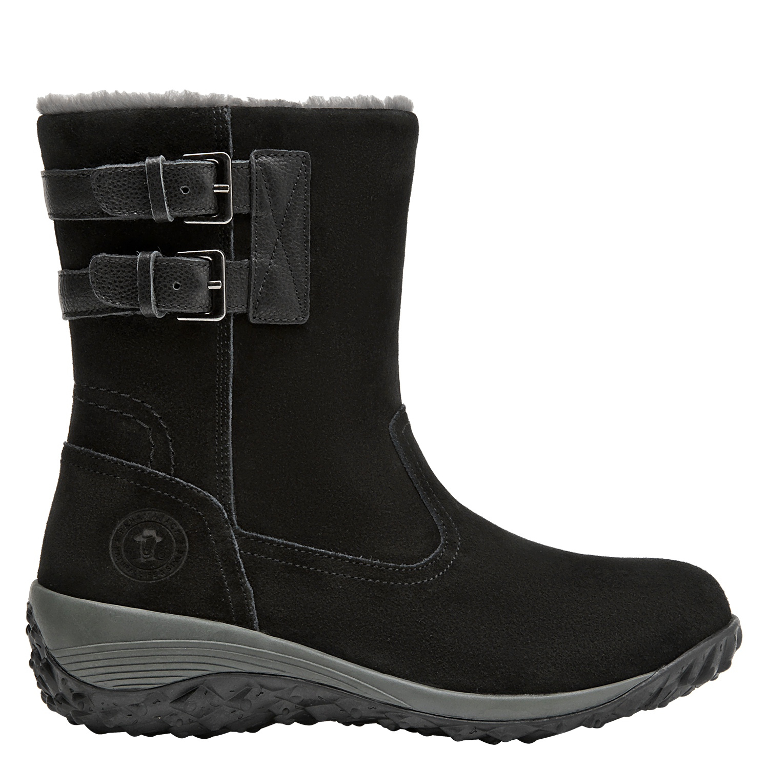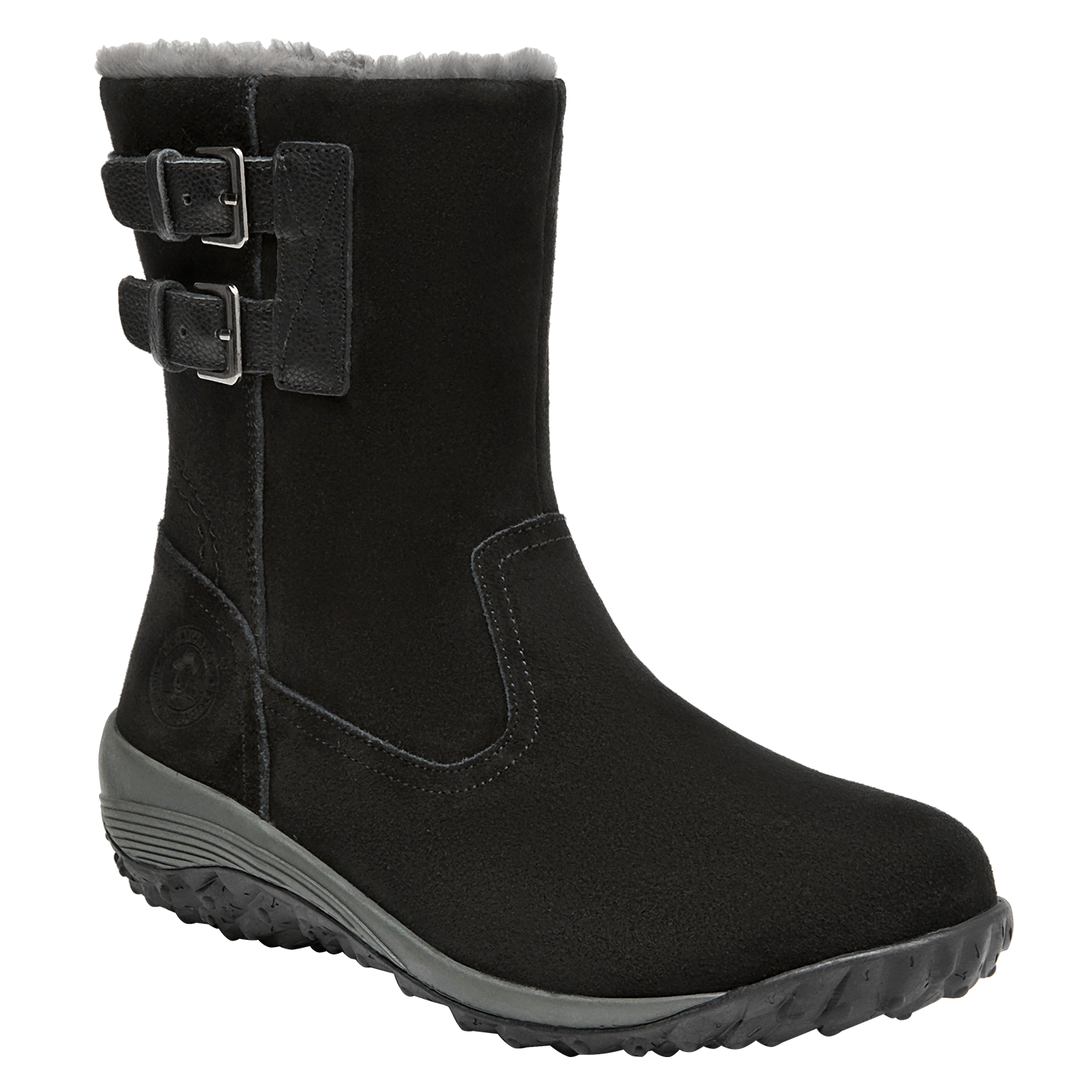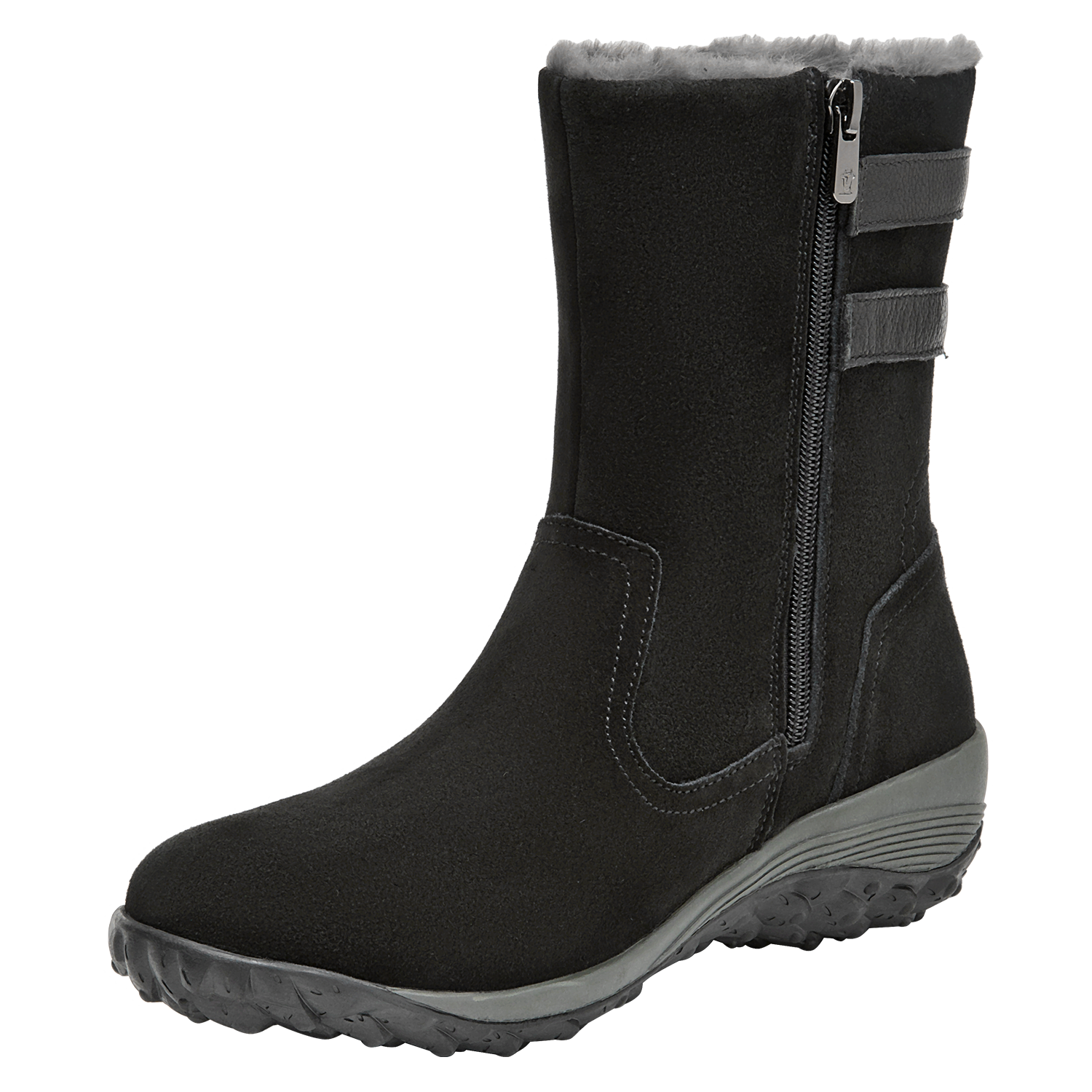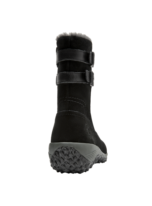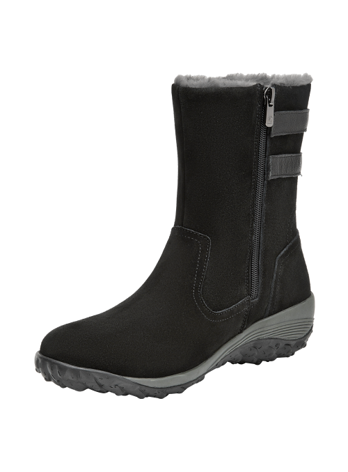 Botín urbano de mujer en cuero negro, con punta redonda y suela plana de 5 cm que aporta estabilidad y un sutil realce. Su forro mixto textil/pelo entrega abrigo agradable en días frescos, mientras el acabado limpio y minimalista facilita combinarlo con distintos estilos. La construcción en cuero aporta durabilidad y un look pulido, ideal para la rotación diaria sin perder comodidad.