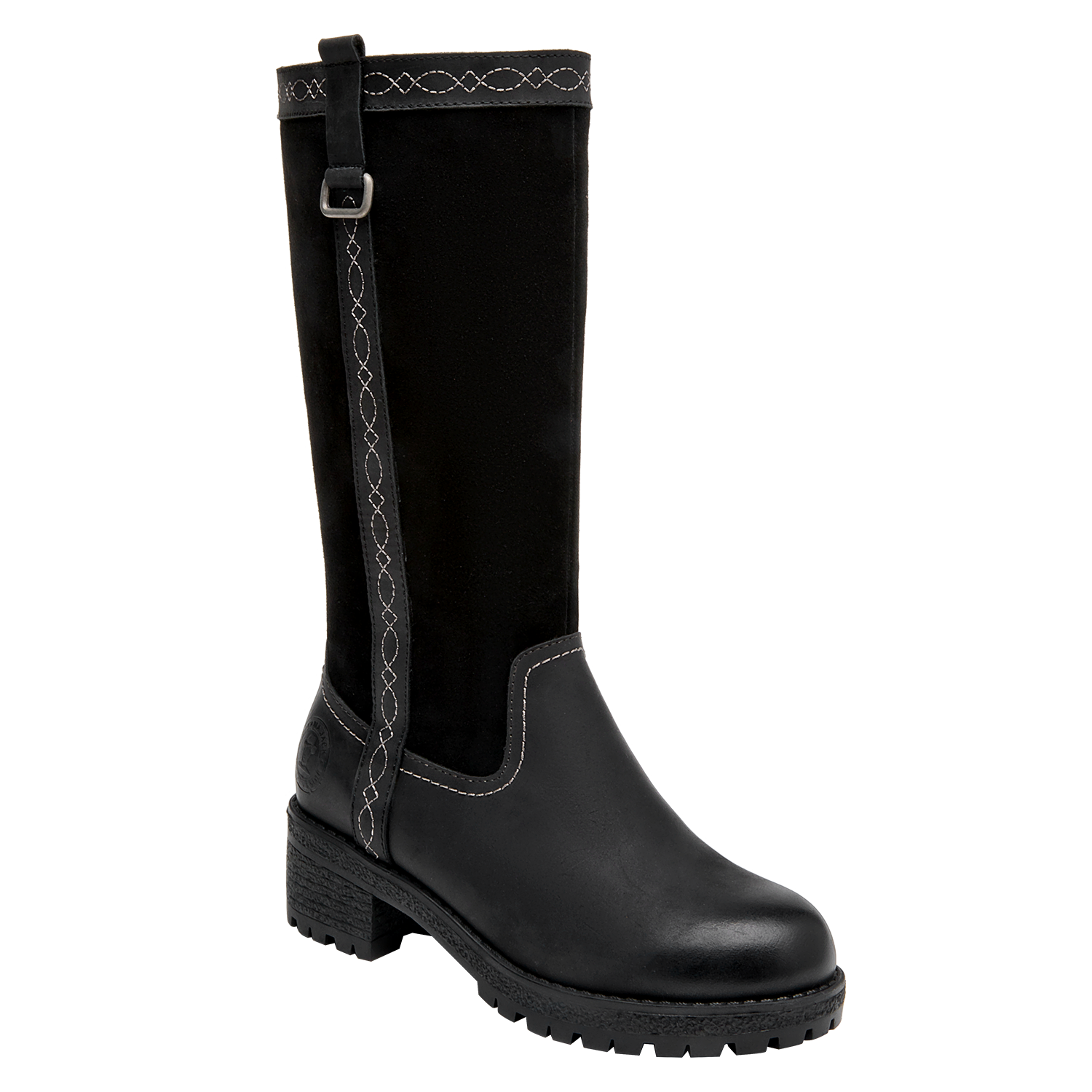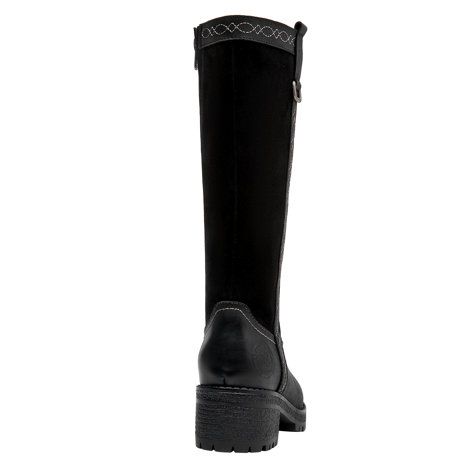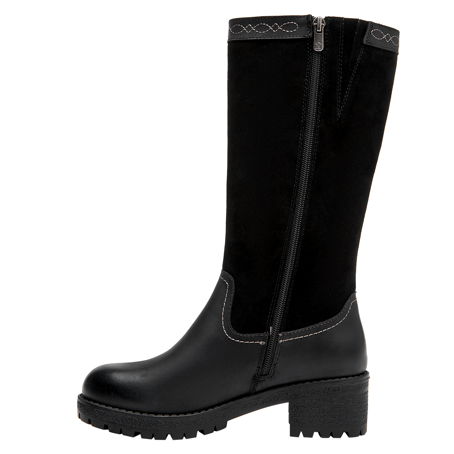 Botín de cuero para mujer en color negro, de diseño versátil y urbano. Presenta punta redonda para un look clásico y cómodo, taco bloque de 5 cm que aporta estabilidad y altura equilibrada, y forro mixto textil/PU que favorece una sensación agradable al uso. Su acabado en cuero realza la apariencia limpia y fácil de combinar en distintas ocasiones.