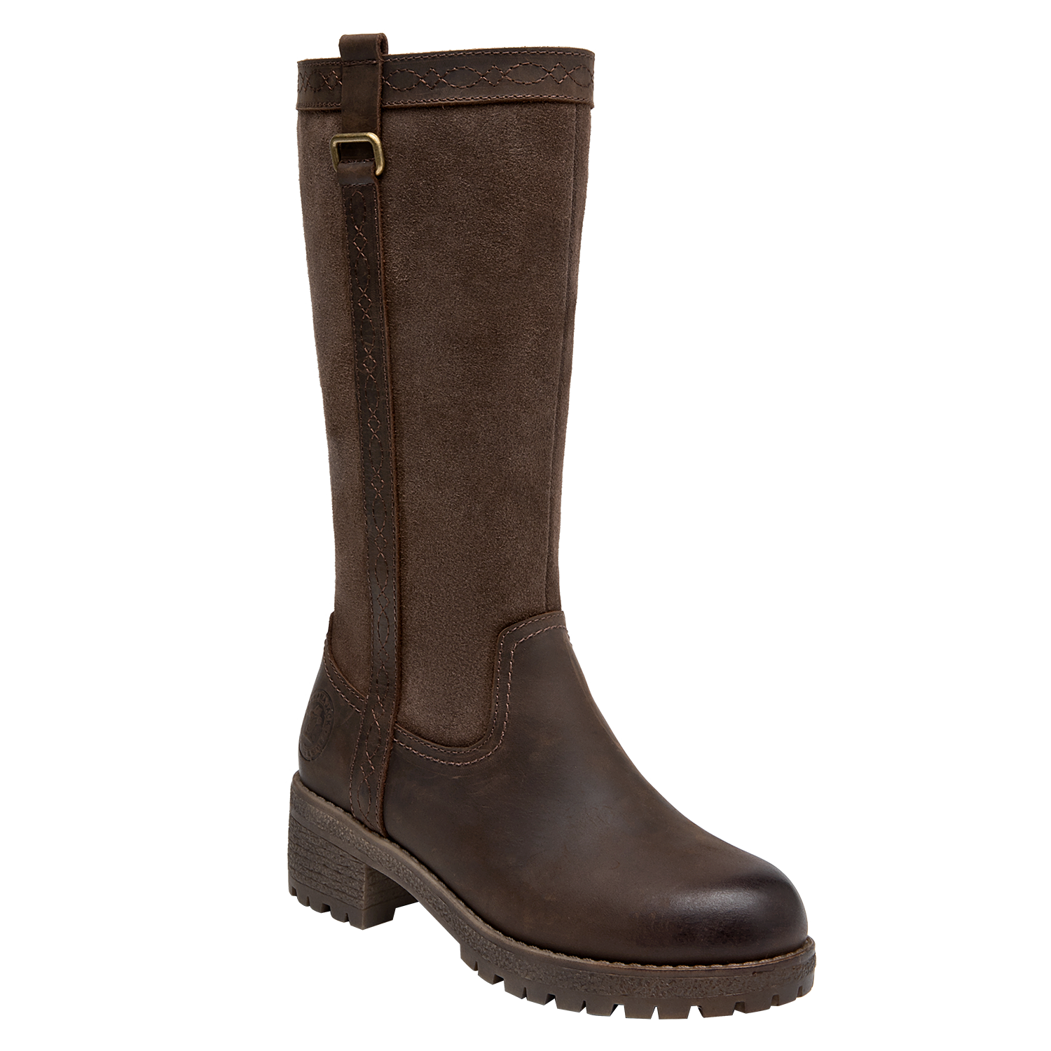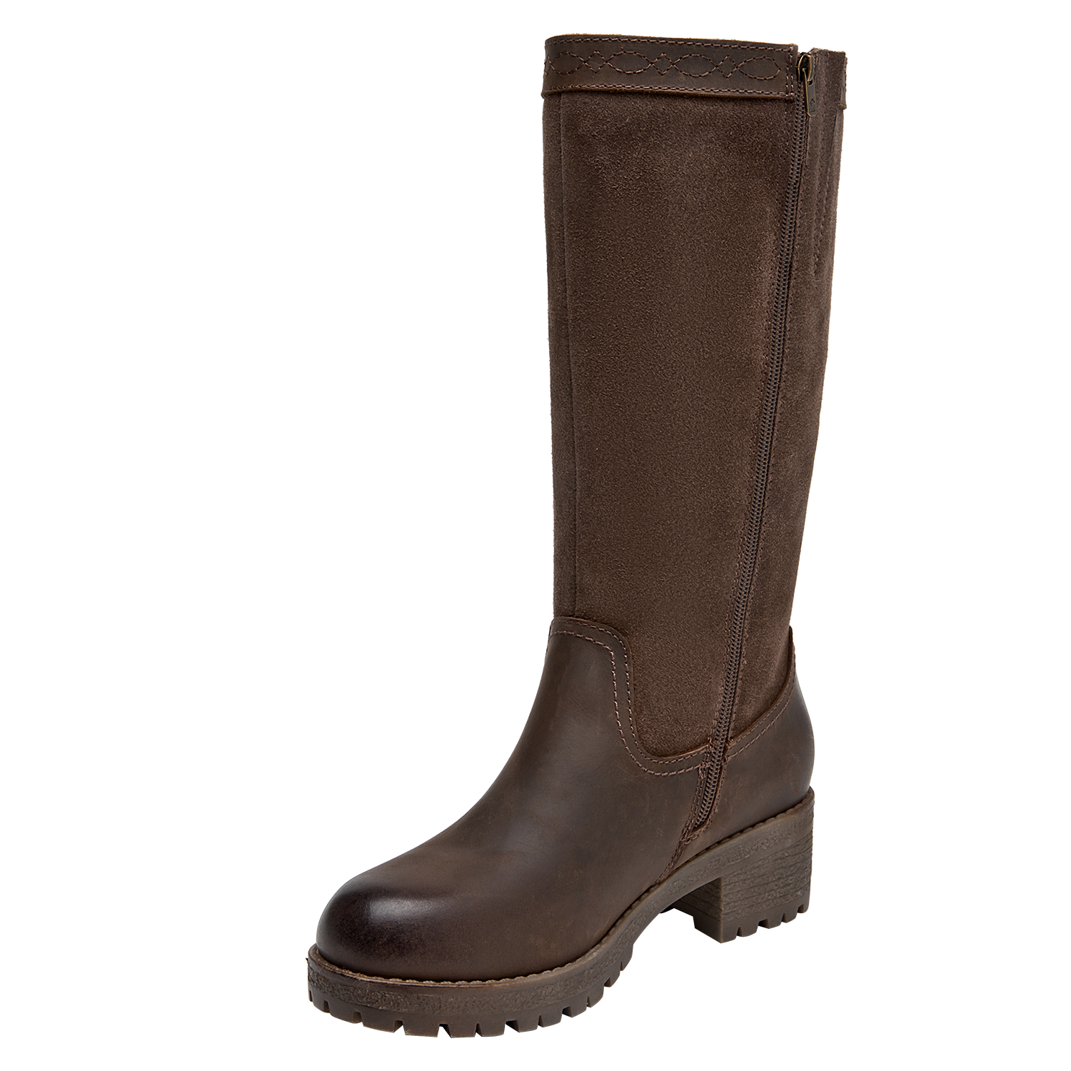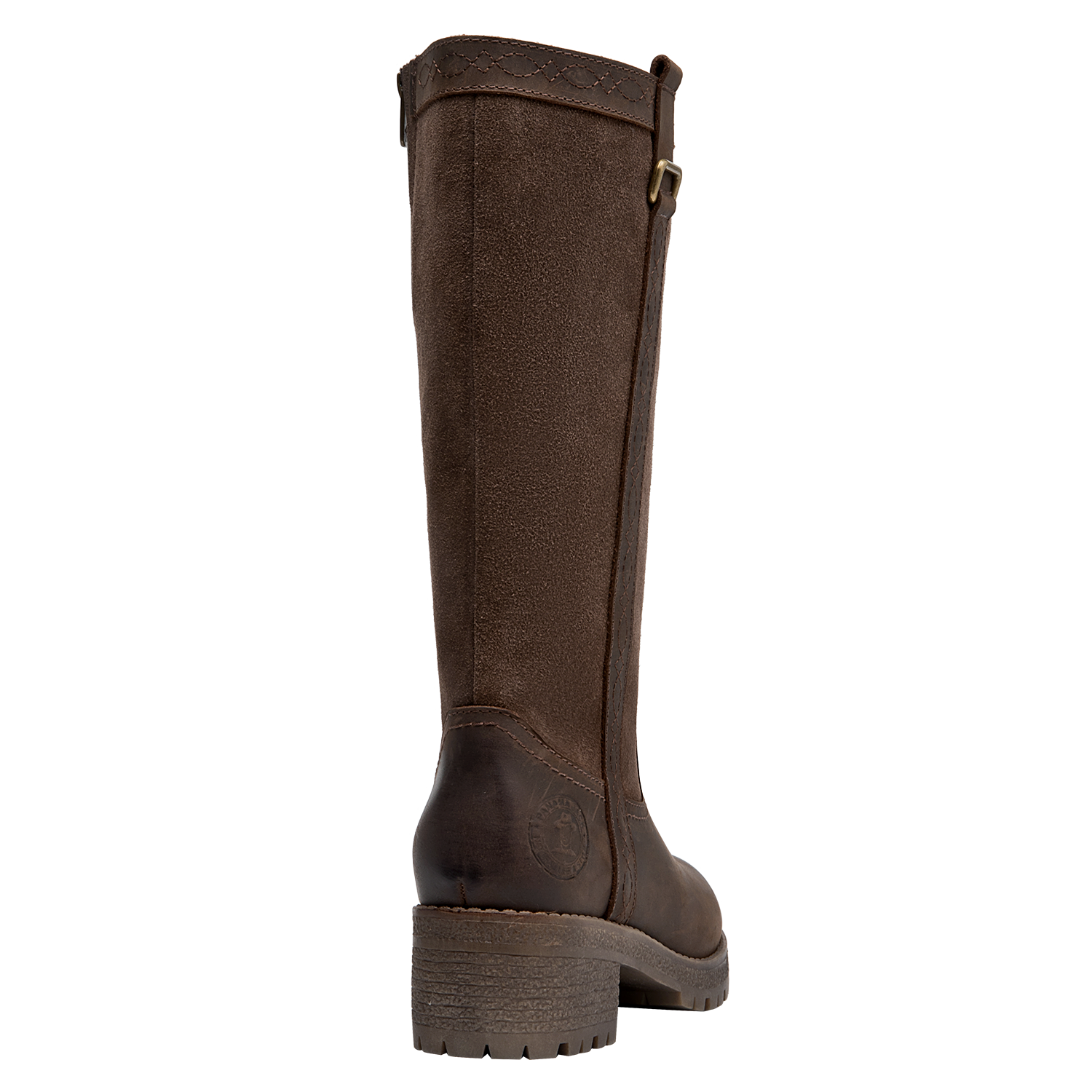 Botín urbano de cuero para mujer en color café, con punta redonda y taco bloque de 5 cm que aporta estabilidad. El acabado liso resalta costuras prolijas y su forro textil/PU suma confort. La suela con relieve discreto favorece el uso diario y su silueta limpia se adapta a distintos estilos, desde jornadas laborales hasta salidas casuales.