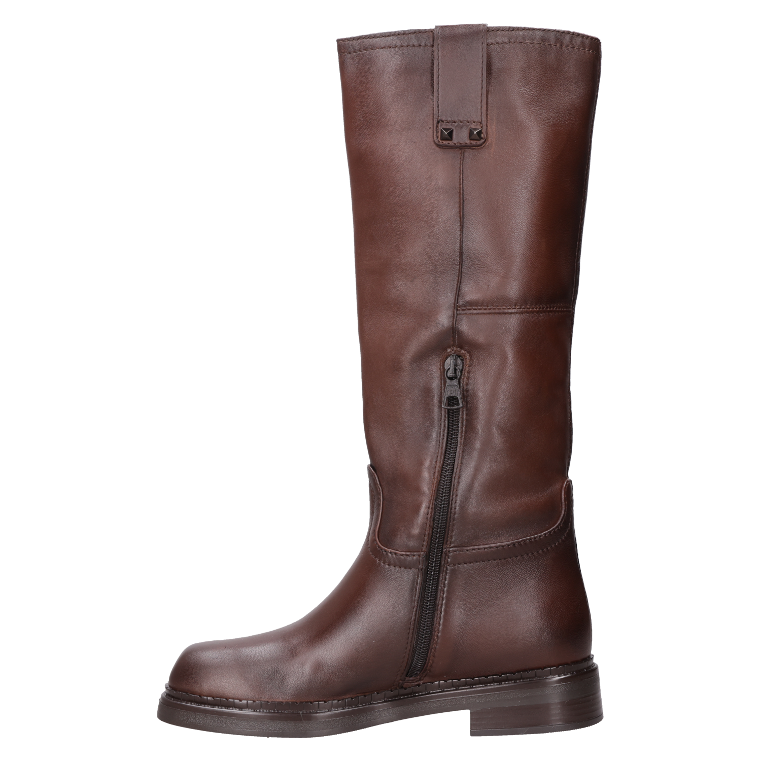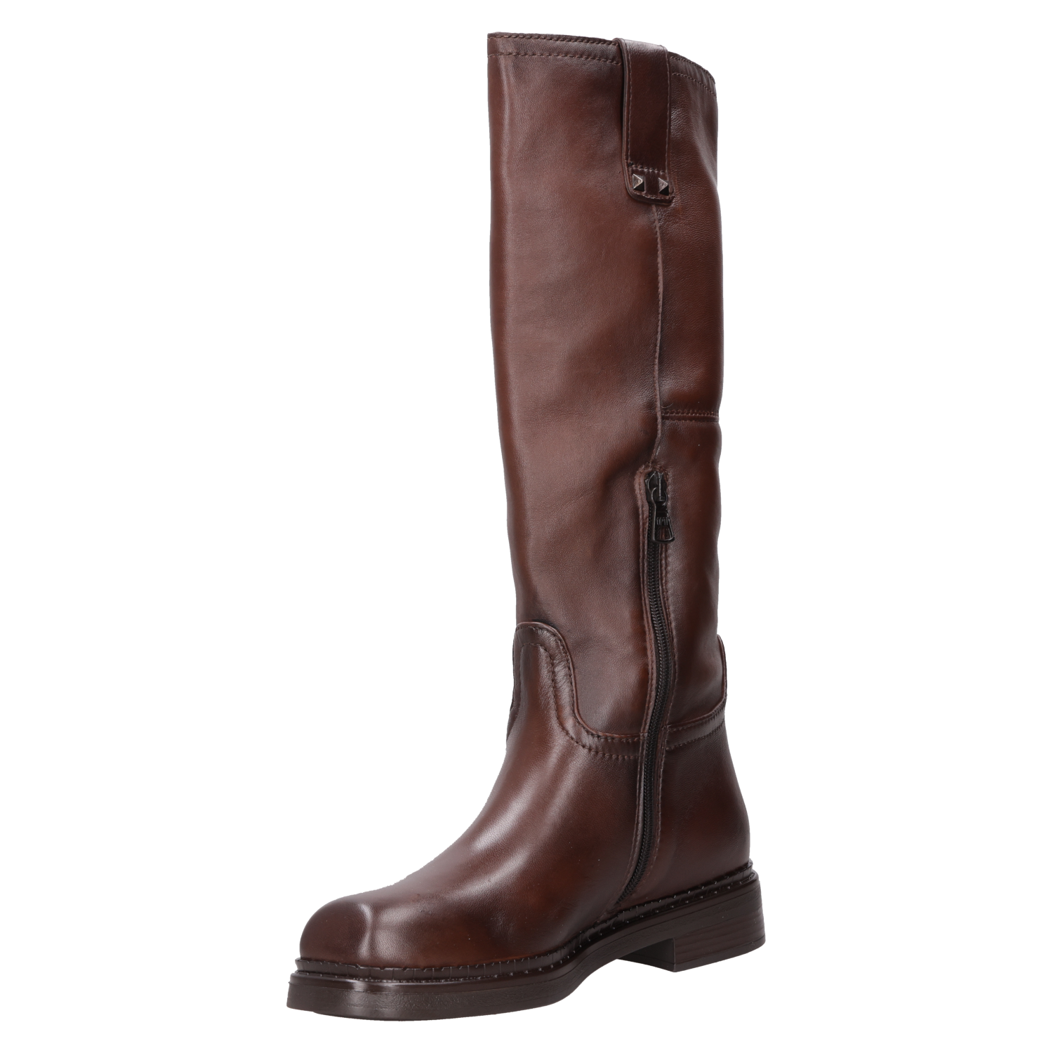 Descubre la esencia audaz de la Bota Alta de Cuero Marrón Zappa. Con su diseño vanguardista y elegante, esta bota de estilo urbano se destaca por su taco bloque de 3 cm y punta cuadrada, perfecta para marcar tendencia. Su acabado en cuero brillante ofrece un contraste visual irresistible. Combínala con un vestido fluido para un look atractivo o con jeans ajustados para un estilo desenfadado que refleja tu carácter único.