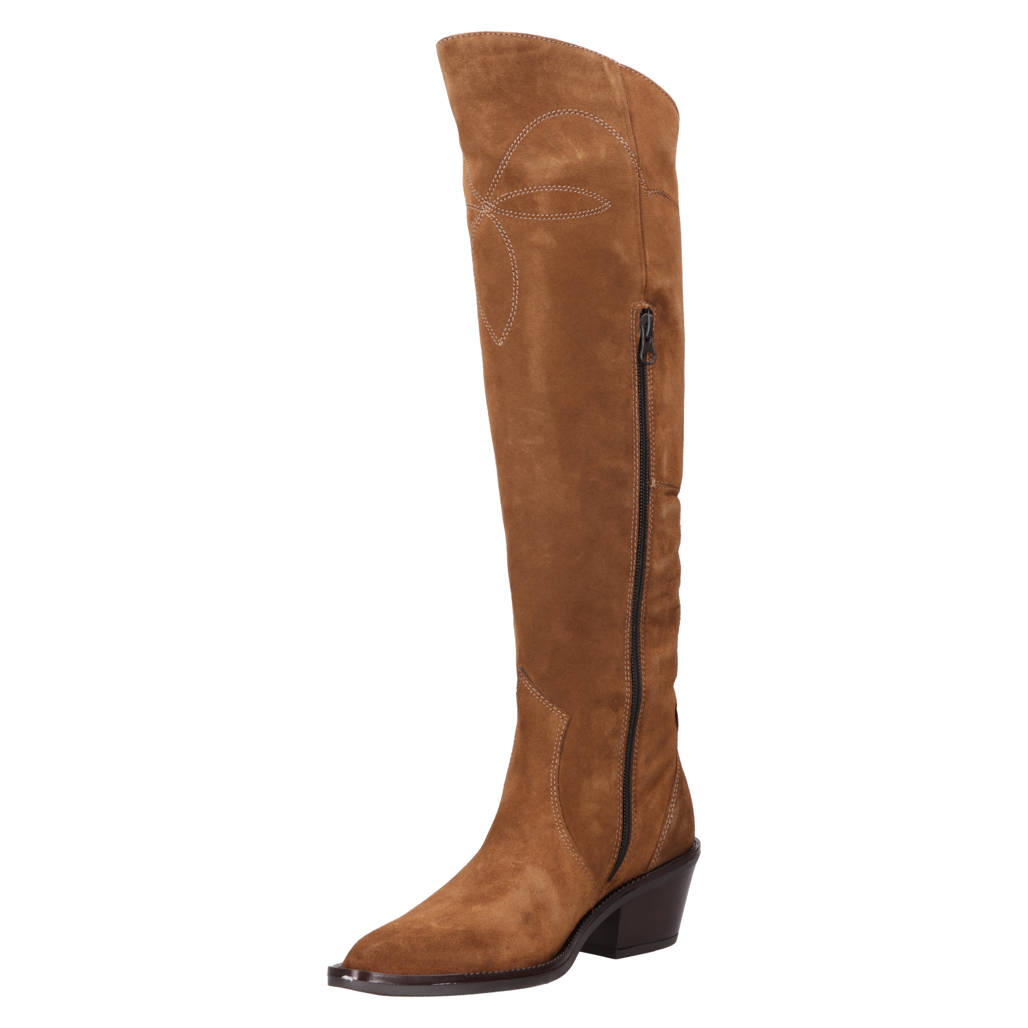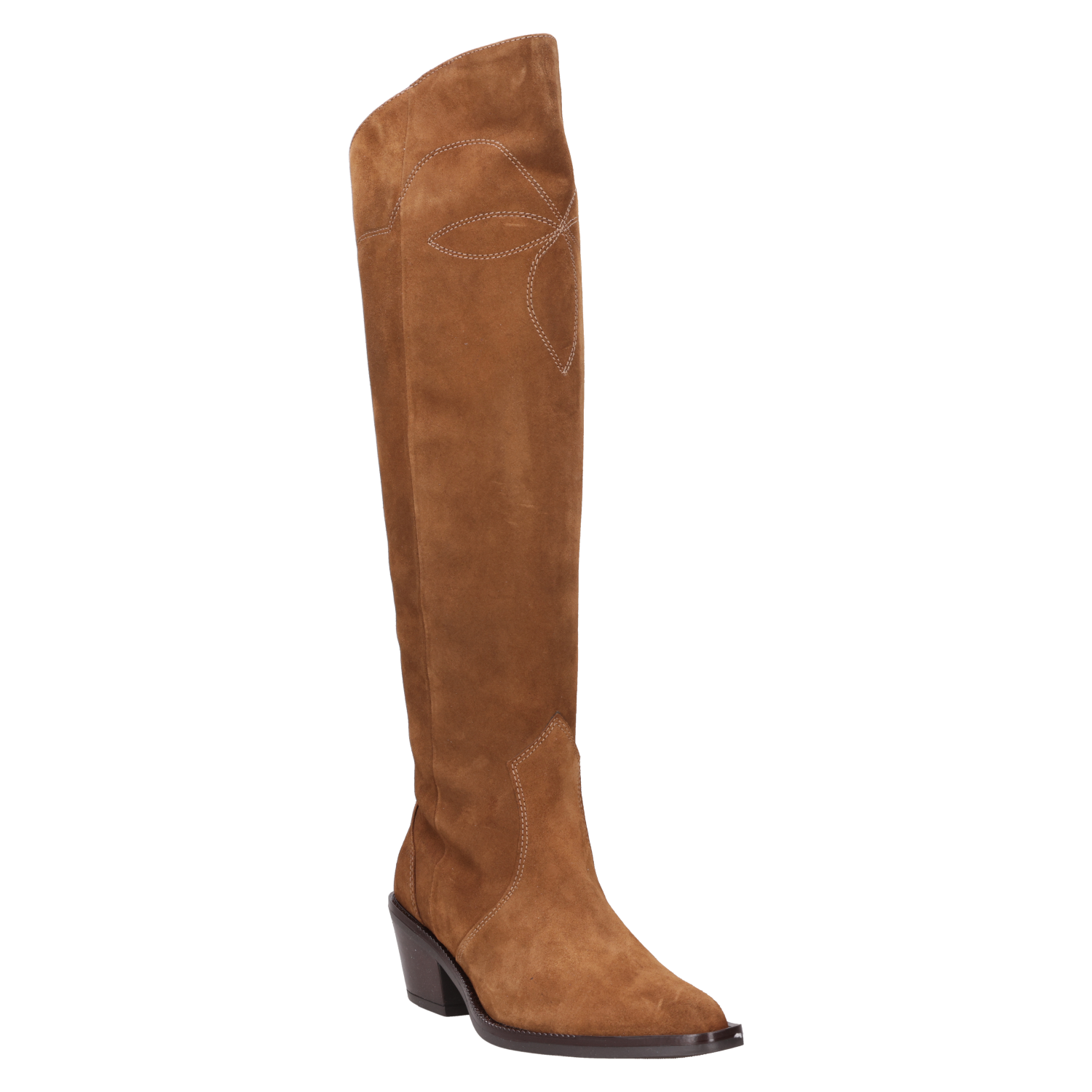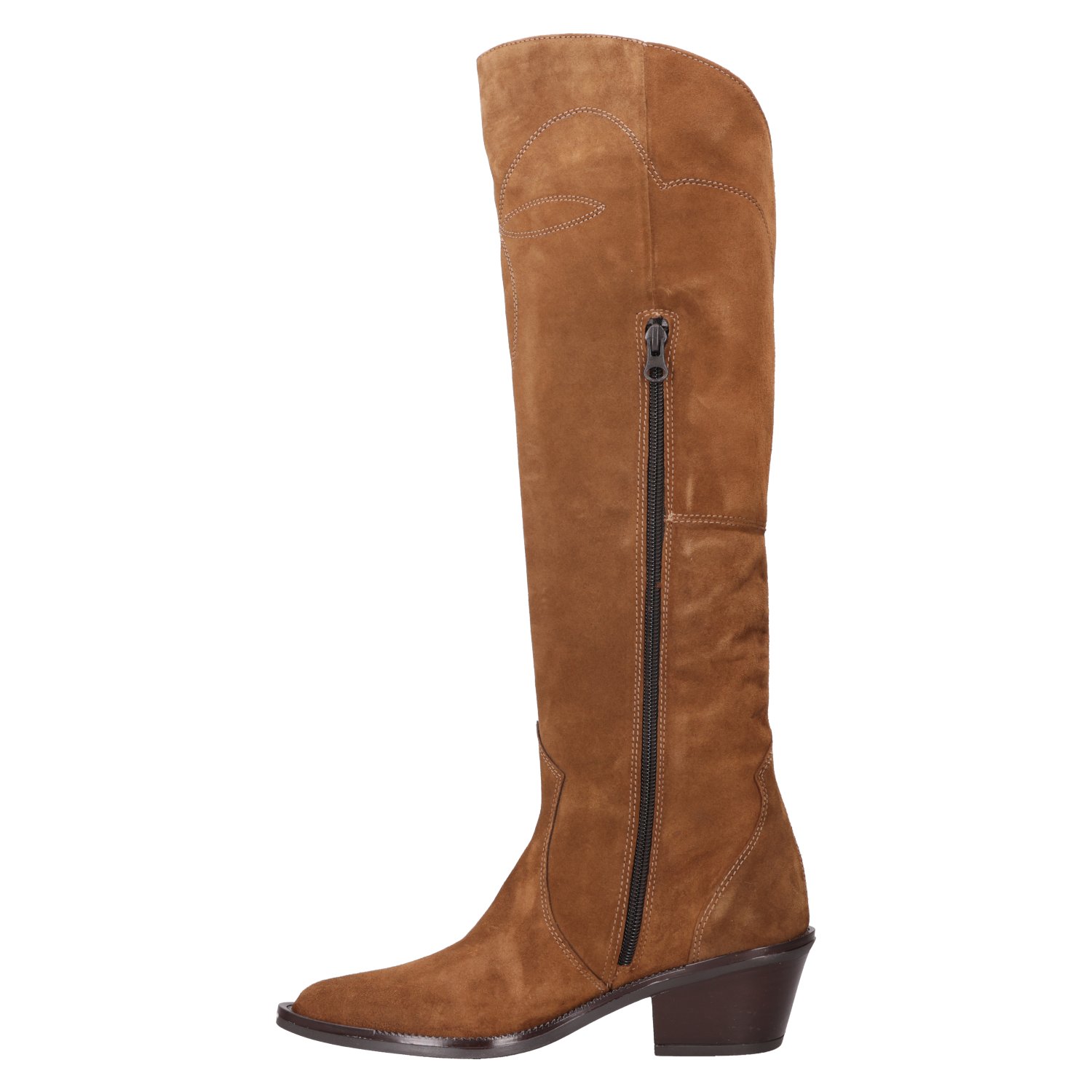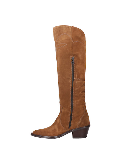 Atrévete a destacar con nuestra bota de cuero camel, un diseño que fusiona sofisticación y carácter. Con un tacón de bloque de 6 cm y una punta puntiaguda, este modelo ofrece un estilo vanguardista que catapulta cualquier look. El acabado en gamuza y el detalle bordado en la caña añaden un toque único que resalta su actitud disruptiva. Combínala con un vestido entallado o unos jeans ajustados para un look que captura miradas y marca tendencias.