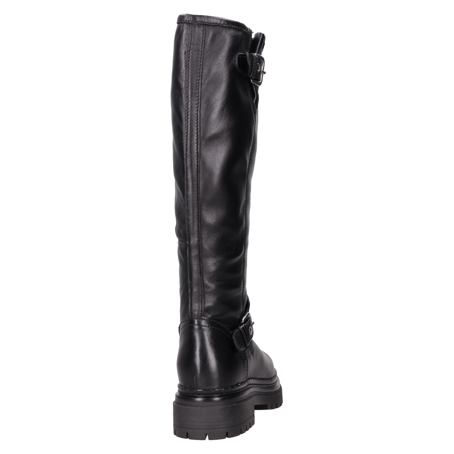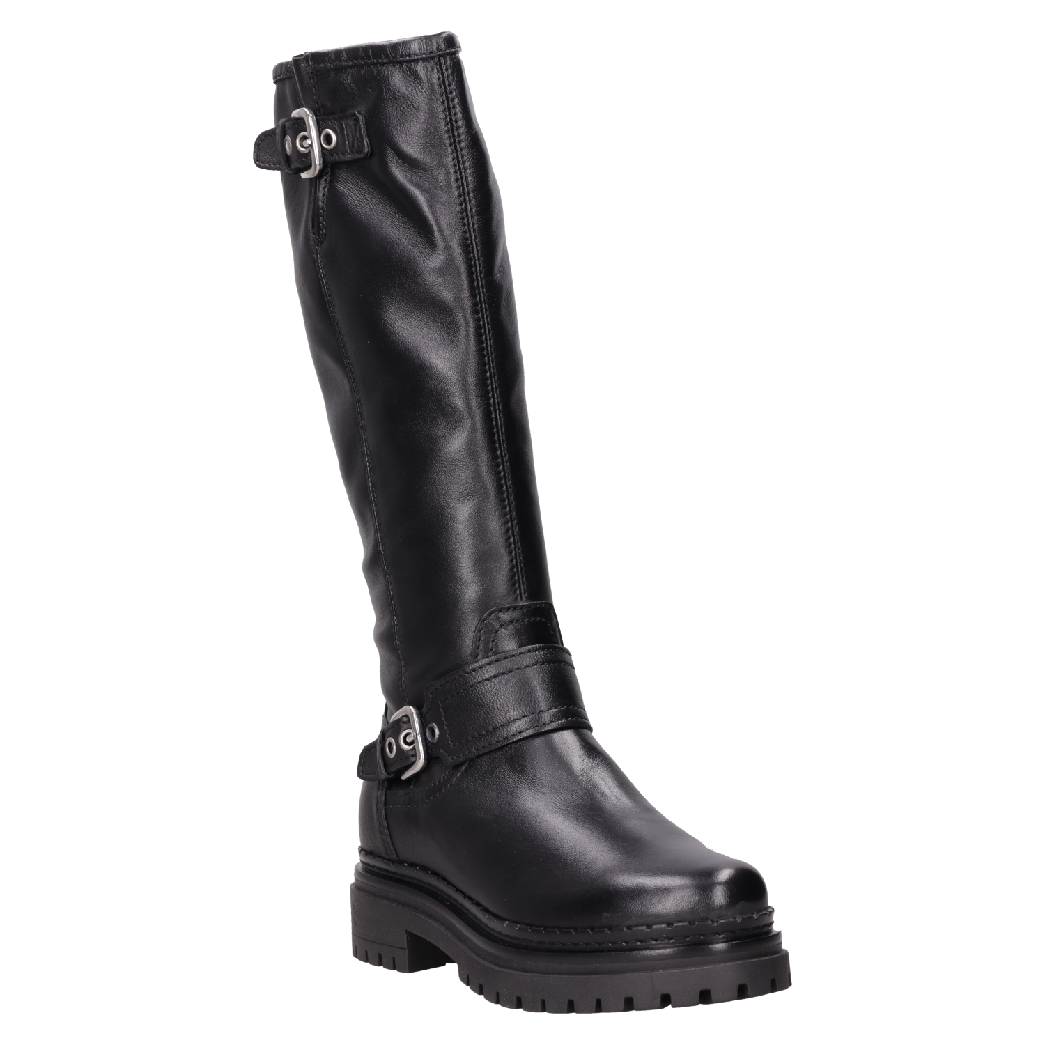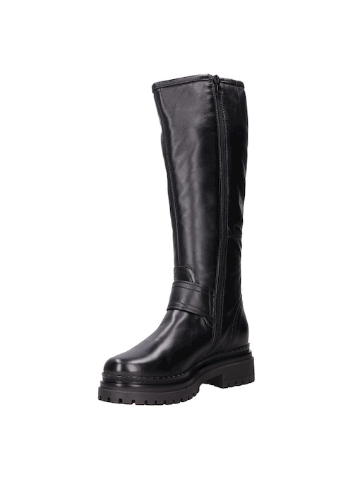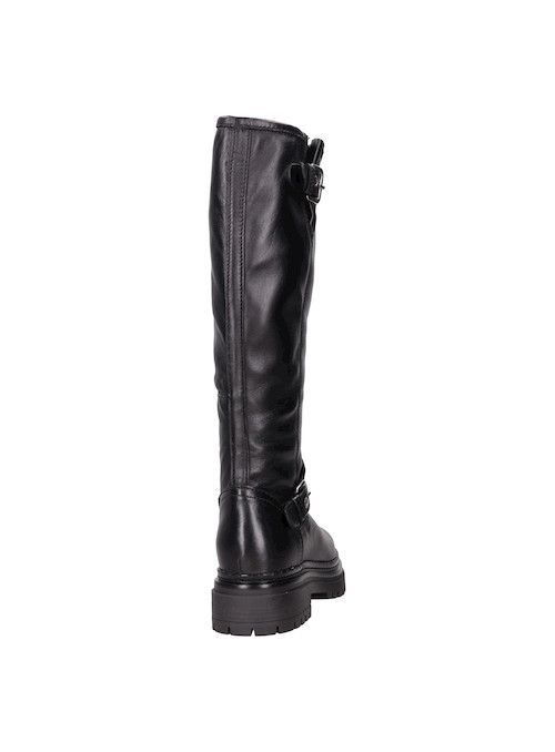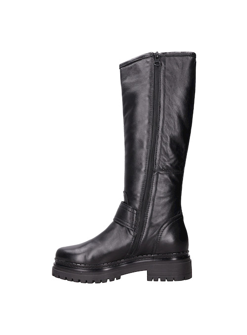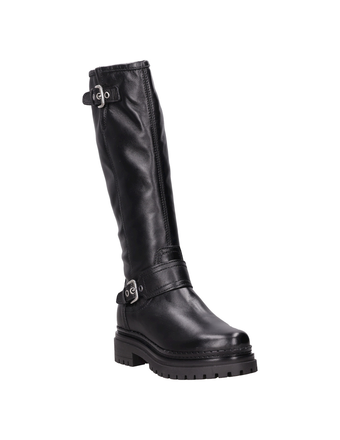 Lleva tu estilo al siguiente nivel con nuestra bota negra de cuero, una pieza esencial que irradia actitud. Con un diseño vanguardista, su acabado en cuero brillante se complementa con detalles metálicos, haciendo de cada paso una declaración de intenciones. La altura del taco bloque de 4.5 cm proporciona comodidad sin sacrificar el impacto visual. Combínala con un vestido urbano o unos jeans ajustados para un look protagónico que desafía lo convencional.