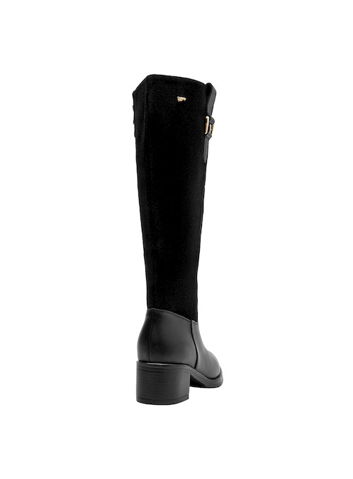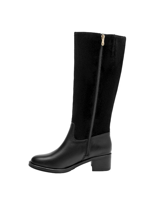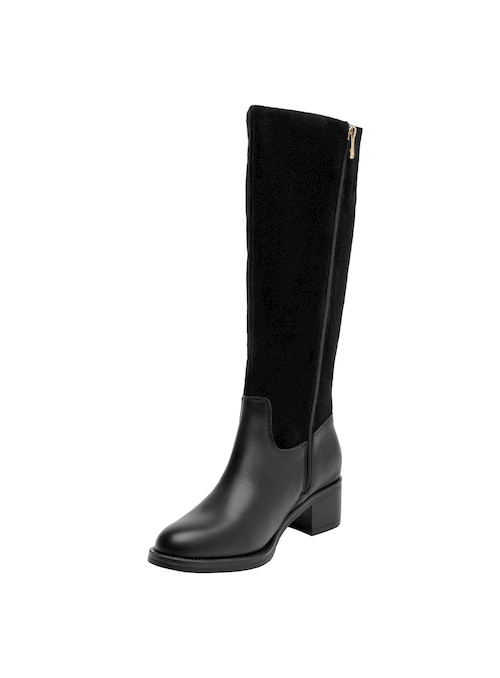 Descubre la versatilidad de estas botas altas de cuero negro, pensadas para acompañar cada paso de tu vida urbana. Con un taco bloque de 5 cm, estas botas no solo ofrecen estabilidad, sino que también resaltan un diseño atemporal. La combinación de cuero suave y el forro en steam brindan una experiencia de confort inigualable, ideal para todo el día. Te invitamos a combinarlas con un vestido sencillo o tus jeans favoritos para un look sofisticado y actual.