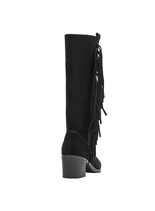 Adéntrate en un mundo de elegancia con la bota de cuero negro de Bruno Rossi. Con un taco bloque de 6 cm y una punta puntiaguda, este modelo destaca por su diseño actual y versátil. Los detalles de flecos añaden un toque distintivo y moderno, haciendo de esta pieza una elección perfecta para la mujer empoderada que busca estilo sin comprometer la comodidad. Combínalas con un vestido fluido o unos jeans ajustados para un look sofisticado y urbano.