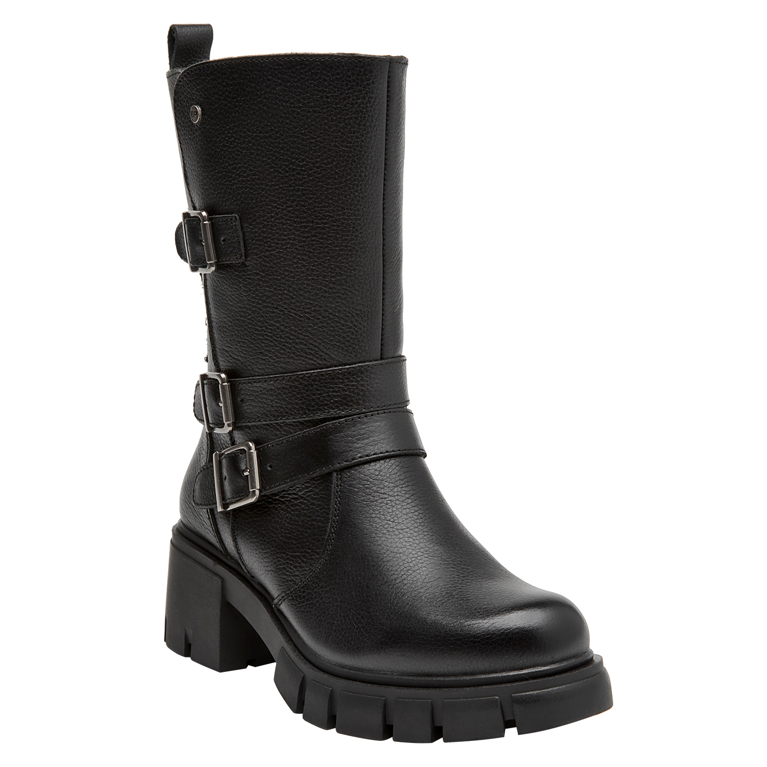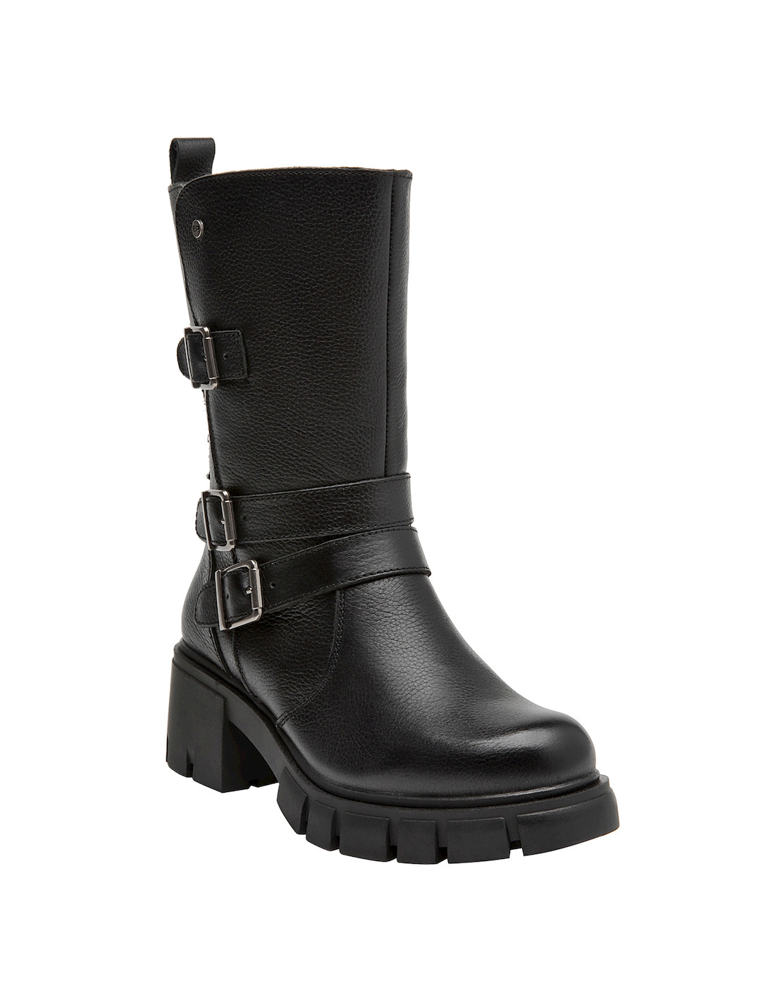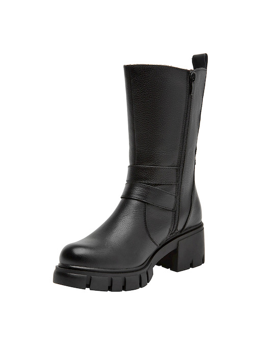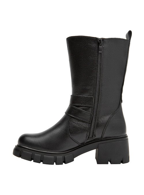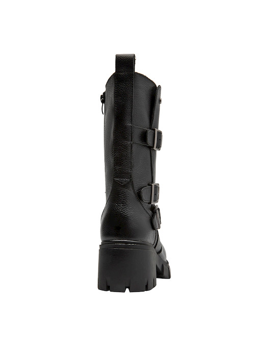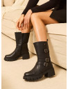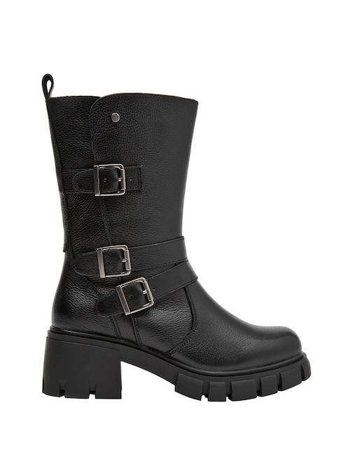 Las botas de cuero negro de Bruno Rossi son la elección perfecta para la mujer vanguardista. Su diseño funcional cuenta con un taco bloque de 6 cm que combina comodidad y elegancia en cada paso. Las correas laterales añaden un detalle distintivo, mientras que el acabado en cuero texturizado aporta un toque sofisticado. Ideales para lucir con un vestido midi o unos jeans ajustados, estas botas son versátiles y prácticas, adaptándose a cualquier ocasión.