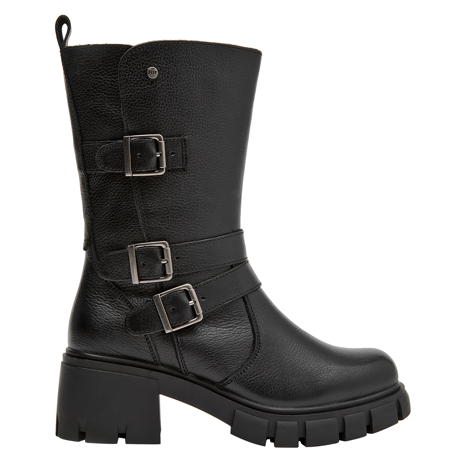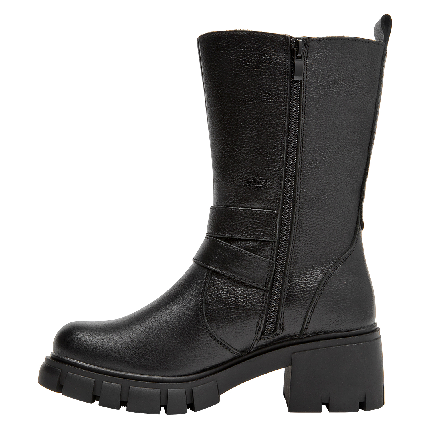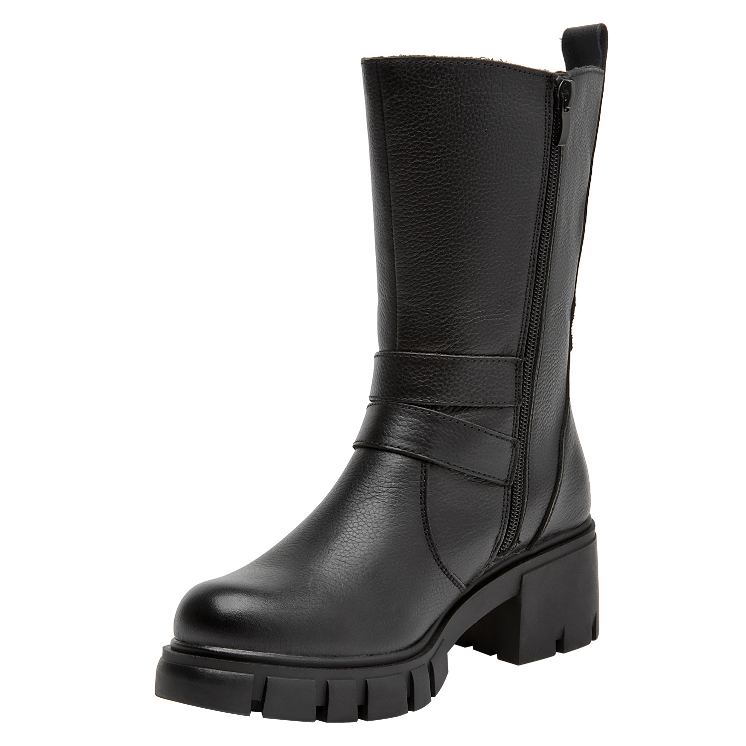 Las botas de cuero negro de Bruno Rossi son la elección perfecta para la mujer vanguardista. Su diseño funcional cuenta con un taco bloque de 6 cm que combina comodidad y elegancia en cada paso. Las correas laterales añaden un detalle distintivo, mientras que el acabado en cuero texturizado aporta un toque sofisticado. Ideales para lucir con un vestido midi o unos jeans ajustados, estas botas son versátiles y prácticas, adaptándose a cualquier ocasión.