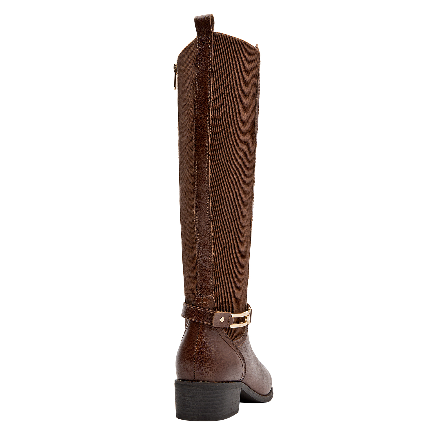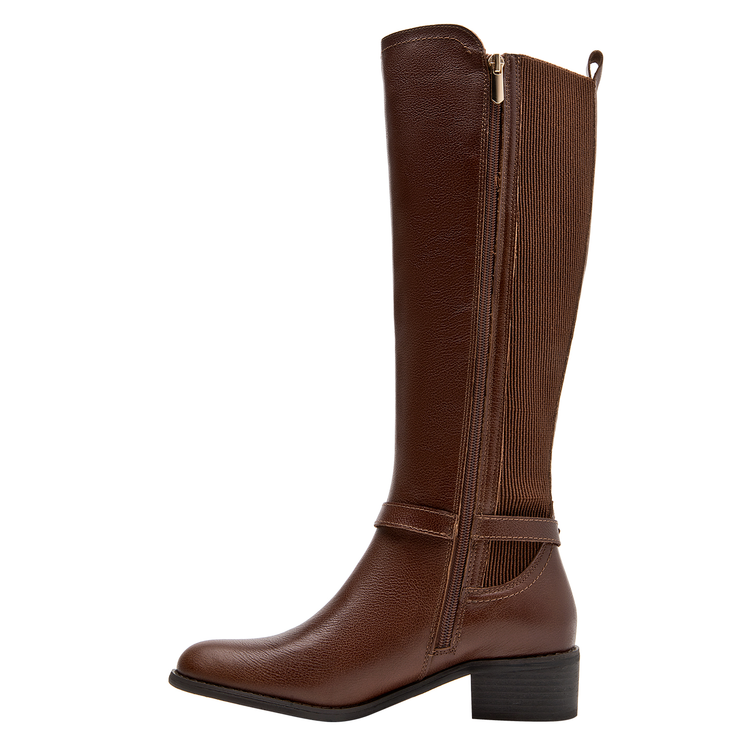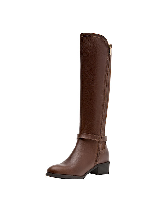 Descubre la fusión perfecta entre elegancia y funcionalidad con nuestras botas de cuero café. Este diseño atemporal, con su taco bloque de 4 cm y su punta puntiaguda, se adapta a cada instante de tu vida diaria. El cuero de gran calidad aporta una textura suave y durable, mientras que el detalle de la hebilla añade un toque contemporáneo. Combínalas con un vestido midi o con jeans ajustados para conseguir un look que irradia confianza y sofisticación.