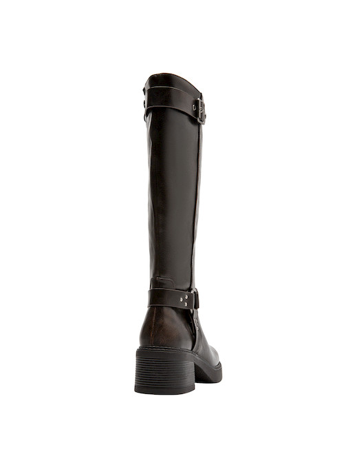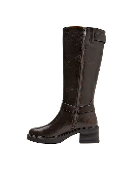 Explora la versatilidad y estilo de nuestras botas de mujer en un sofisticado tono café. Con un diseño que combina estética y funcionalidad, su acabado sintético resalta en cualquier ocasión. El taco bloque de 4 cm asegura comodidad durante todo el día, mientras que los detalles en la parte superior añaden un toque distintivo. Estas botas son ideales para la mujer contemporánea que busca un calzado que refleje su empoderamiento y elegancia. Combínalas con un abrigo largo y unos jeans ajustados o con una falda midi para un look actual y chic.
