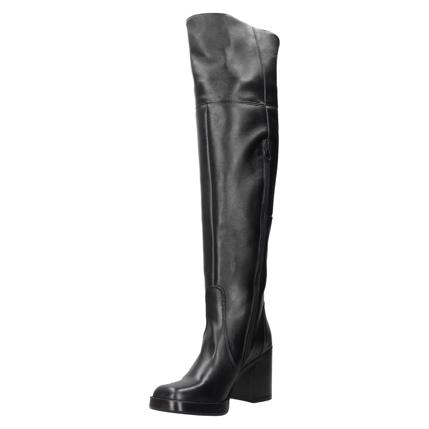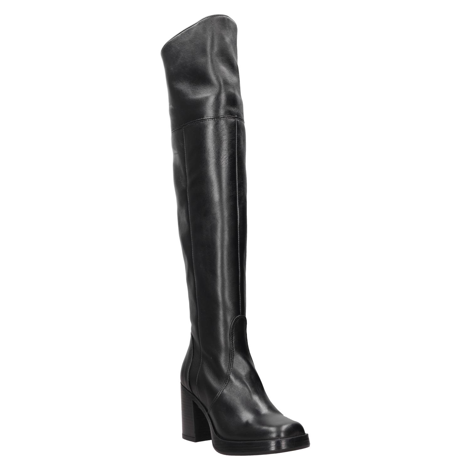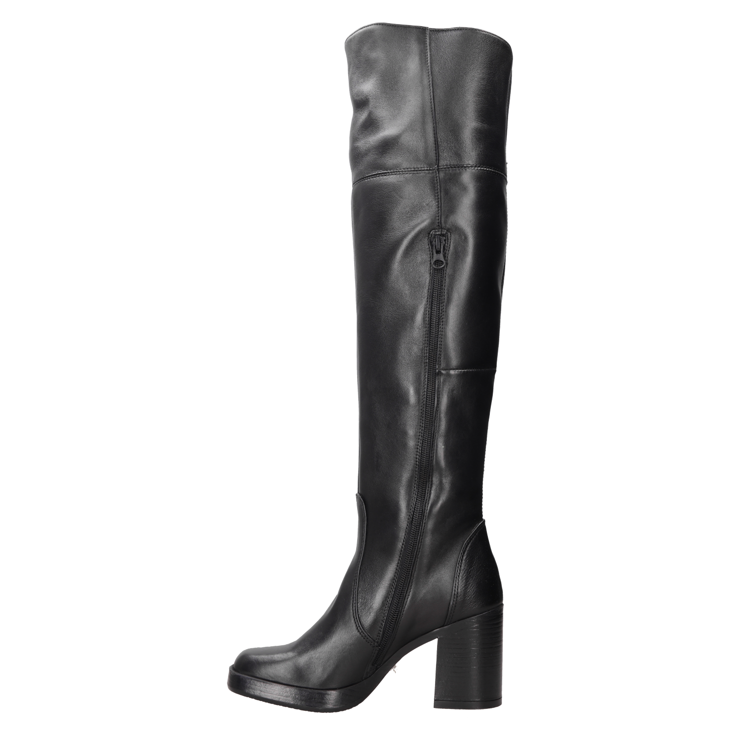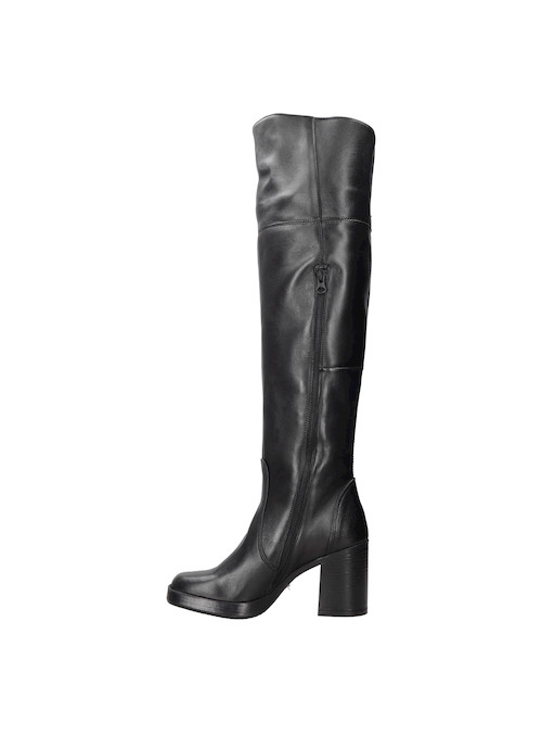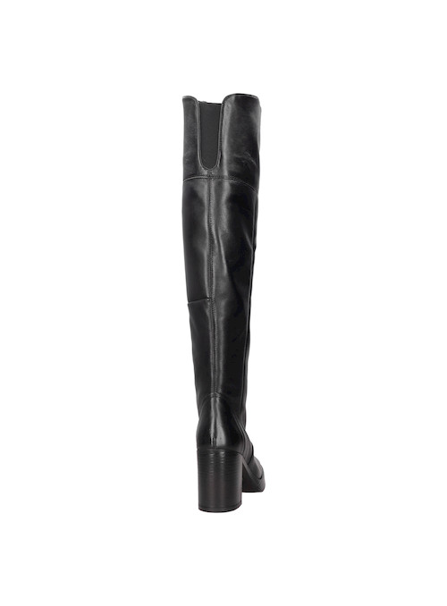 Atrévete a destacar con nuestras impresionantes botas altas de cuero negro. Con un diseño vanguardista y un tacón bloque de 8.5 cm, estas botas son el complemento perfecto para un look que desafía lo convencional. Su acabado en cuero suave, combinado con la silueta estilizada, te proporciona tanto comodidad como actitud. Úsalas con un vestido ajustado o jeans rotos para un contraste impactante que no pasará desapercibido.