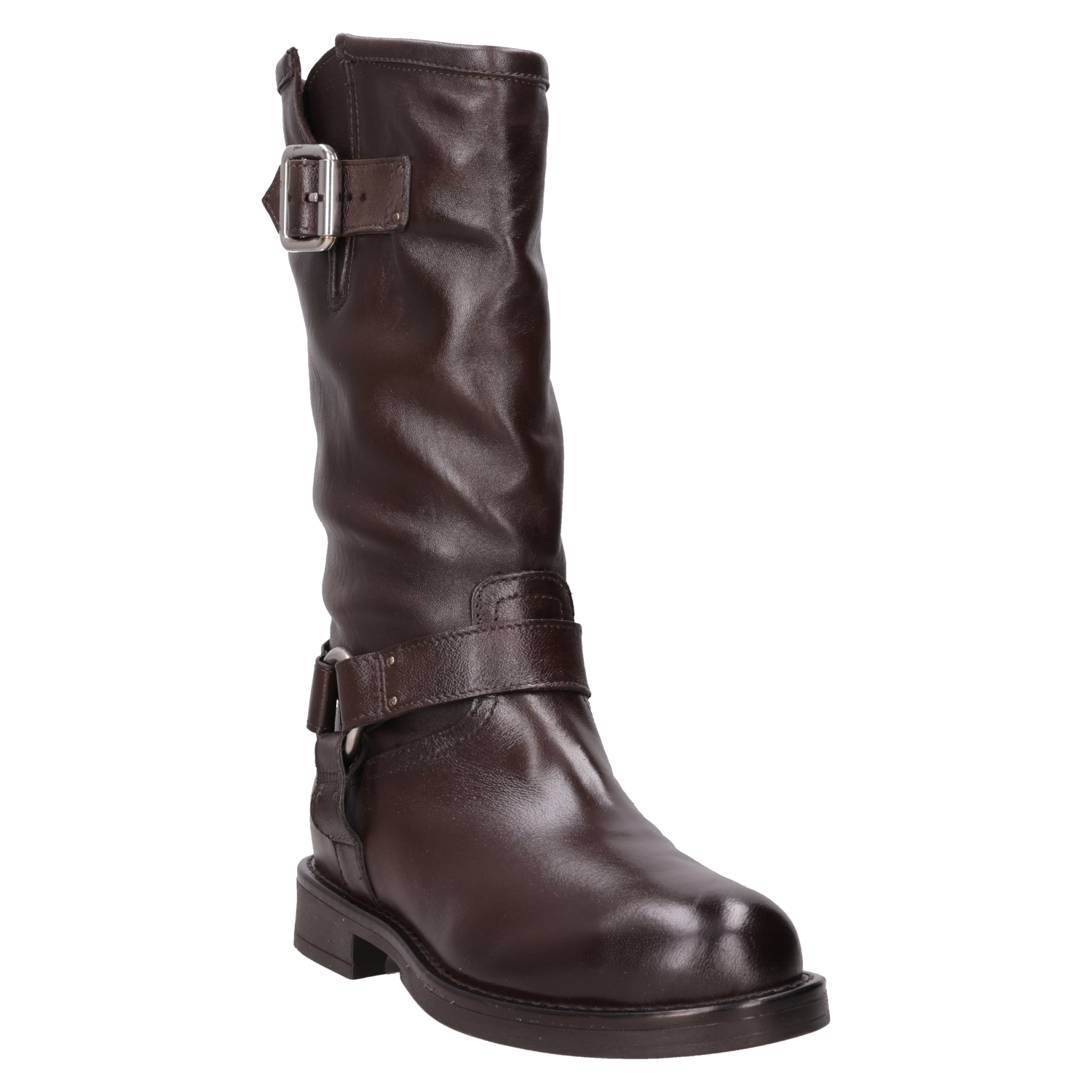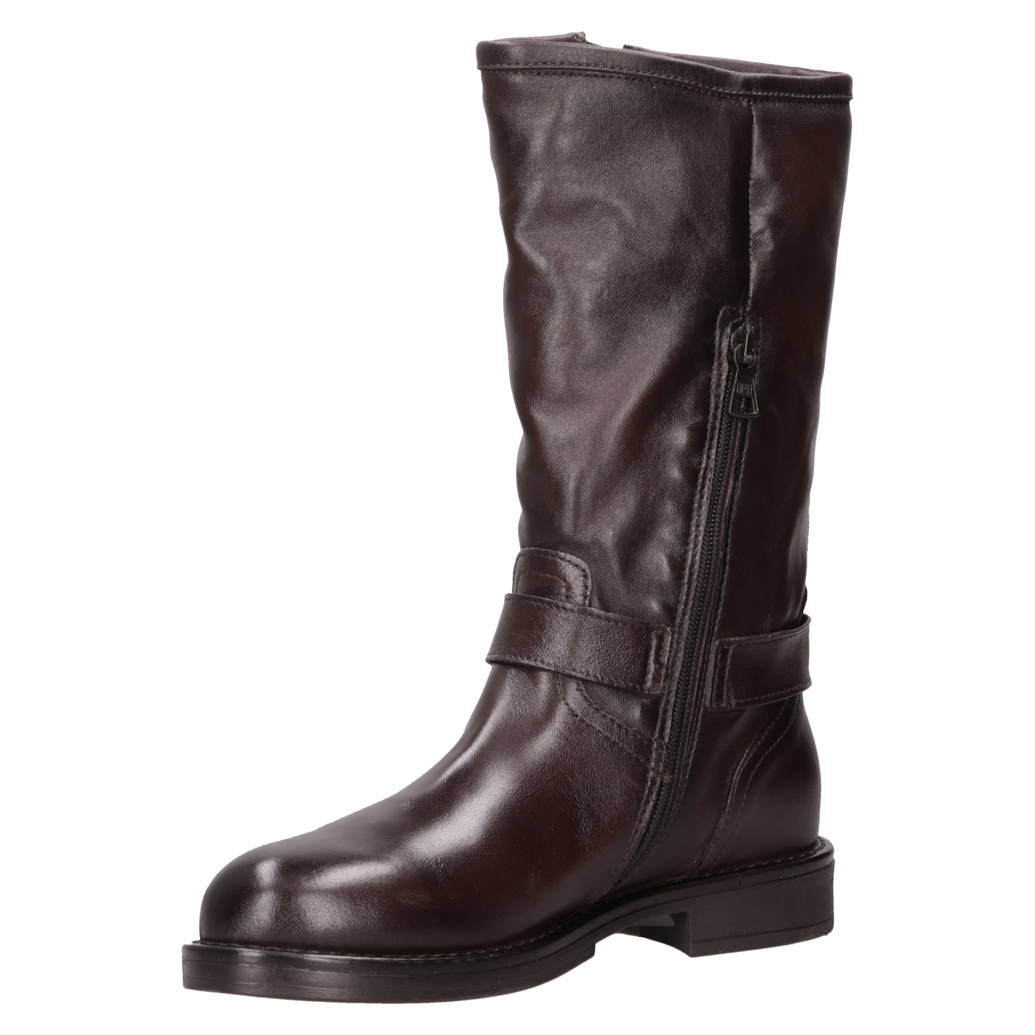 El botín Morgana de MJUS es la expresión perfecta de actitud y personalidad. Su diseño audaz, confeccionado en suave cuero marrón, cuenta con un acabado brillante que resalta su carácter vanguardista. Con un taco bloque de 3 cm y detalles metálicos, cada paso es un impacto visual. Esta pieza desafiante se complementa a la perfección con jeans ajustados o una falda de cuero, creando un look urbano que no pasa desapercibido.
