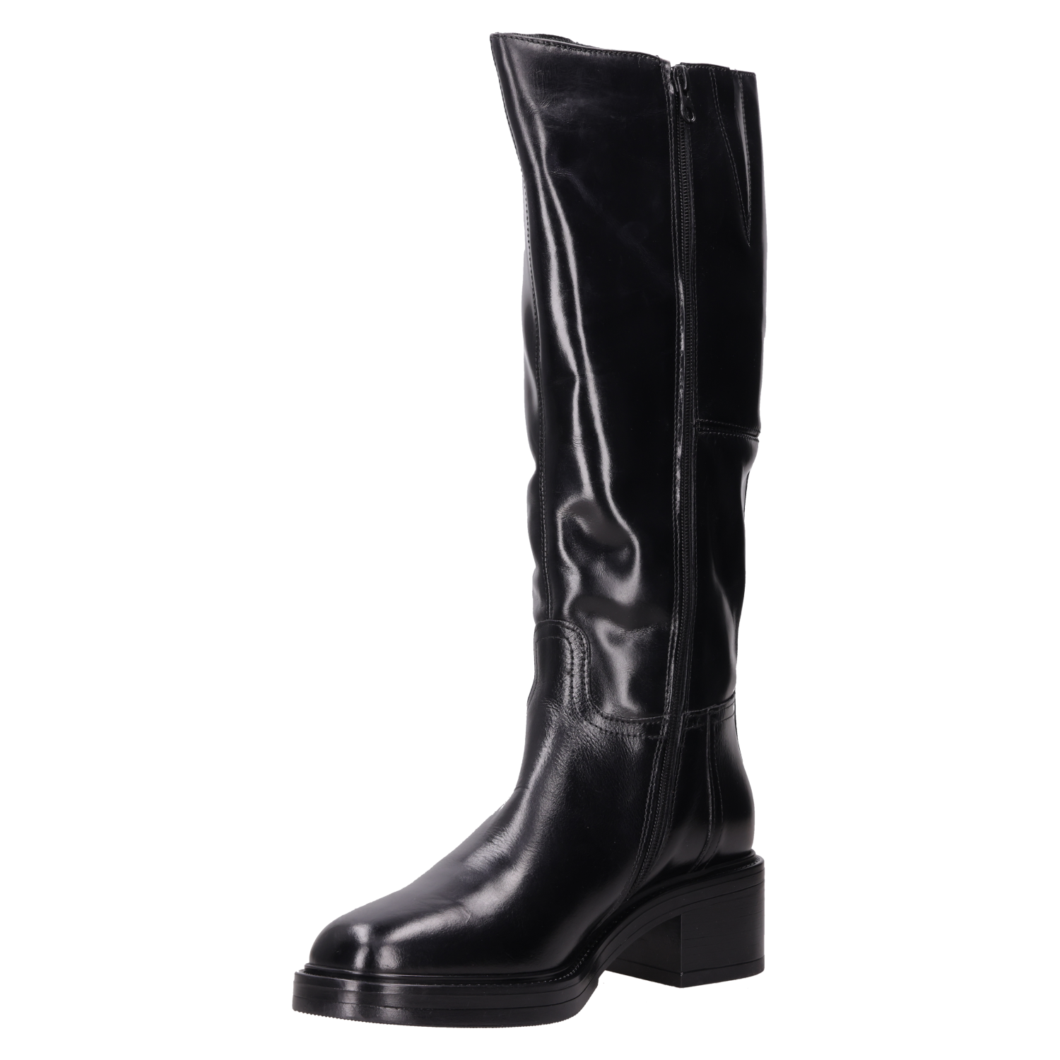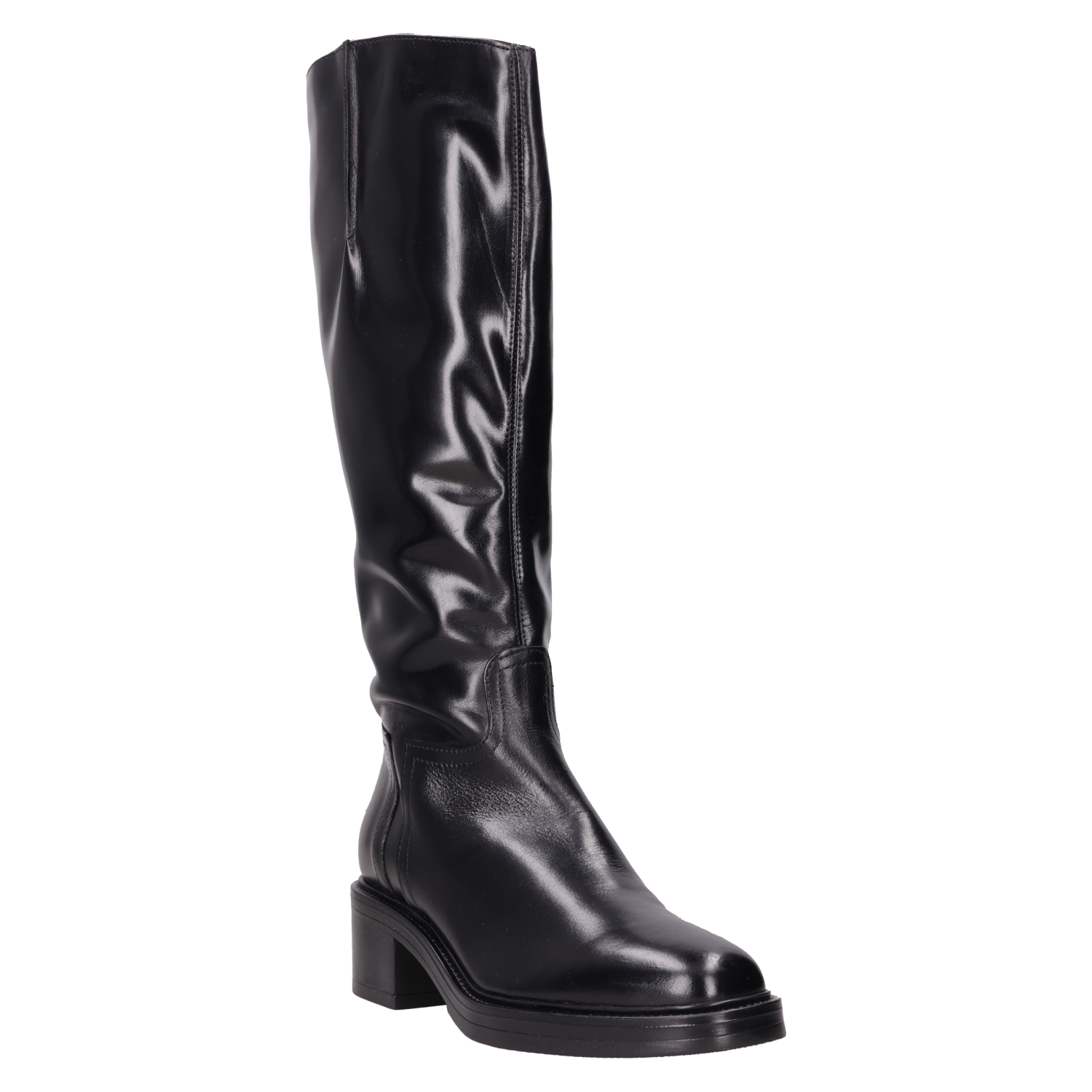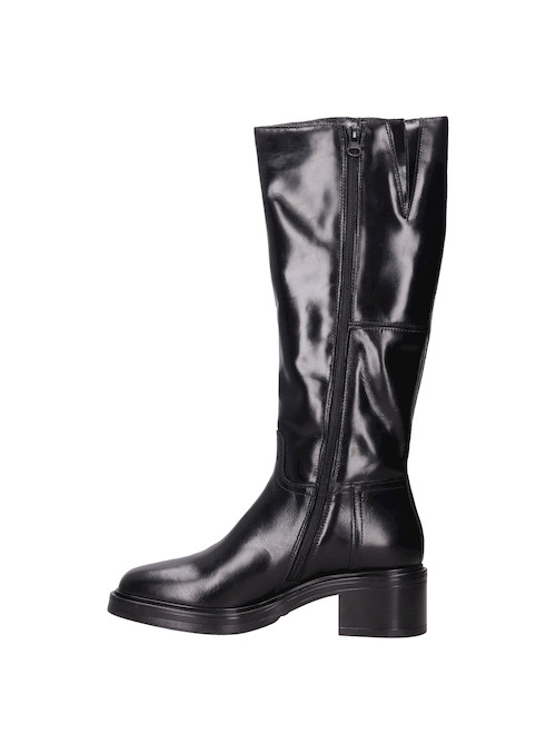 Descubre la esencia rockera de estas impresionantes botas de cuero negro, que combinan una actitud audaz con un diseño de taco bloque de 5 cm. Con su acabado brillante, aportan un toque de sofisticación, mientras que su forma ajustada y la punta redonda aseguran un look moderno y vanguardista. Ideal para marcar tendencia, estas botas son el complemento perfecto para tu guardarropa. Combínalas con un vestido corto de cuero o unos jeans ajustados para un estilo que no pasará desapercibido.