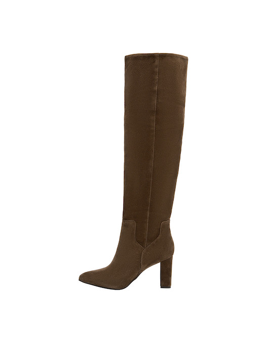 Conquista cada paso con estas sofisticadas botas de cuero en un elegante tono café, que elevan cualquier look. Su diseño de punta puntiaguda y taco bloque de 8 cm le otorgan un aire contemporáneo y versátil, perfecto para la mujer actual. La textura suave del cuero se siente tan lujosa como se ve, haciendo de estas botas un must-have en tu armario. Combínalas con un vestido midi y una chaqueta de cuero para un estilo chic, o con jeans ajustados y una blusa para un look casual pero atractivo.