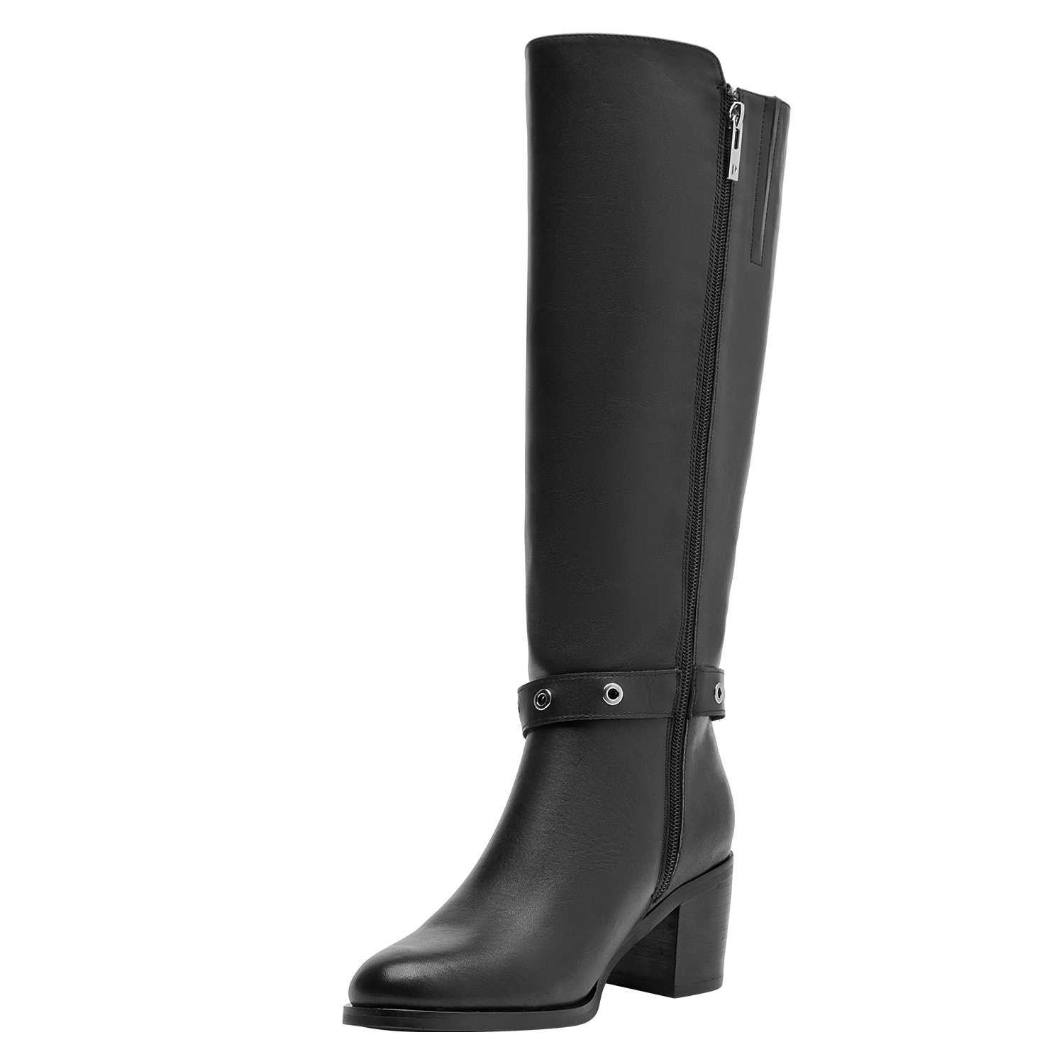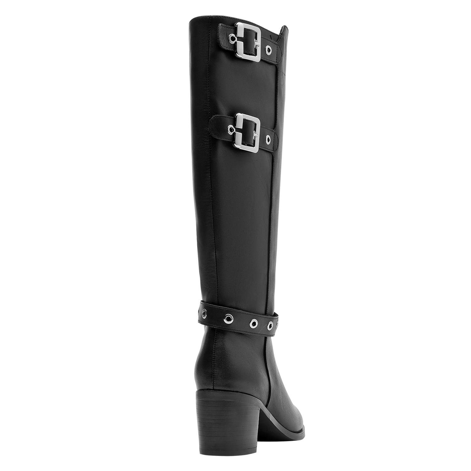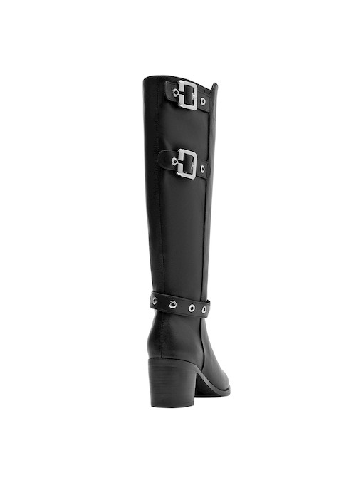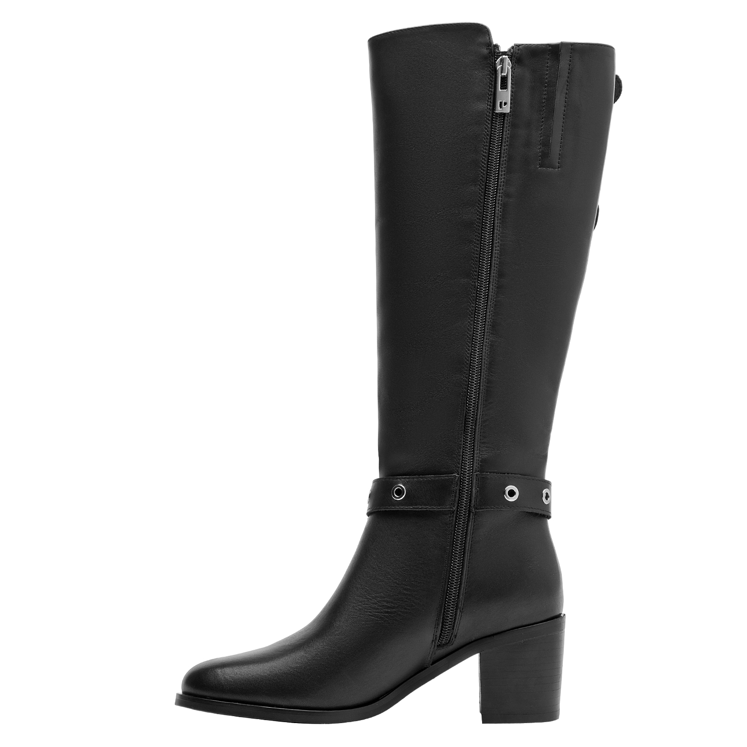 La bota de cuero negro de Pollini es un símbolo de elegancia y modernidad. Con su taco bloque de 6.5 cm, aporta altura sin sacrificar comodidad. Su diseño, enriquecido con detalles metálicos, resalta una estética vanguardista ideal para la mujer actual. La punta redonda y el acabado suave del cuero abrazan el pie con un toque de sofisticación. Combínalas con un vestido midi o tus jeans favoritos para lograr un look atractivo y actual.