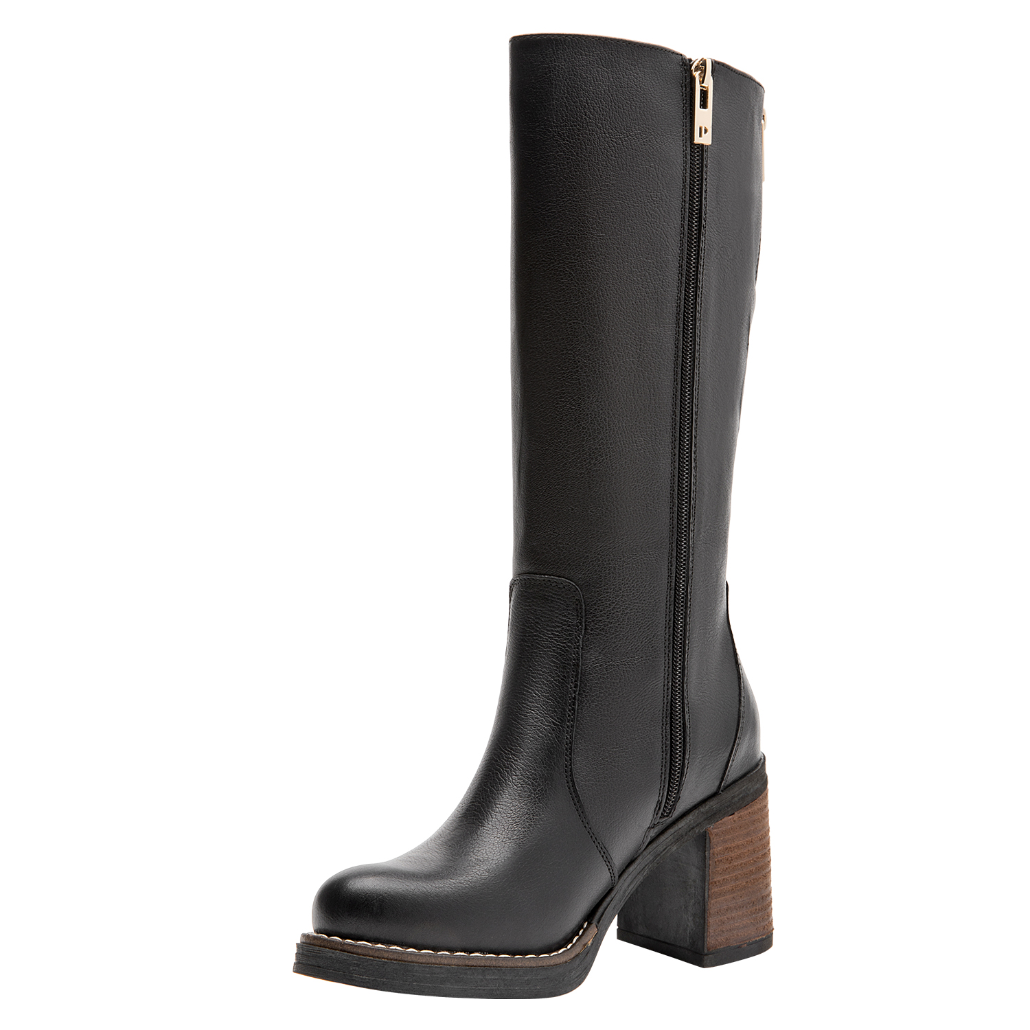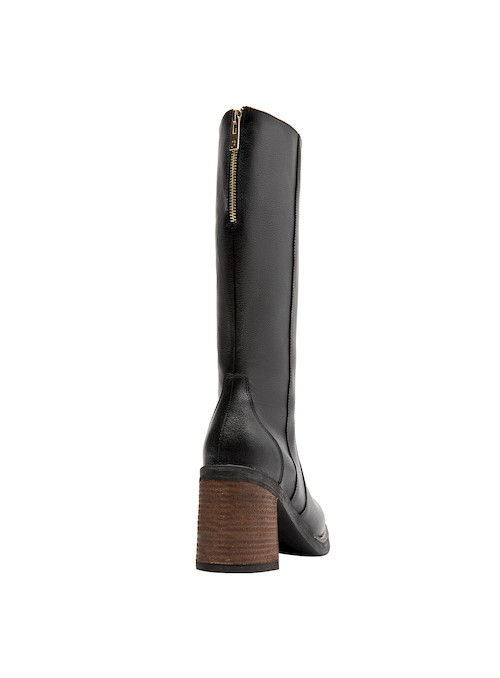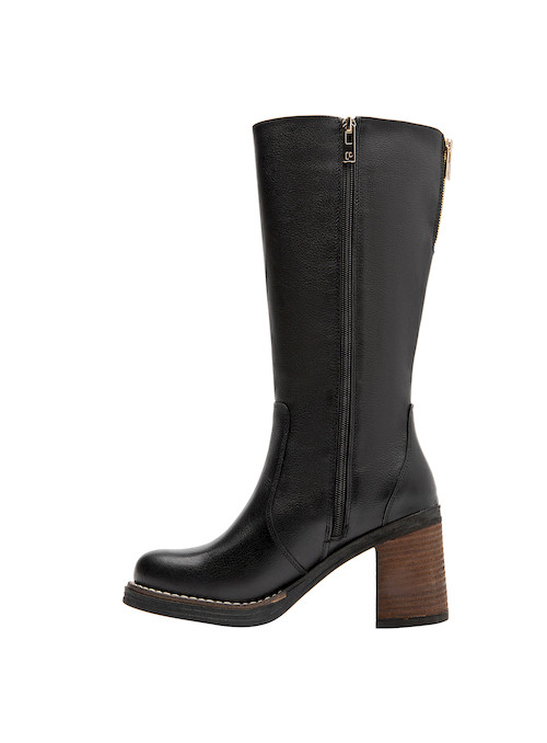 Esta bota de cuero negro es el accesorio perfecto para la mujer contemporánea que busca versatilidad y estilo. Con un coqueto taco bloque de 9 cm, resalta tu feminidad y añade un toque audaz a cualquier outfit. Su diseño de punta redonda y su acabado mate son perfectos para lucir en diversas ocasiones, desde una cita casual hasta una reunión de trabajo. Combina estas botas con un vestido midi o unos jeans ajustados para un look que atraiga todas las miradas.